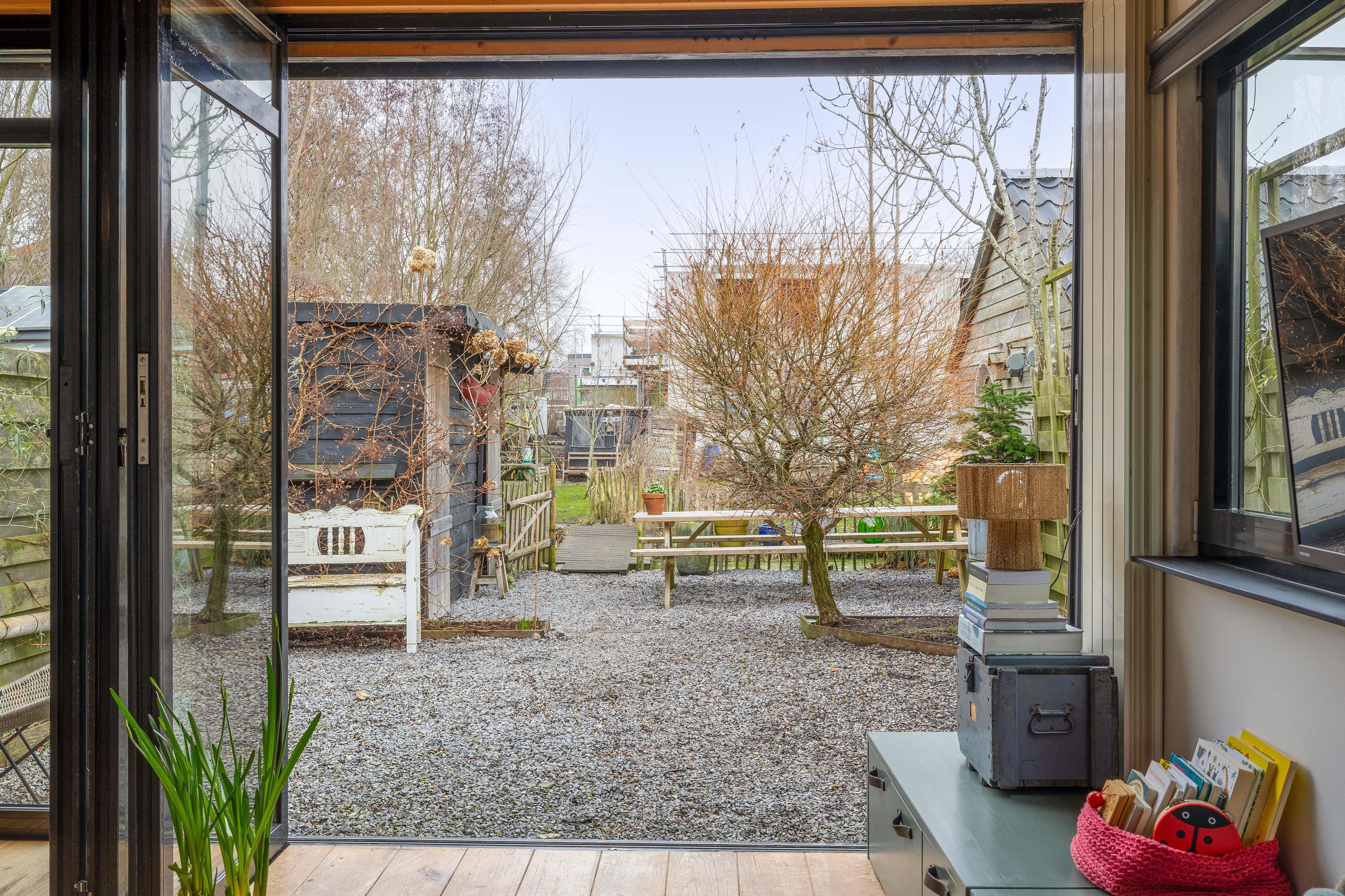 De gunstig gelegen diepe achtertuin, is een heerlijke plek om te ontspannen en beschikt over een riant houten tuinhuis. Een bijzonder extraatje vindt u direct achter de eigen tuin: een extra perceel (in bruikleen van de gemeente) dat momenteel is ingericht als moestuin en speelveld. Hierdoor ervaart u een ongekende vrijheid en ruimte, midden in de stad.