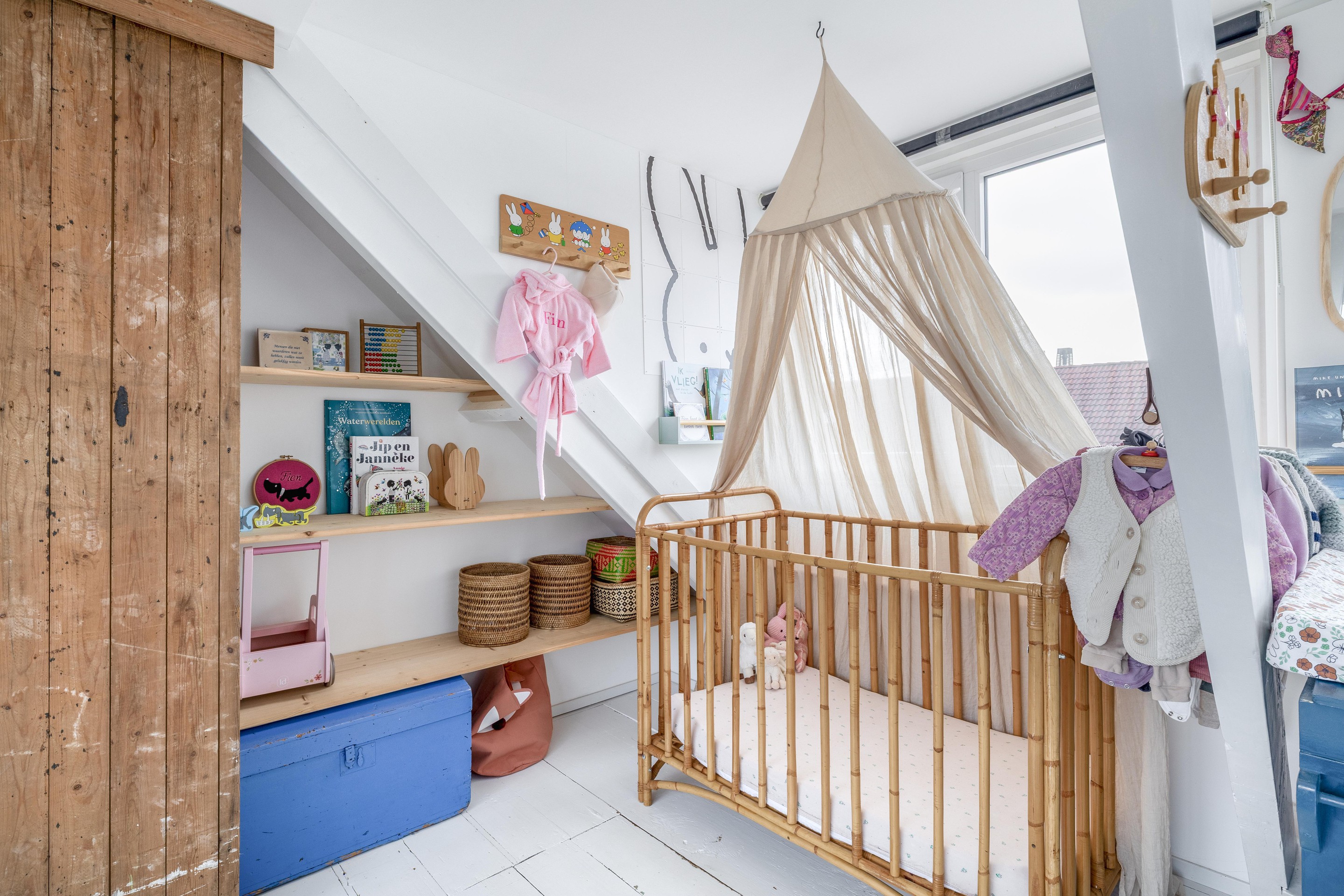 Ook de techniek is hier netjes weggewerkt: de nieuwe CV-installatie (Remeha, 2024) bevindt zich uit het zicht. Mocht er behoefte zijn aan meer kamers, dan biedt deze verdieping de flexibiliteit om eenvoudig te worden opgesplitst in twee aparte slaapkamers, elk met een eigen dakkapel.