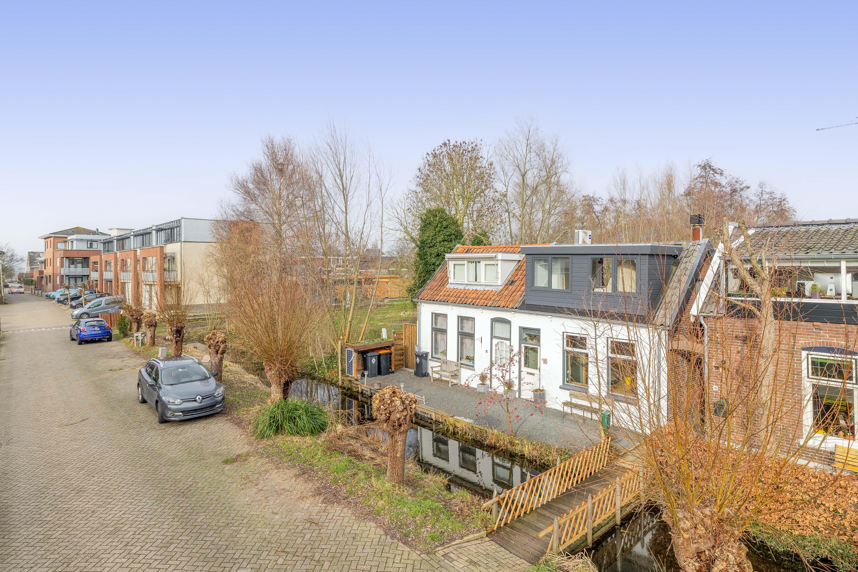 Aan een autoluw straatje met een uitgesproken landelijk karakter, ligt deze charmante en uitstekend onderhouden twee-onder-een-kapwoning uit 1899. Via een gezamenlijke loopbrug over het water bereikt u deze knusse plek, waar rust en de nabijheid van het centrum van Waddinxveen perfect samenkomen.