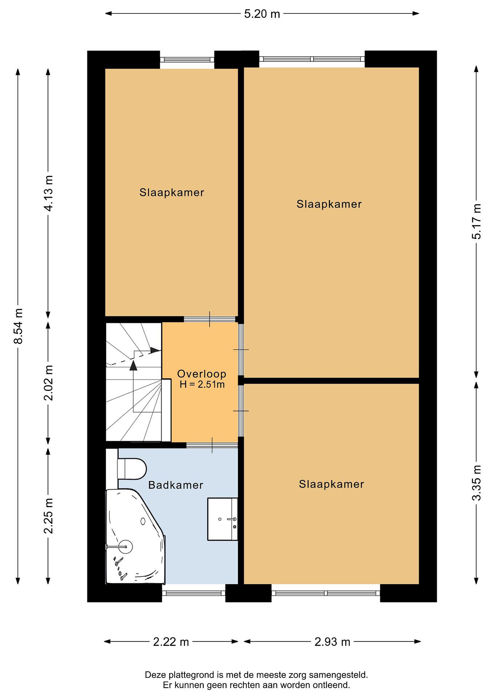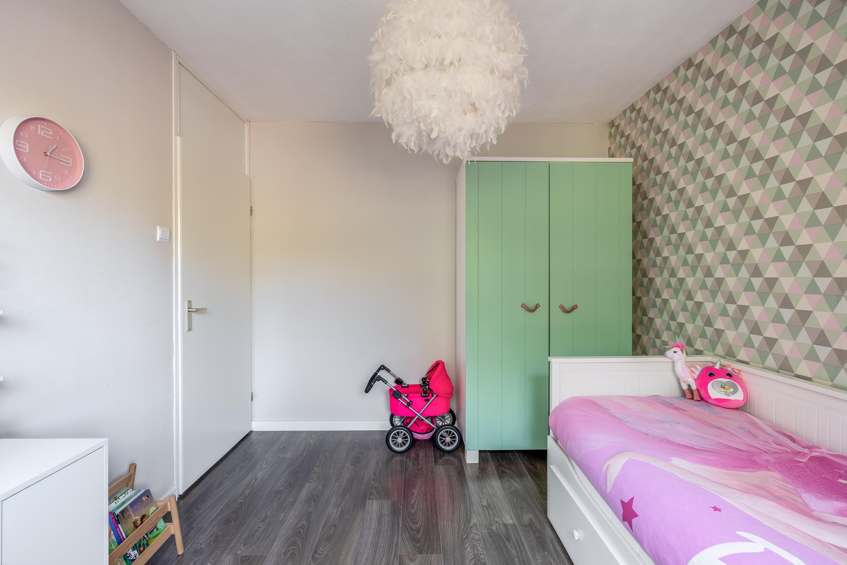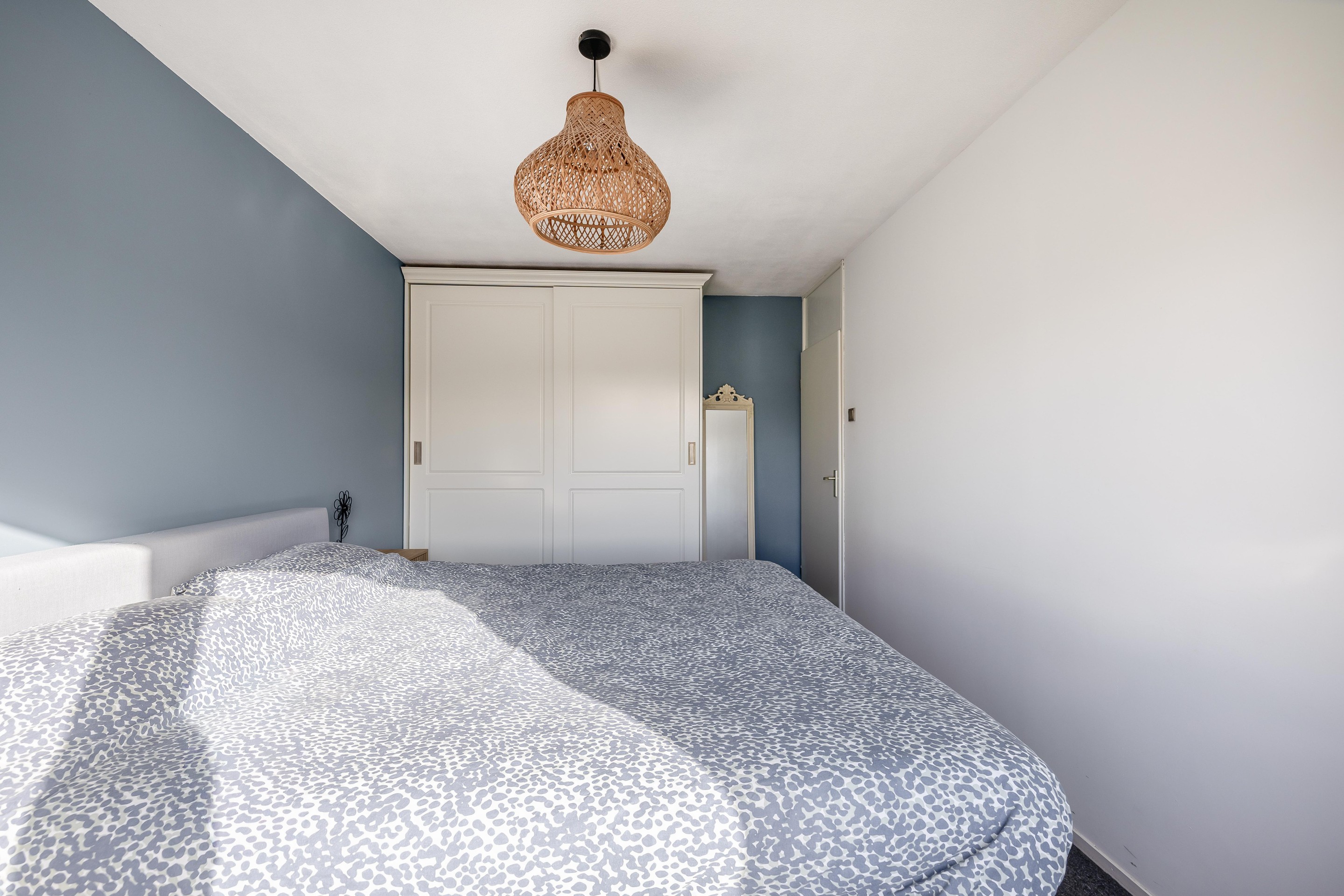 Eerste verdieping Op de eerste verdieping vind je drie ruime slaapkamers met oppervlakten van respectievelijk 15,1 m2, 9,8 m2 en 9,2 m2. De ouderslaapkamer biedt genoeg ruimte voor een royaal tweepersoonsbed en een grote kledingkast, waarbij er nog steeds voldoende loopruimte overblijft. De aanwezige kastenwand blijft achter, dus daar hoef je niets meer voor te regelen. Deze kamer is gestoffeerd en heeft gesausde wanden. De twee andere slaapkamers zijn voorzien van laminaatvloeren en behang op de wanden. De algemene afwerking is, net als op de begane grond, keurig verzorgd.