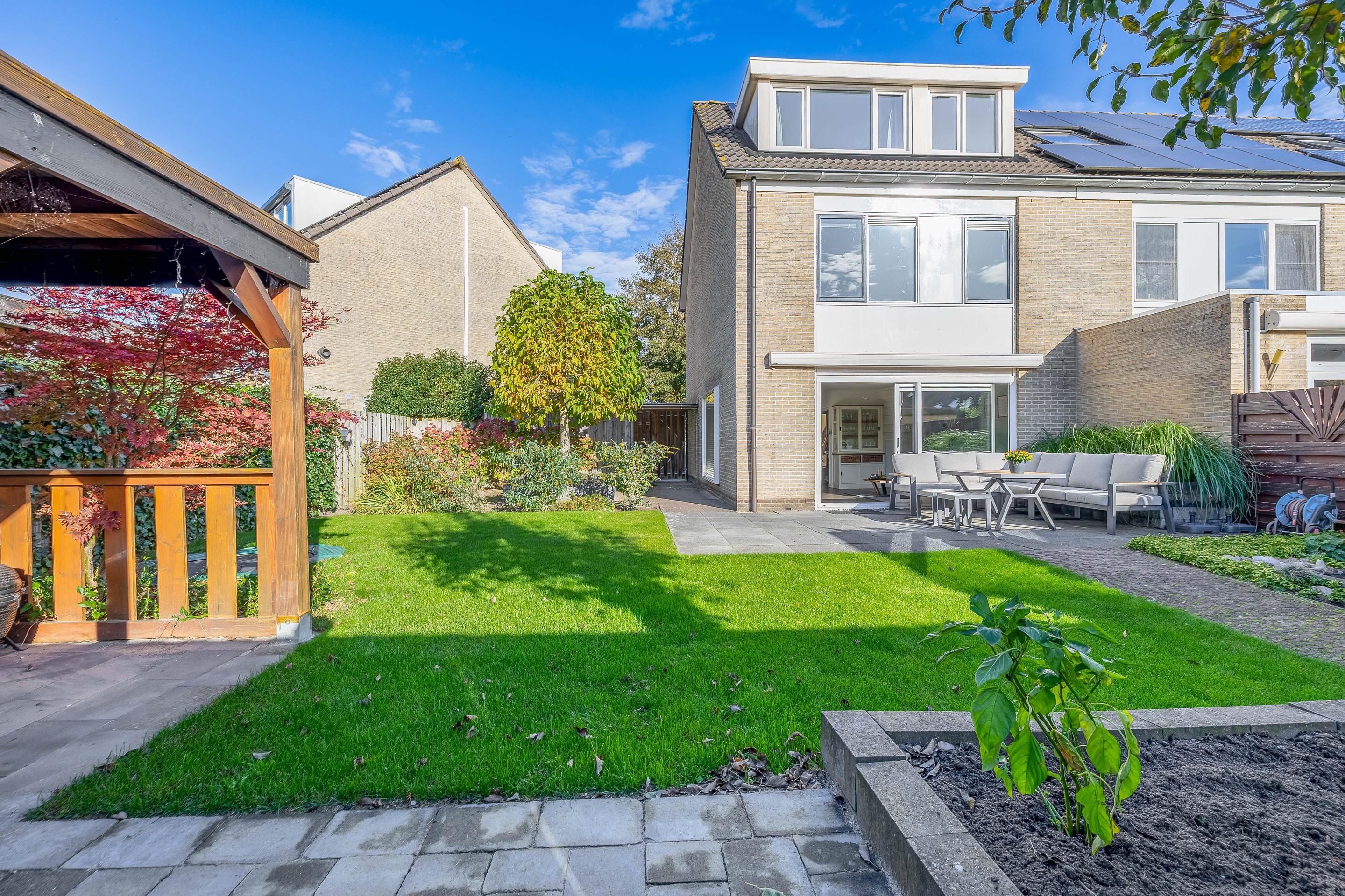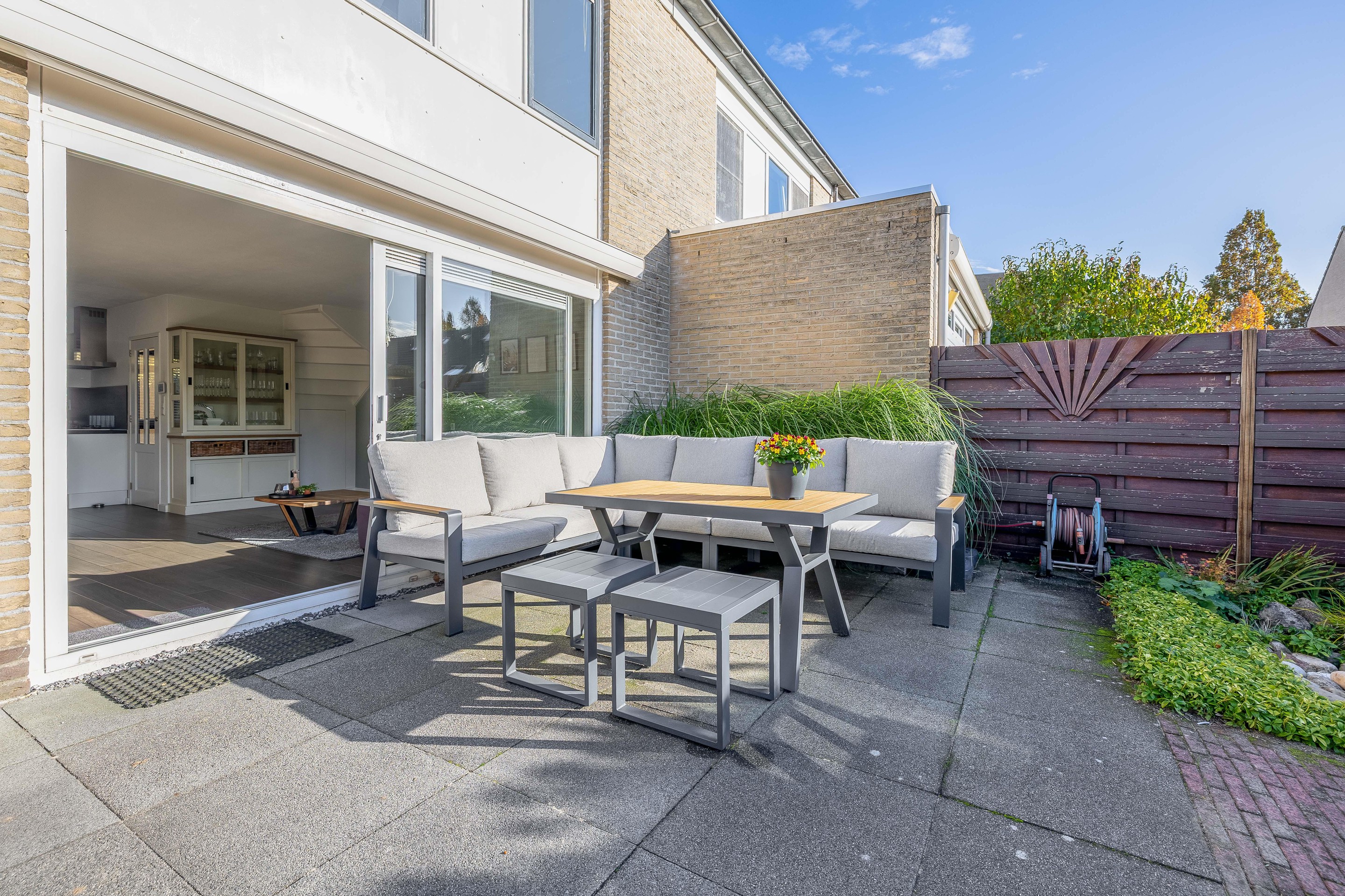 De tuin is zowel via de voor- als achterzijde bereikbaar. Aan de achtergevel hangt een woningbreed, handbediend zonnescherm en uiteraard is er ook een buitenkraan aanwezig.