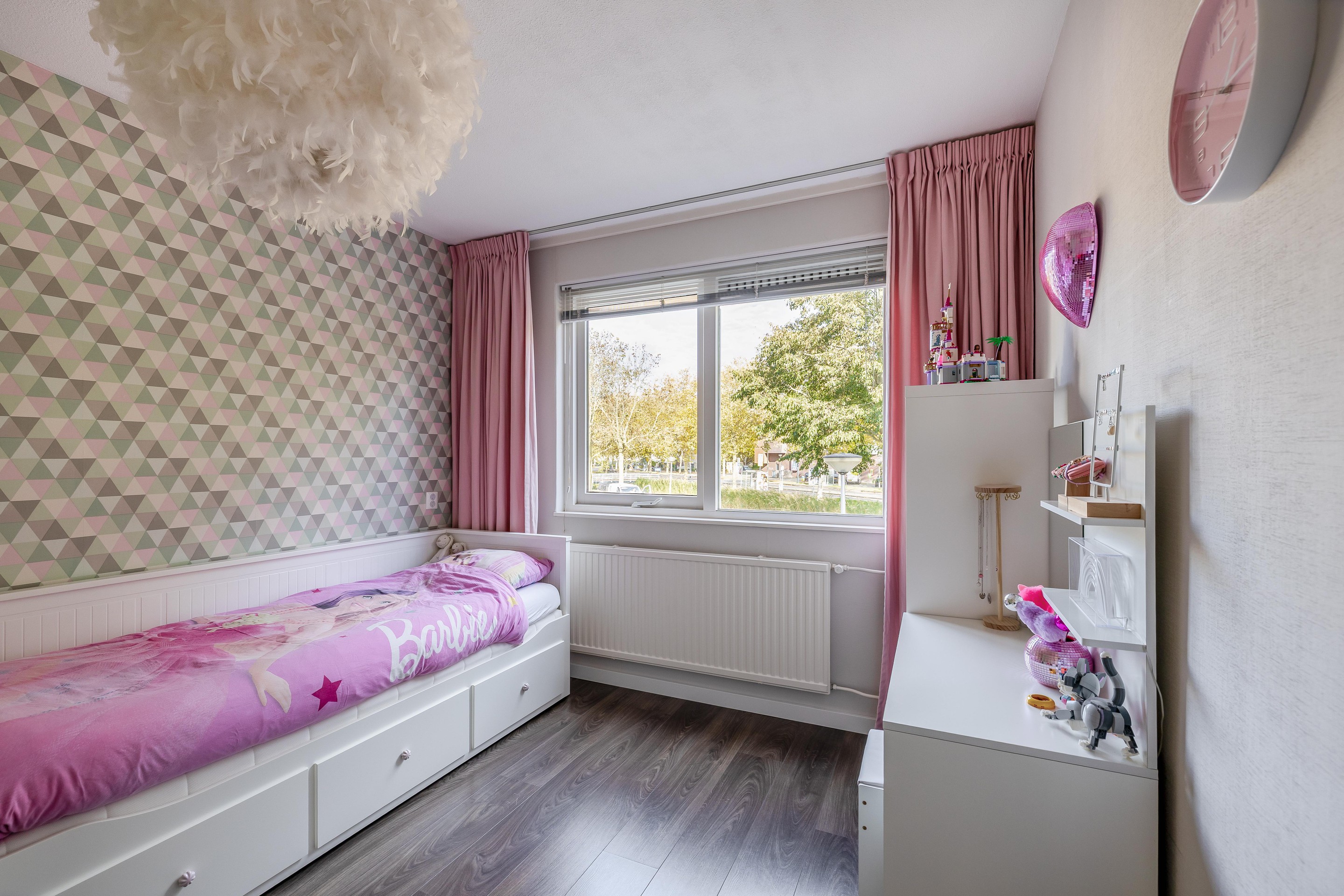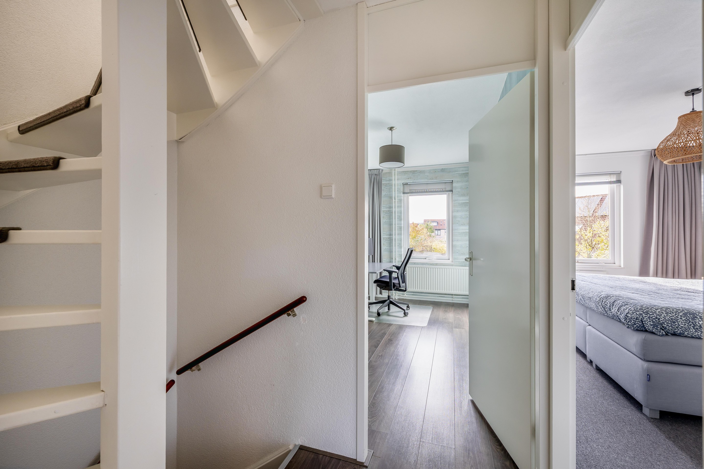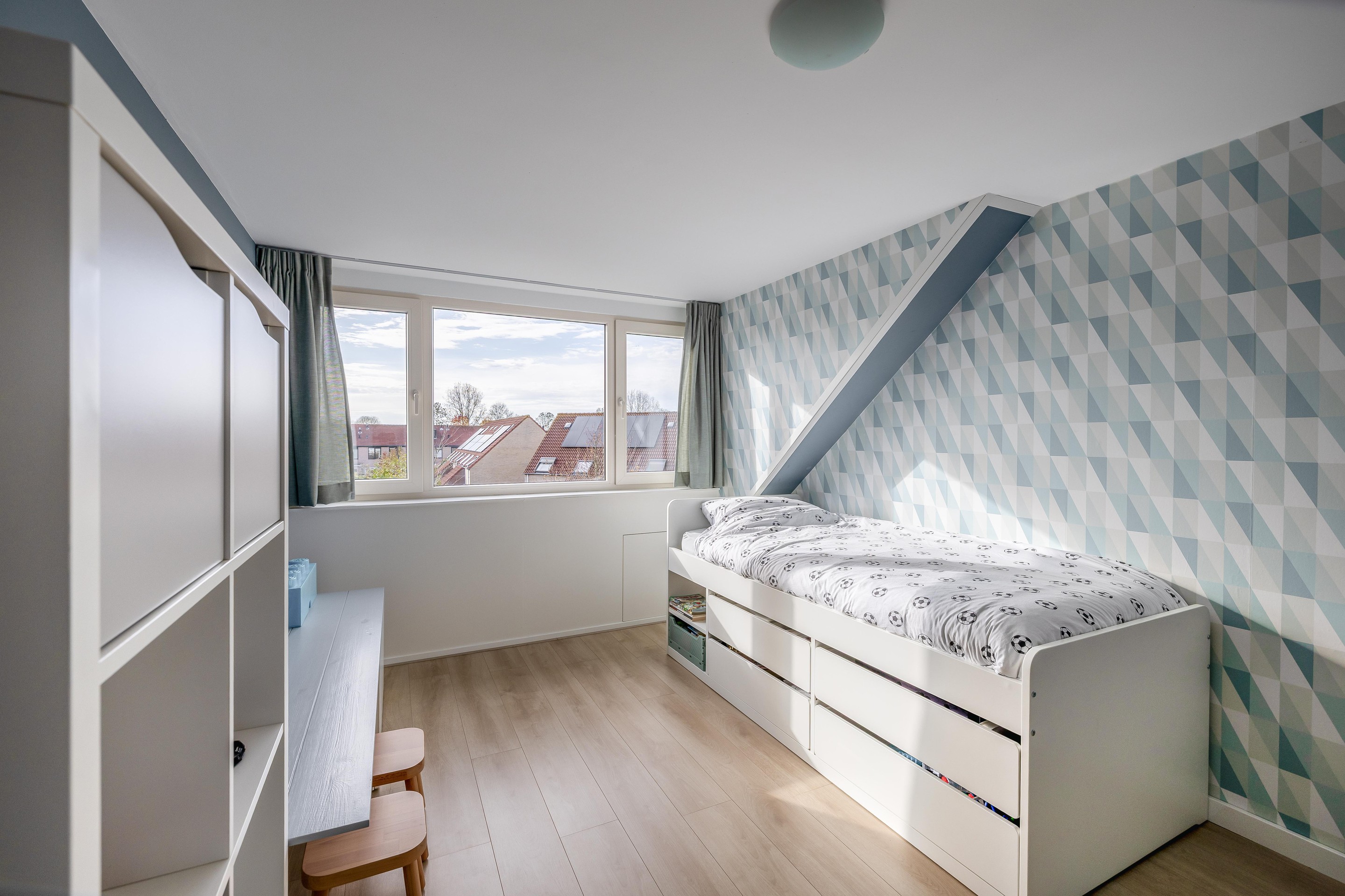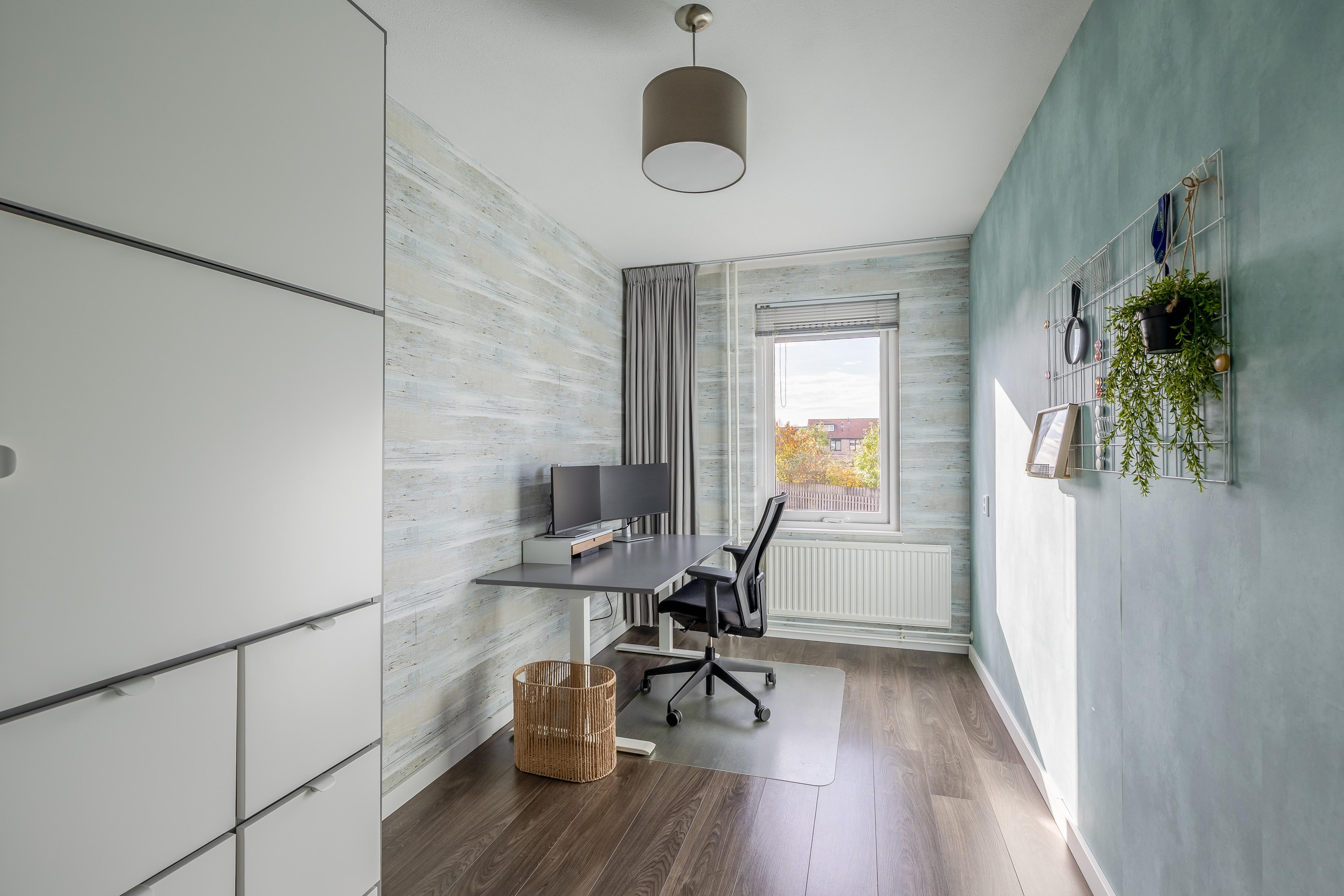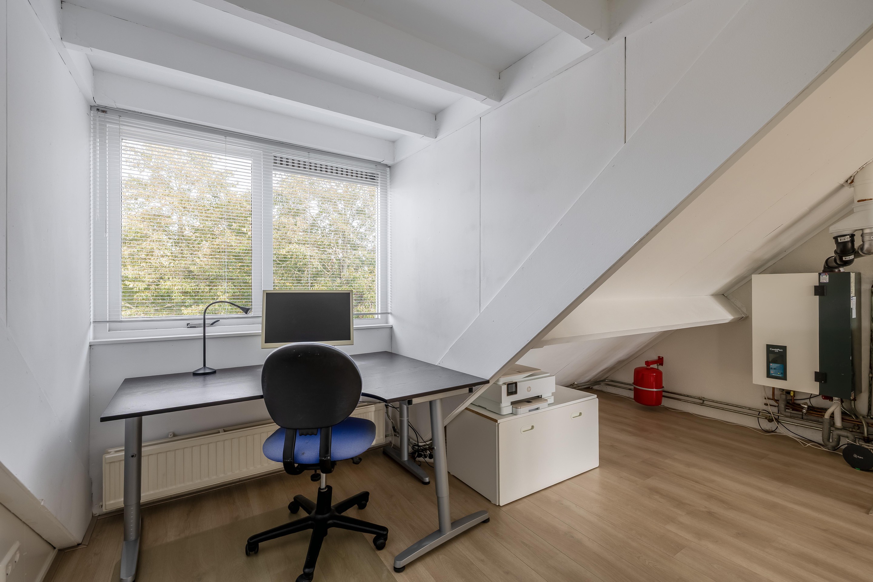 Tweede verdieping De zolderverdieping is praktisch ingedeeld met een centrale overloop, een fijne thuiswerkplek onder de dakkapel aan de voorzijde, een ruime slaapkamer onder de dakkapel aan de achterzijde en een bergzolder boven de slaapkamer. De slaapkamer met woningbrede kunststof dakkapel is in 2018 gerealiseerd en vormt de vierde slaapkamer. De kamer is circa 11,3 m2 groot en afgewerkt met laminaat en behang.