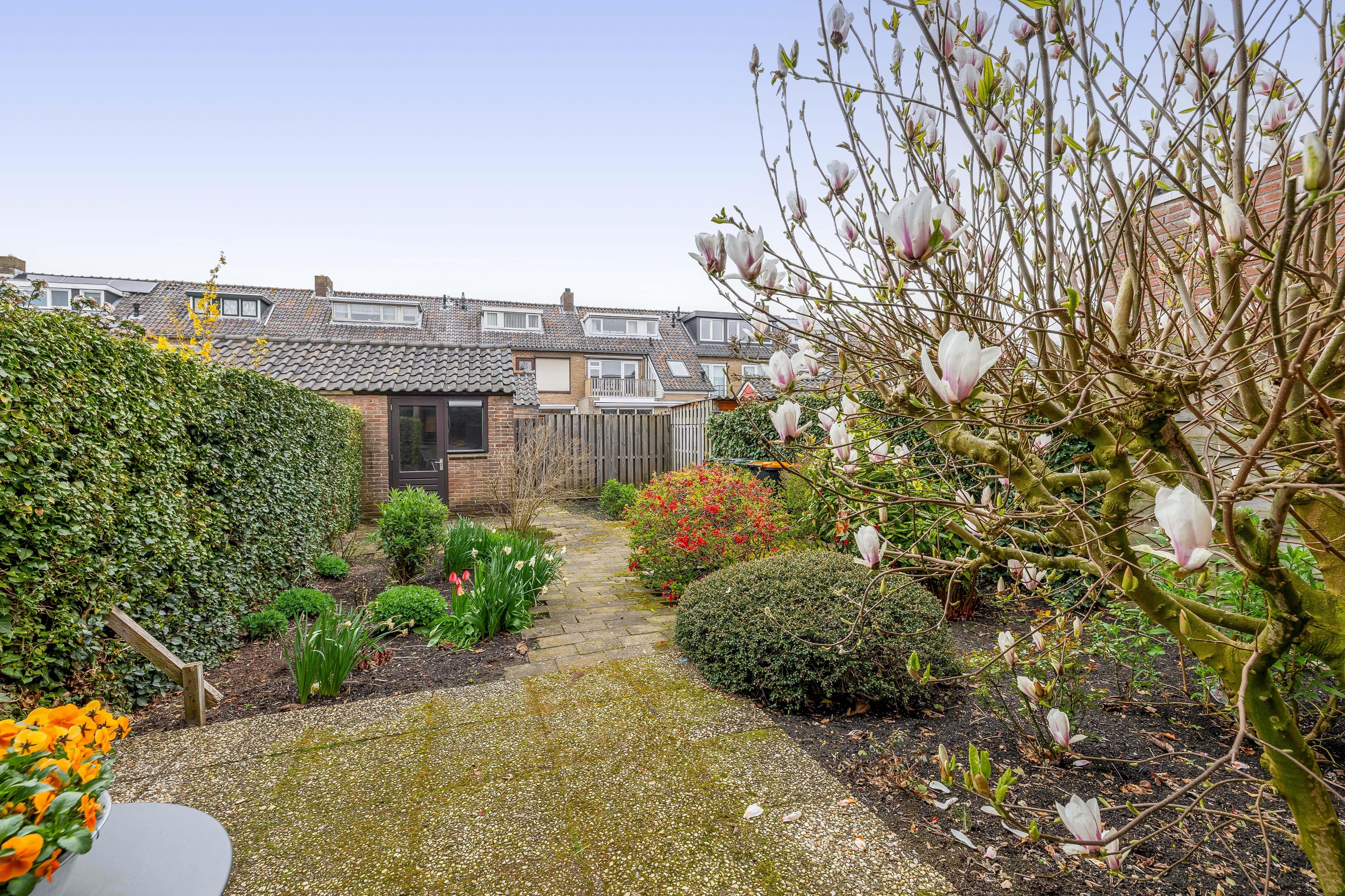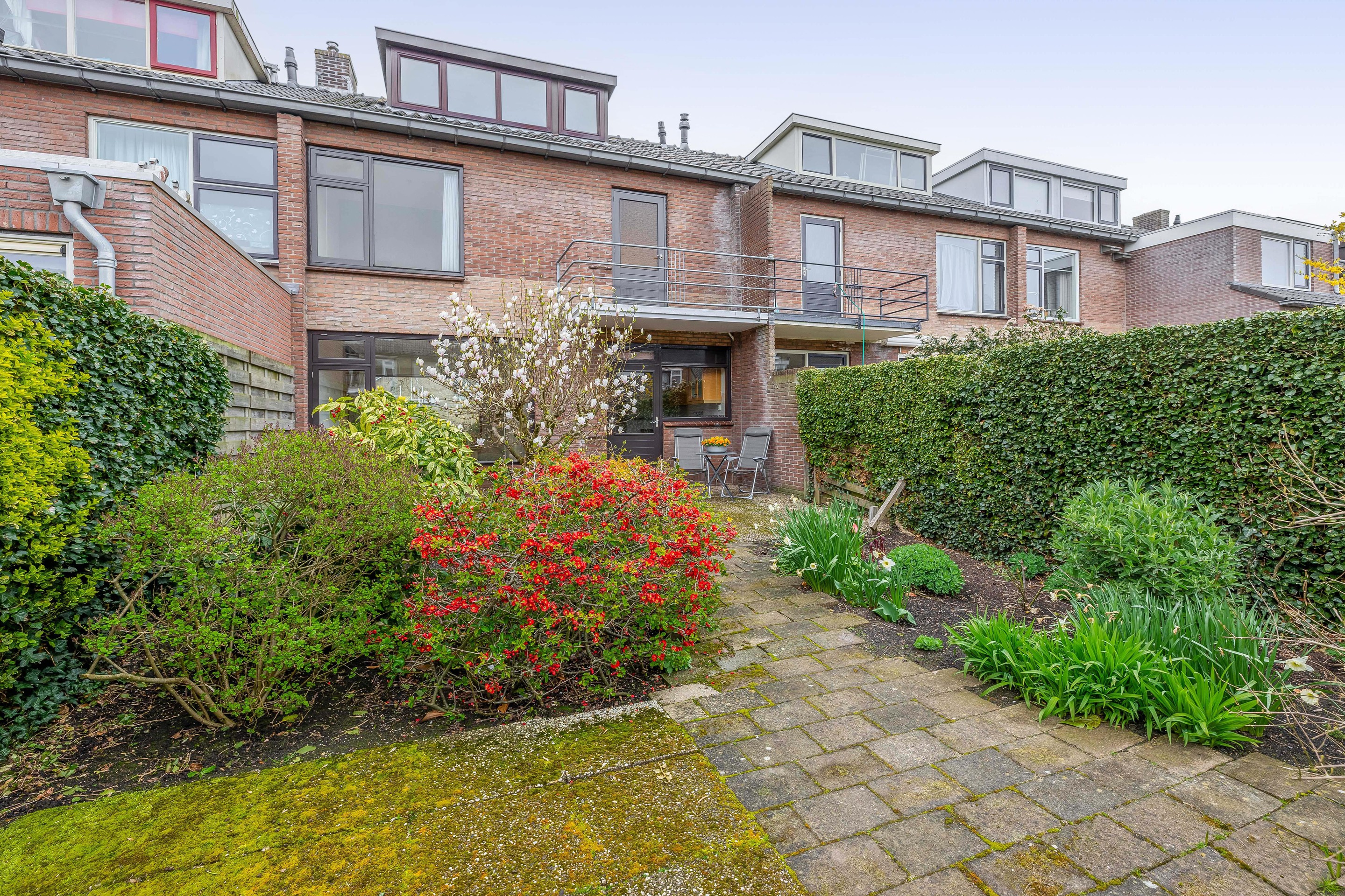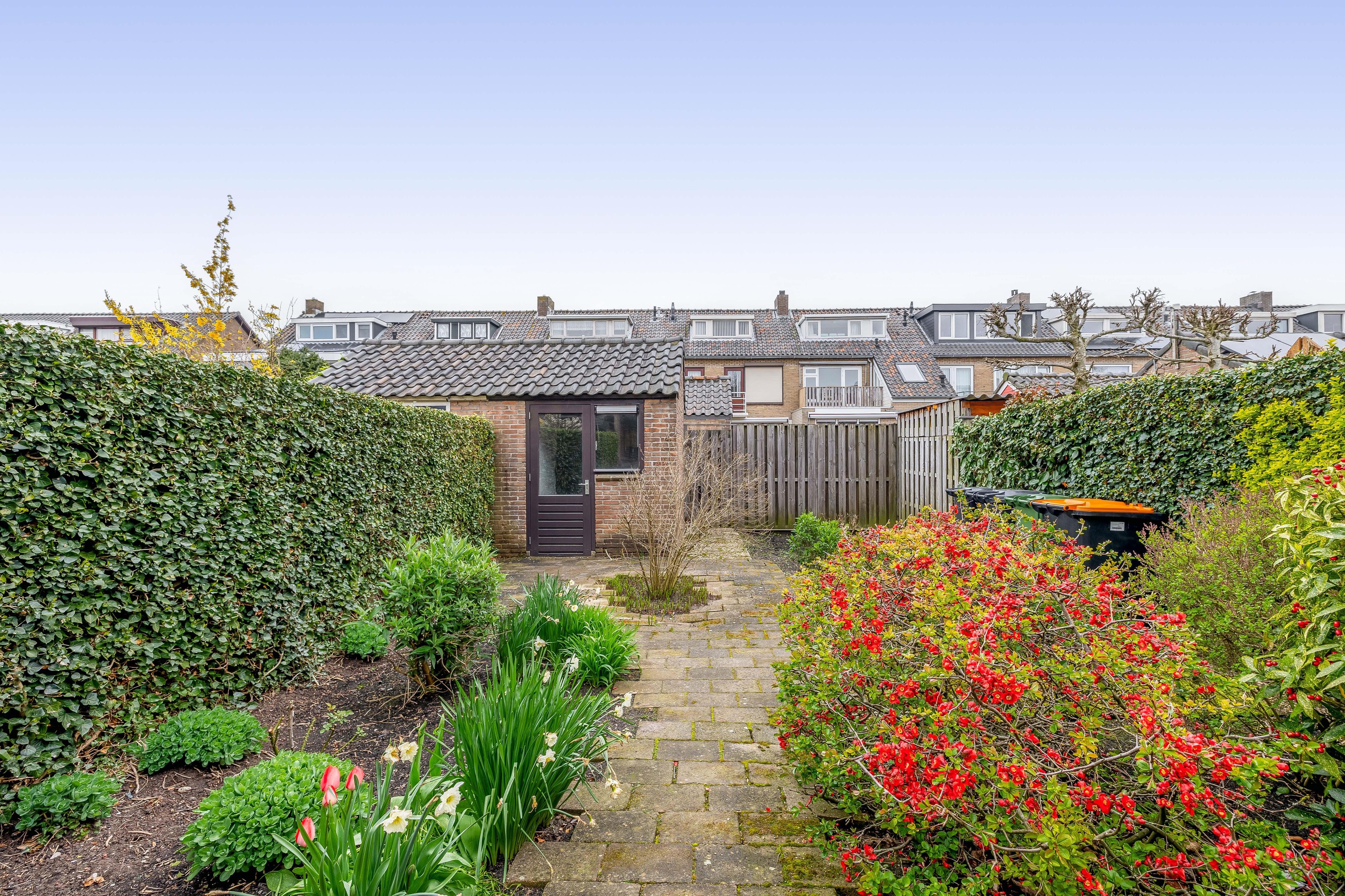 De ruim 14 meter diepe en 6,5 meter brede achtertuin is gelegen op het oosten. Door de aanzienlijke lengte kunt u hier van de vroege ochtend tot in de avond van de zon genieten. De tuin beschikt over meerdere terrassen, borders met vaste beplanting en een ruime stenen berging met elektra en een achterom. En heeft u de wenst om het woonhuis uit te bouwen, dan is dit qua tuin zeker geen probleem.