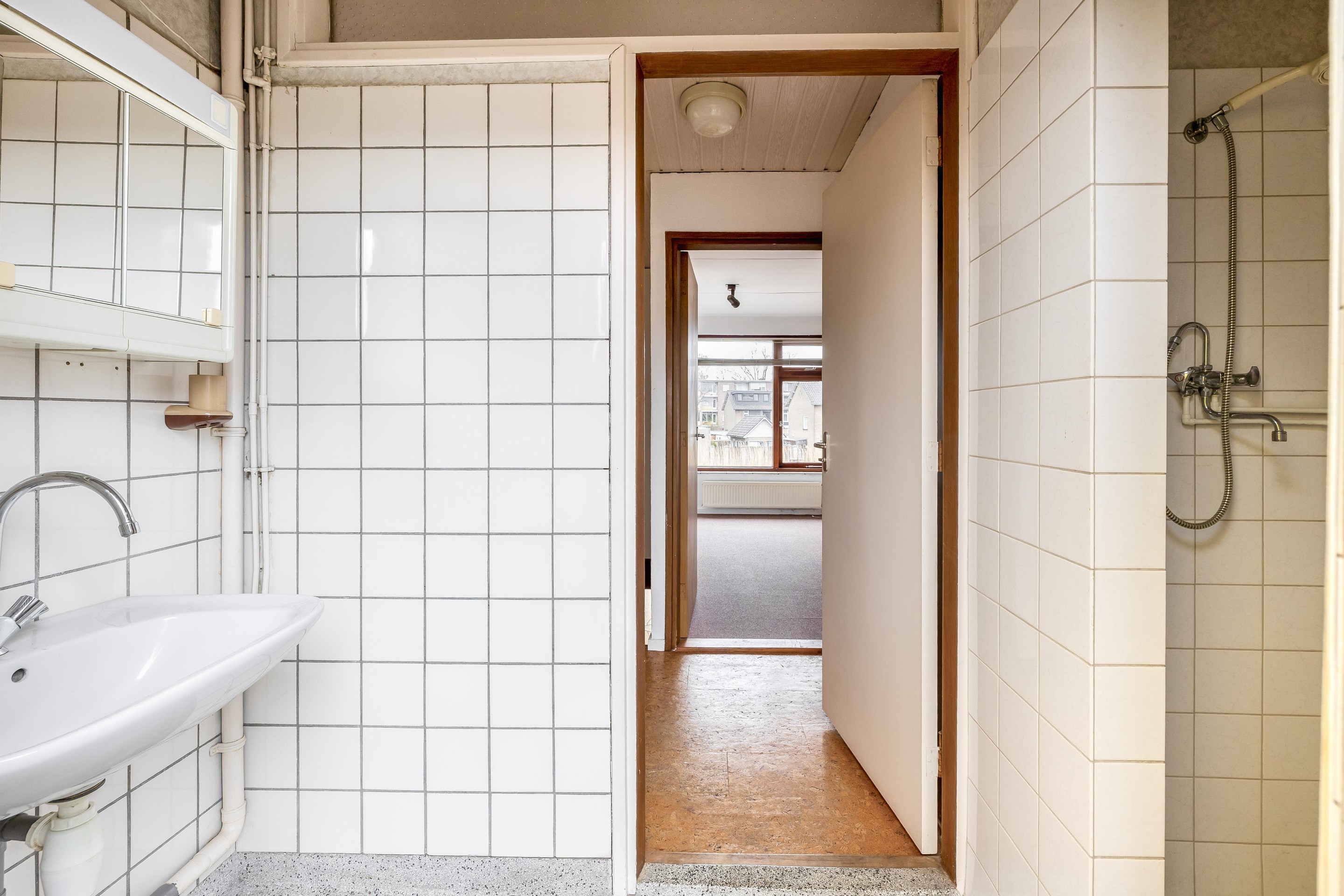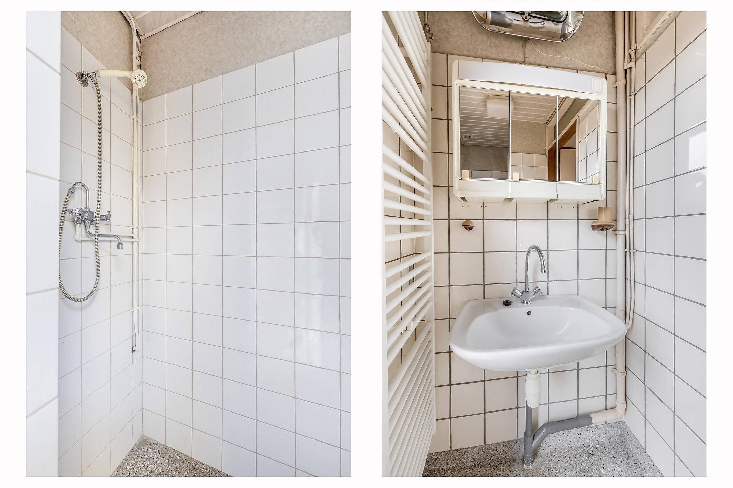 Eerste verdieping Hier bevinden zich drie slaapkamers van respectievelijk circa 11 m2, 15 m2 en 6 m2. De grootste kamer beschikt over een twee kledingkasten en een eigen wastafel. De badkamer is uitgerust met een inloopdouche, wastafel en een handdoekradiator, en biedt toegang tot het balkon.