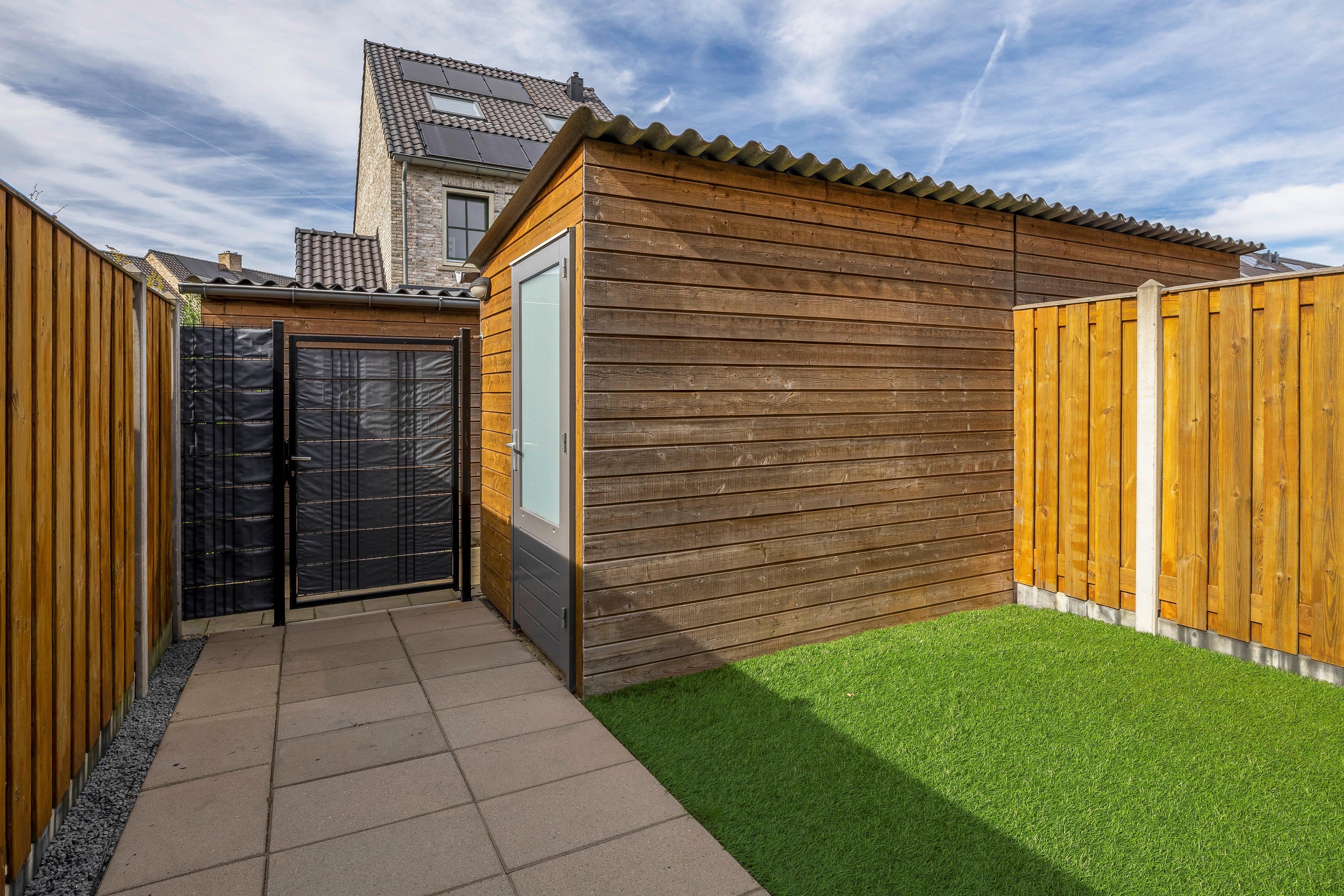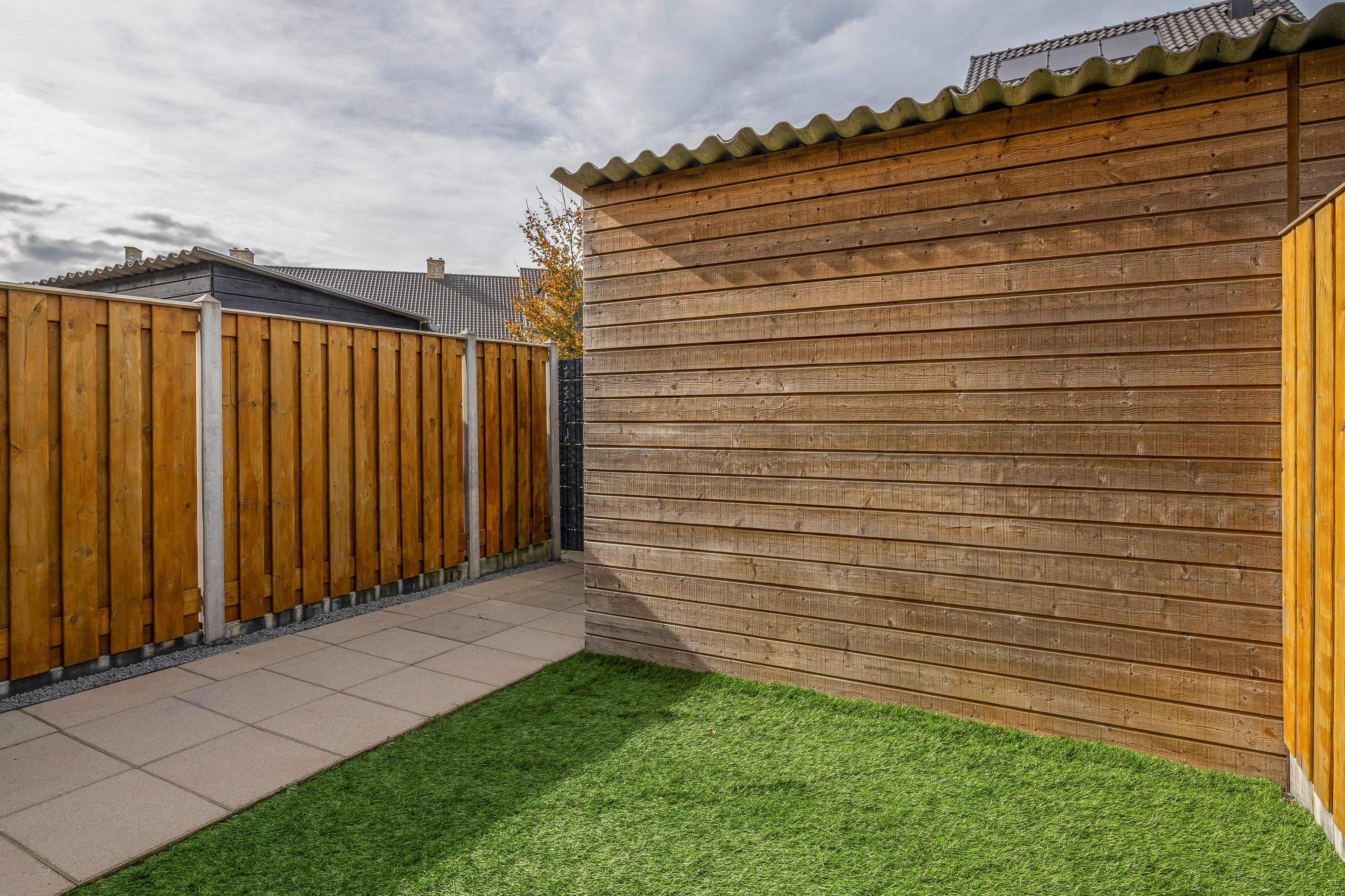 Tuin De achtertuin ligt op het westen, waardoor je vanaf de middag tot in de avond kunt genieten van de zon. De tuin is onderhoudsvriendelijk ingericht en voorzien van elektrische zonwering/screens, een buitenkraan, elektra en een houten schuur met stroomaansluiting. Via de praktische achterom is de tuin gemakkelijk bereikbaar. De serre vormt een natuurlijke overgang tussen binnen en buiten, waardoor de ruimte het hele jaar door prettig te gebruiken is.
