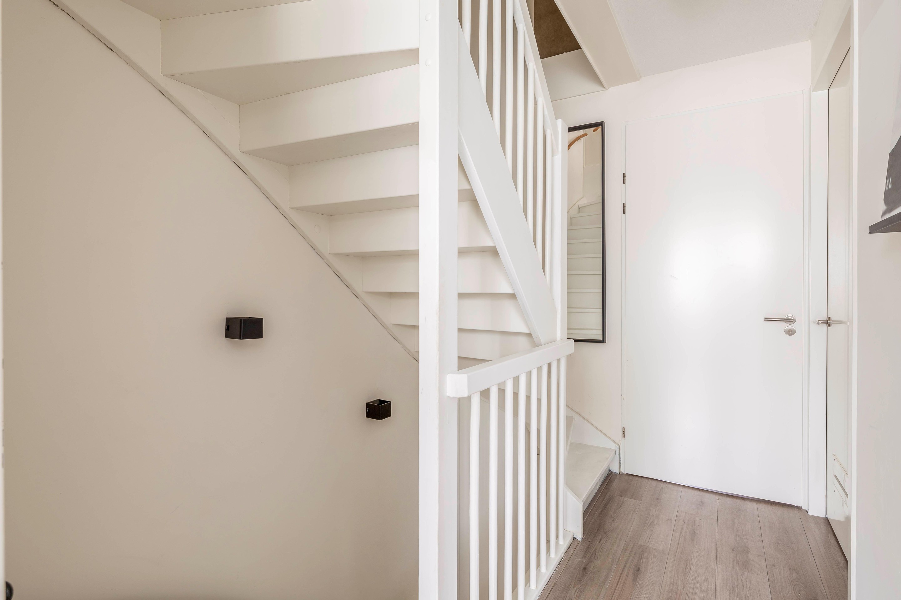 Daarnaast vind je op deze verdieping een aparte berging/waskamer met de aansluiting voor de wasmachine en droger. Vanaf hier is ook de vliering bereikbaar, ideaal voor extra opbergruimte.