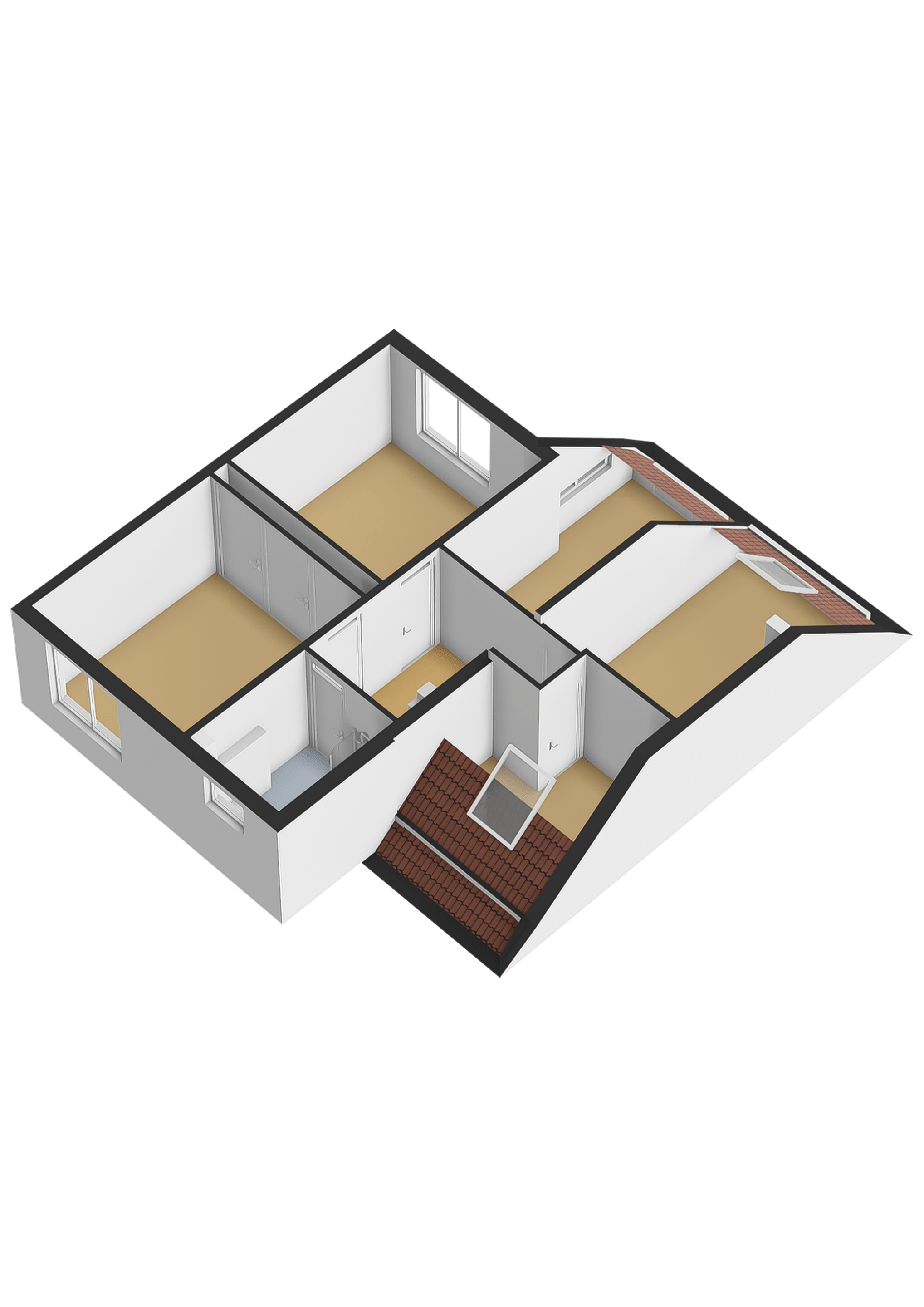 Twee van de slaapkamers zijn voorzien van een dakraam, wat zorgt voor veel natuurlijk licht en een open gevoel. De derde slaapkamer, gelegen aan de achterzijde van de woning, beschikt over een dakkapel. Dit vergroot niet alleen de bruikbare ruimte, maar biedt ook een prettig uitzicht en extra lichtinval.