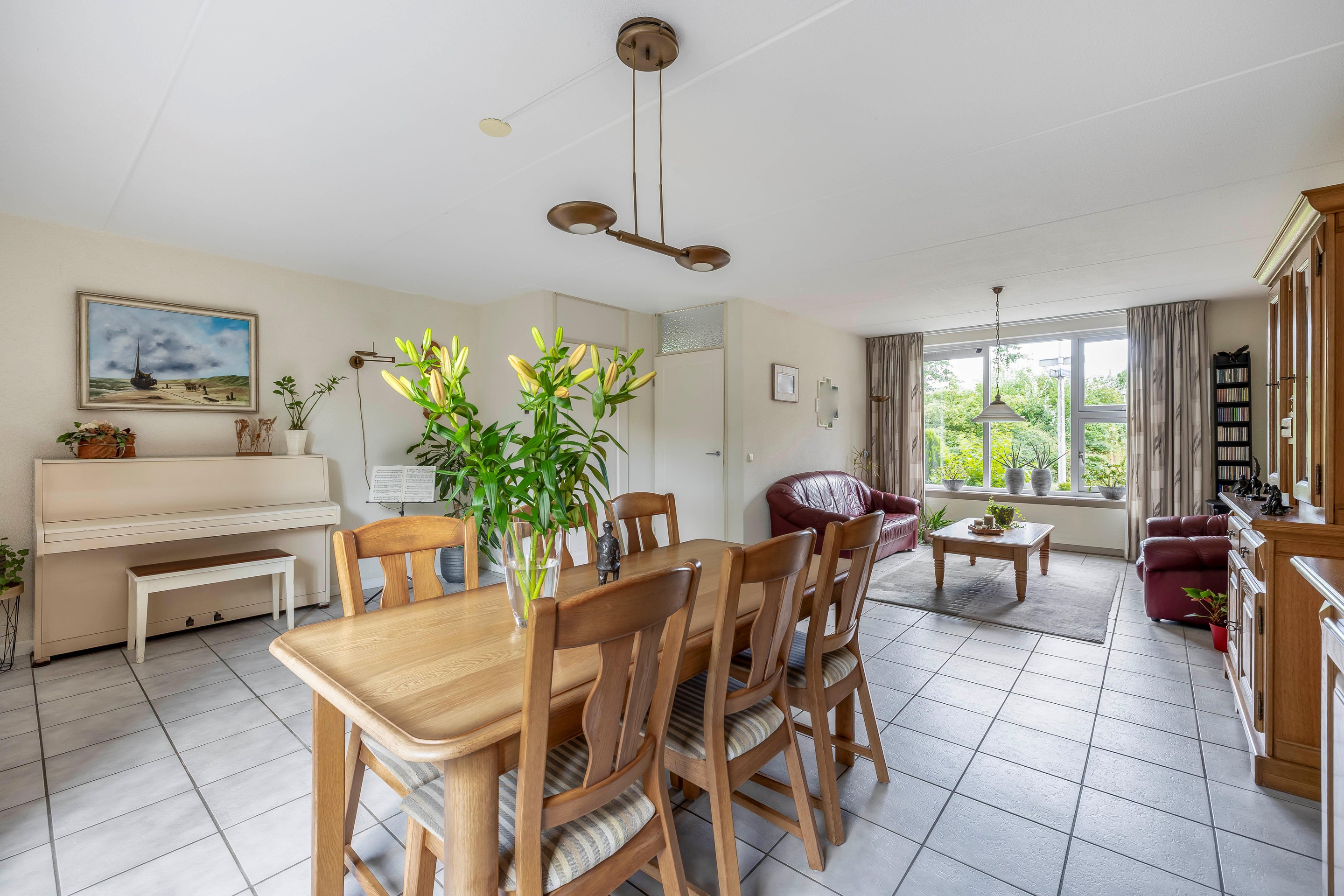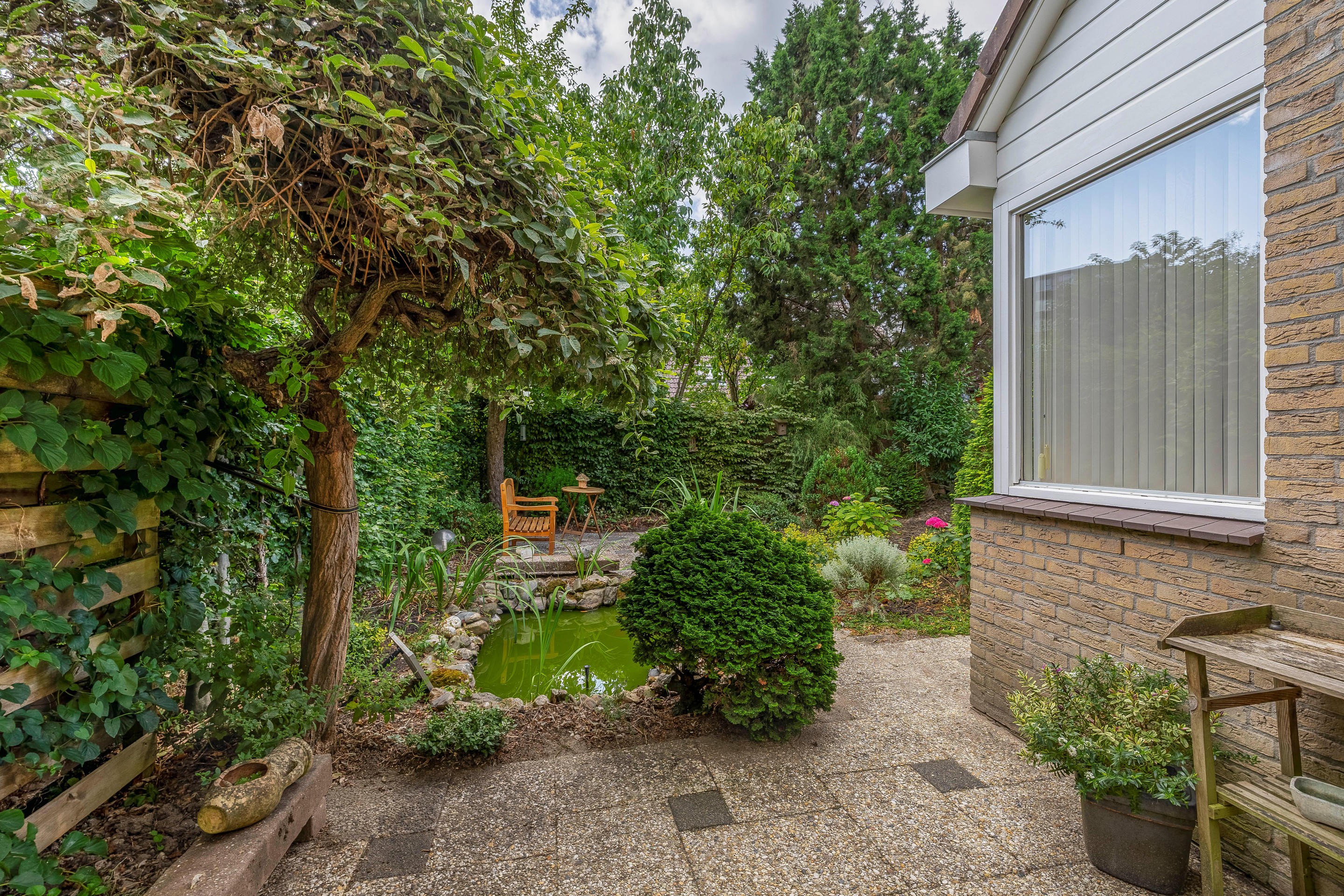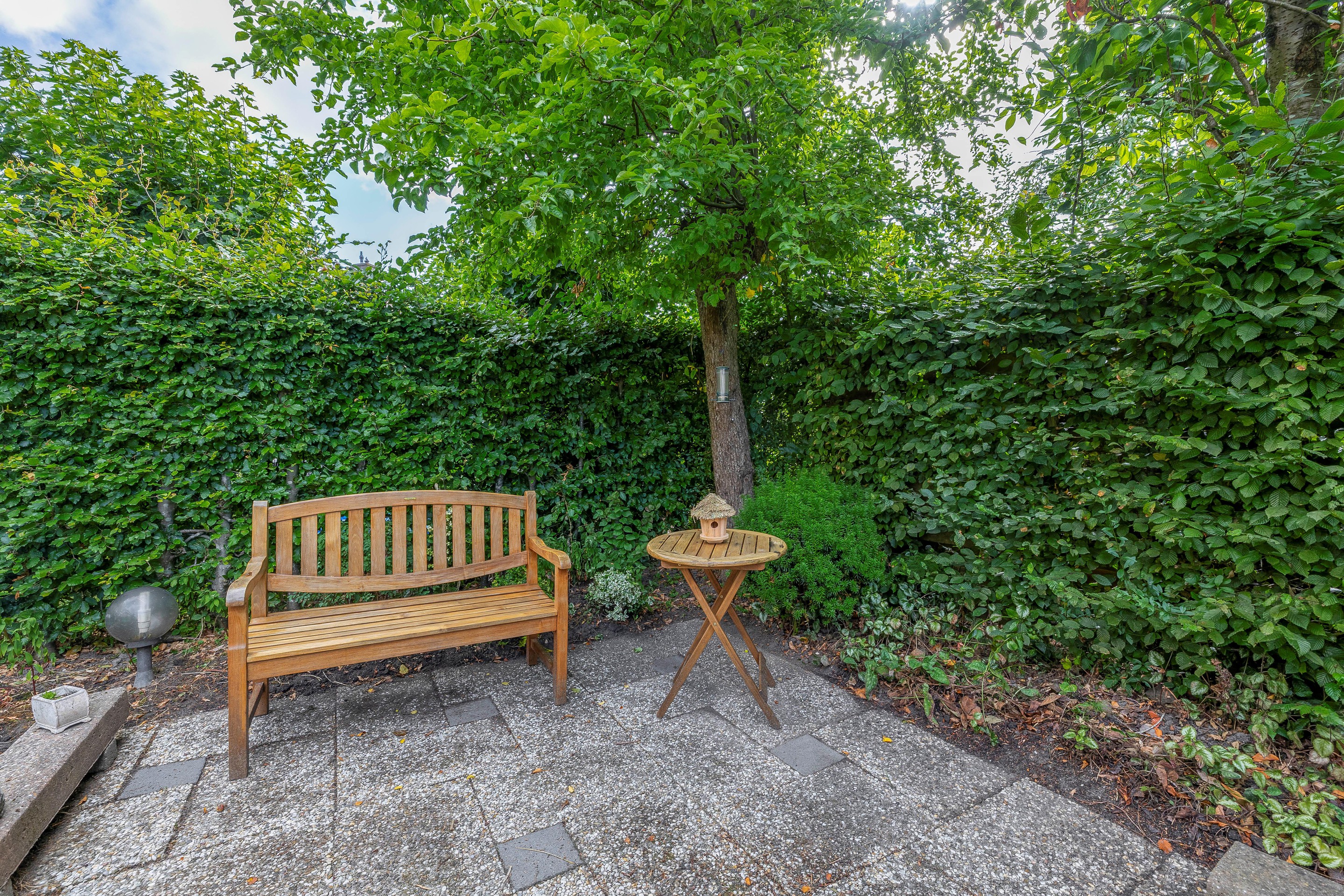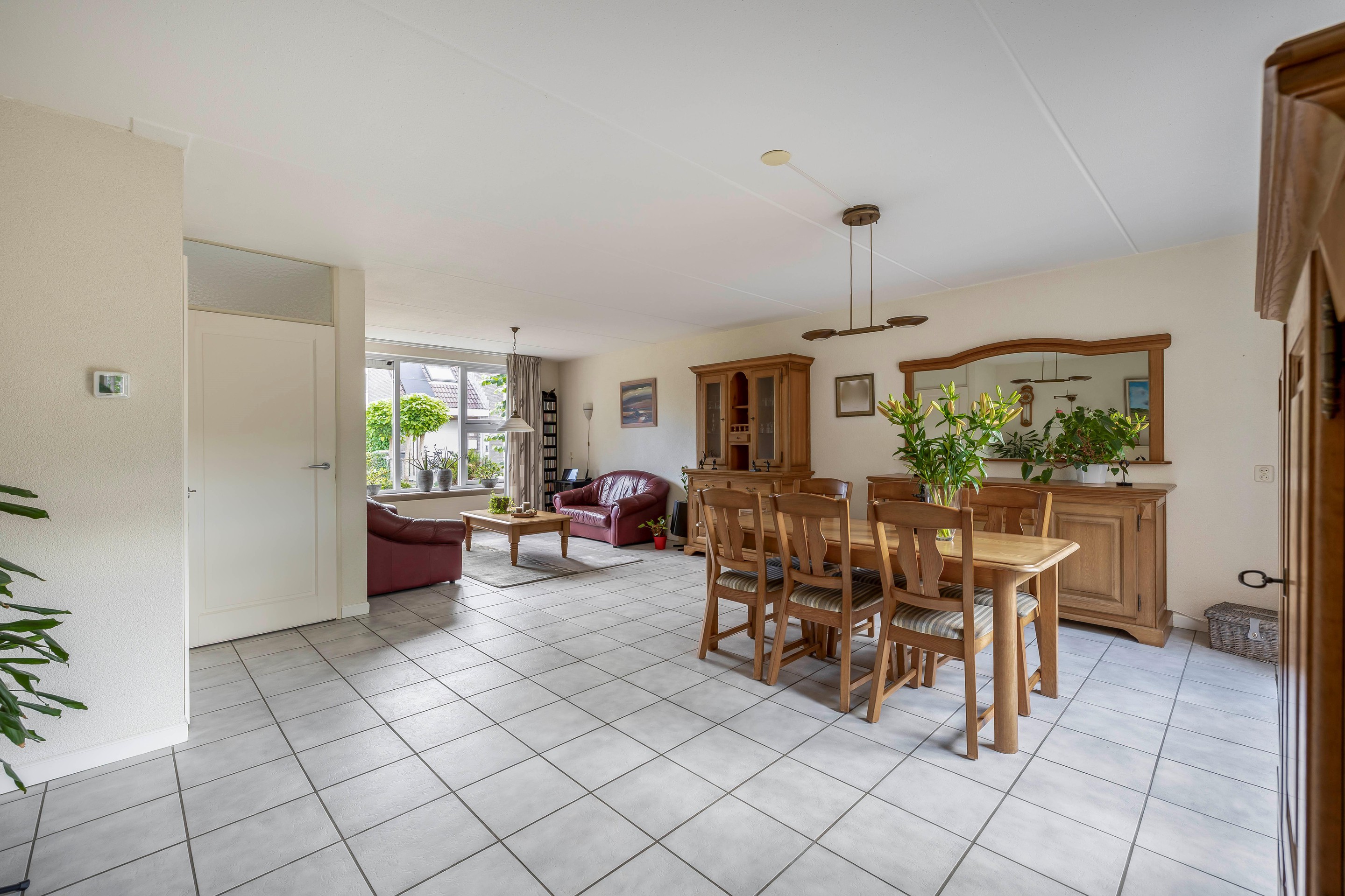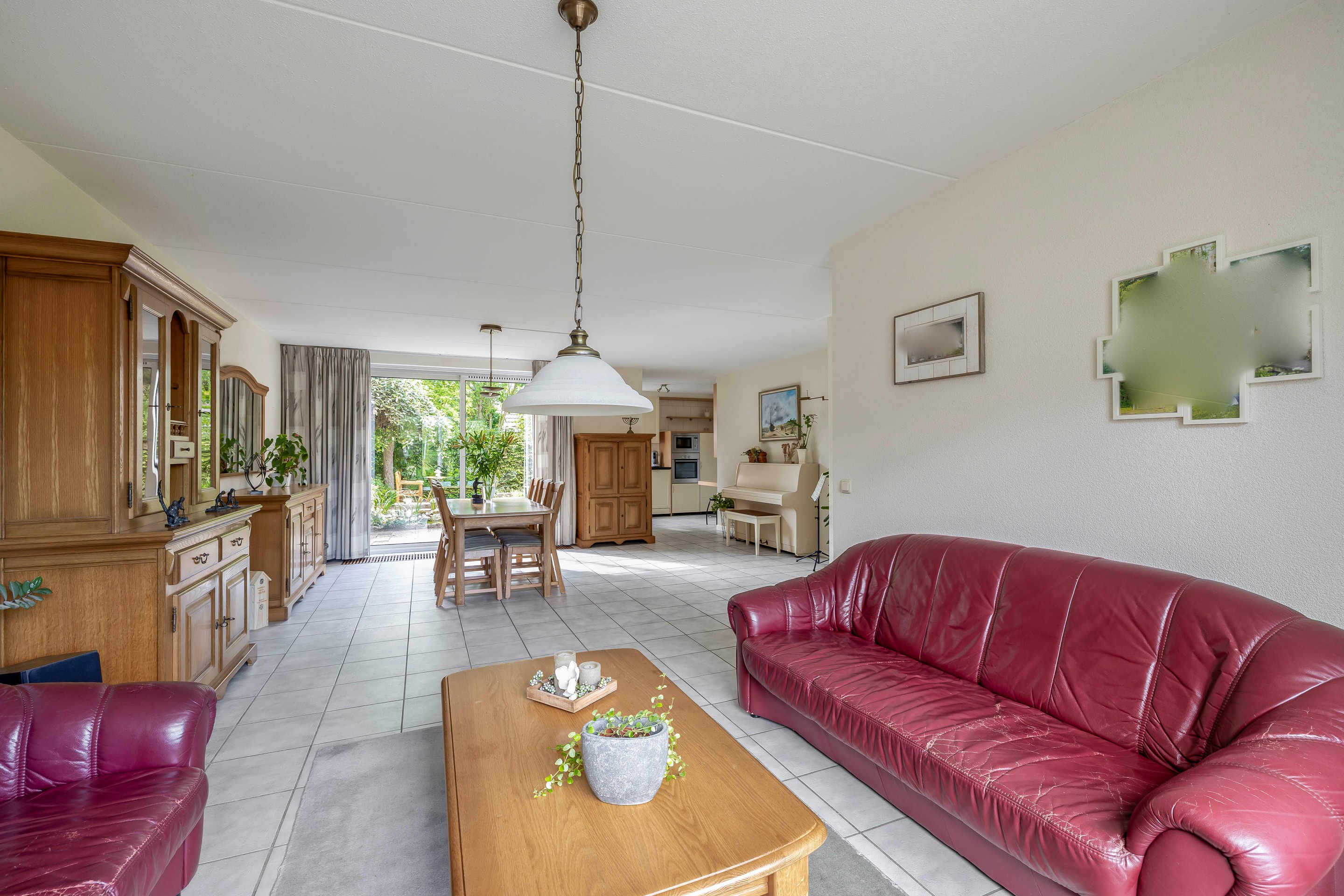 De halfopen keuken in hoekopstelling is compleet uitgerust met diverse inbouwapparatuur, waaronder een 5-pits gaskookplaat, afzuigkap, magnetron, oven, koelkast en vaatwasser. Vanuit de keuken bereikt u de bijkeuken met een aansluiting voor de wasmachine. De bijkeuken biedt zowel toegang tot de tuin als tot de garage.
