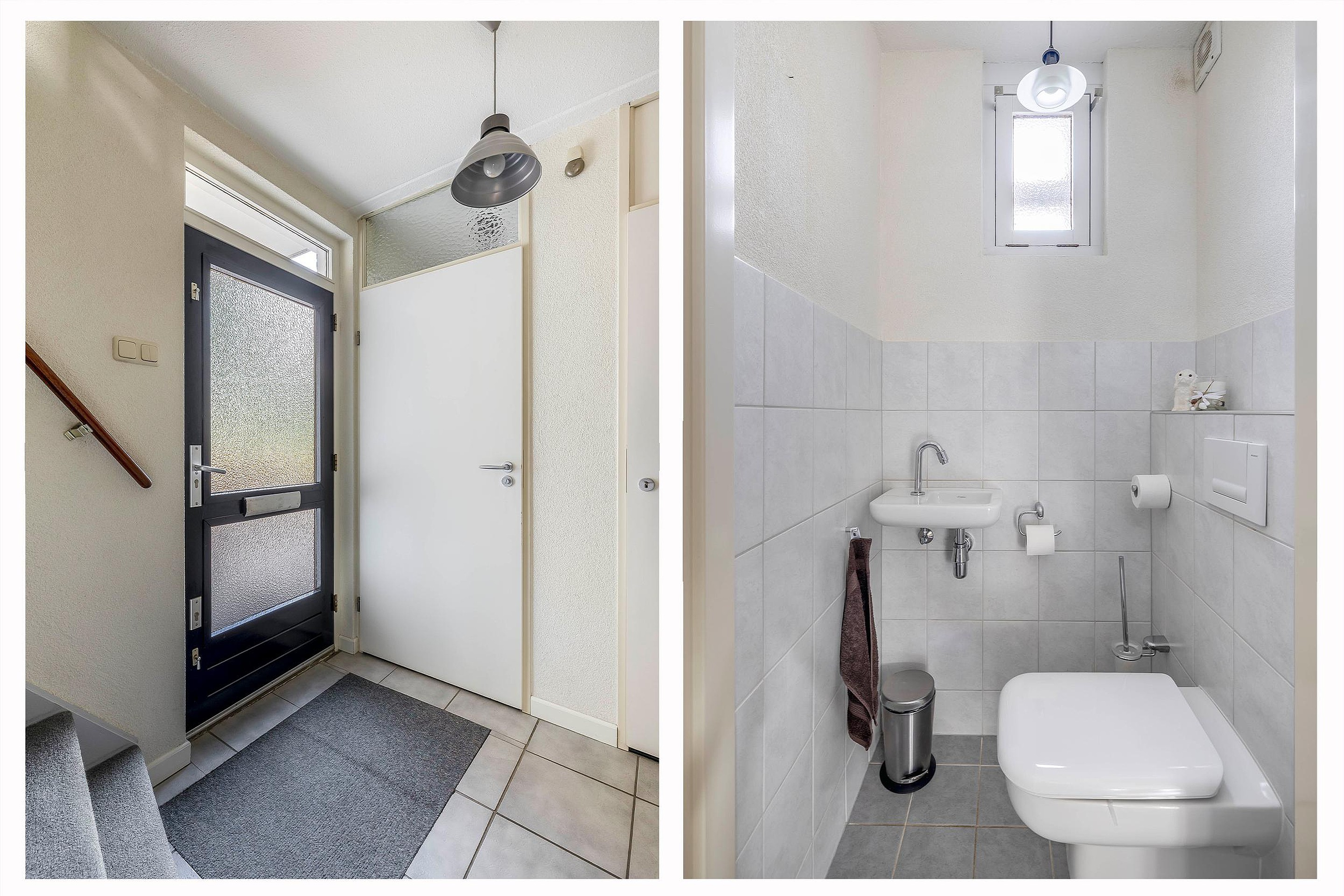 Begane grond Begane grond: Bij binnenkomst op de begane grond betreedt u de hal, die toegang biedt tot de meterkast (9 groepen met 3 aardlekschakelaars) en de modern betegelde toiletruimte met toilet en fonteintje.