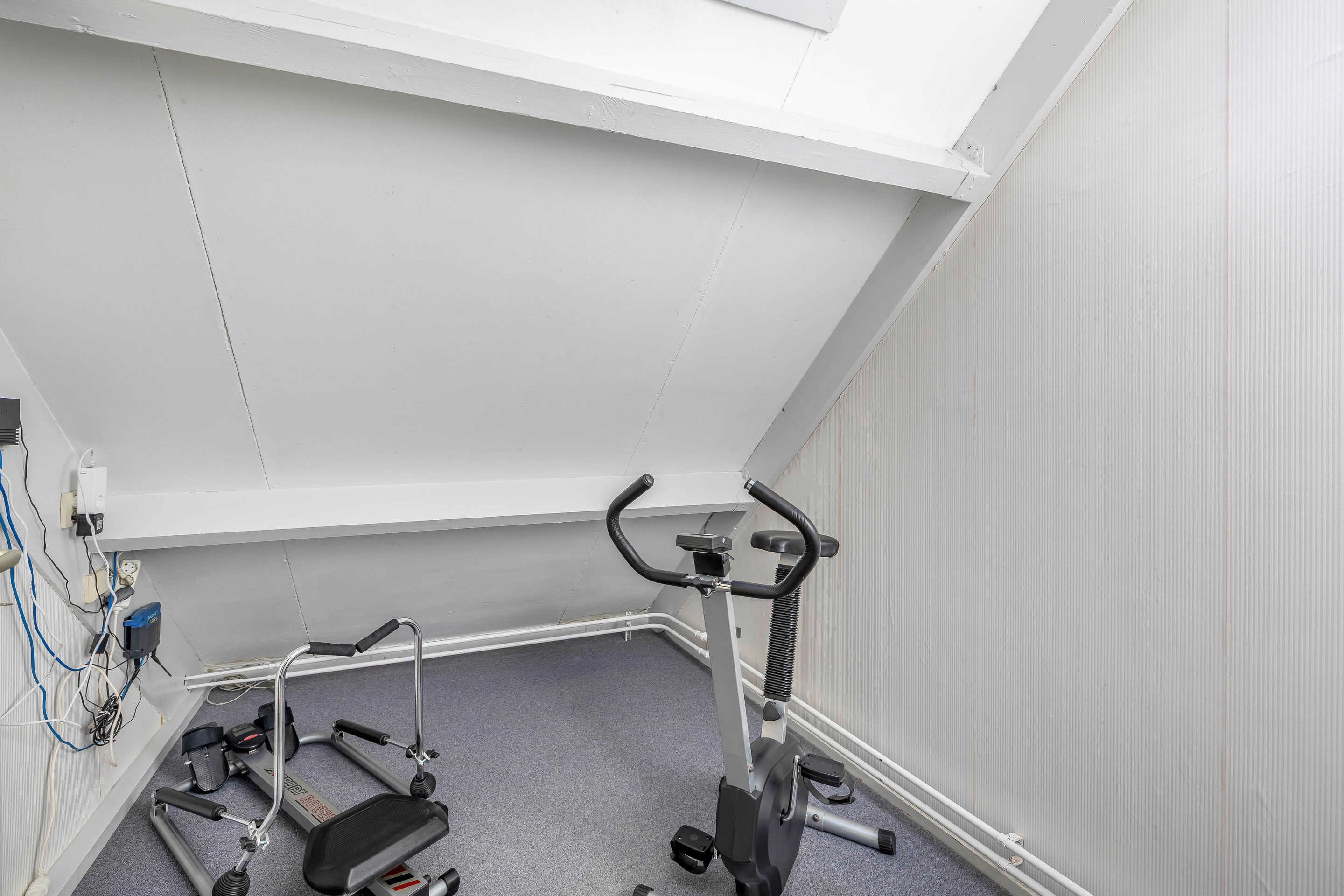 Naast de slaapkamers is er een praktische bergruimte. Hier is de opstelplaats voor de cv-installatie, waardoor deze uit het zicht is en er geen kostbare ruimte in andere vertrekken wordt ingenomen. Tot slot is er onder de schuine delen van de kap extra bergruimte gecreëerd.
