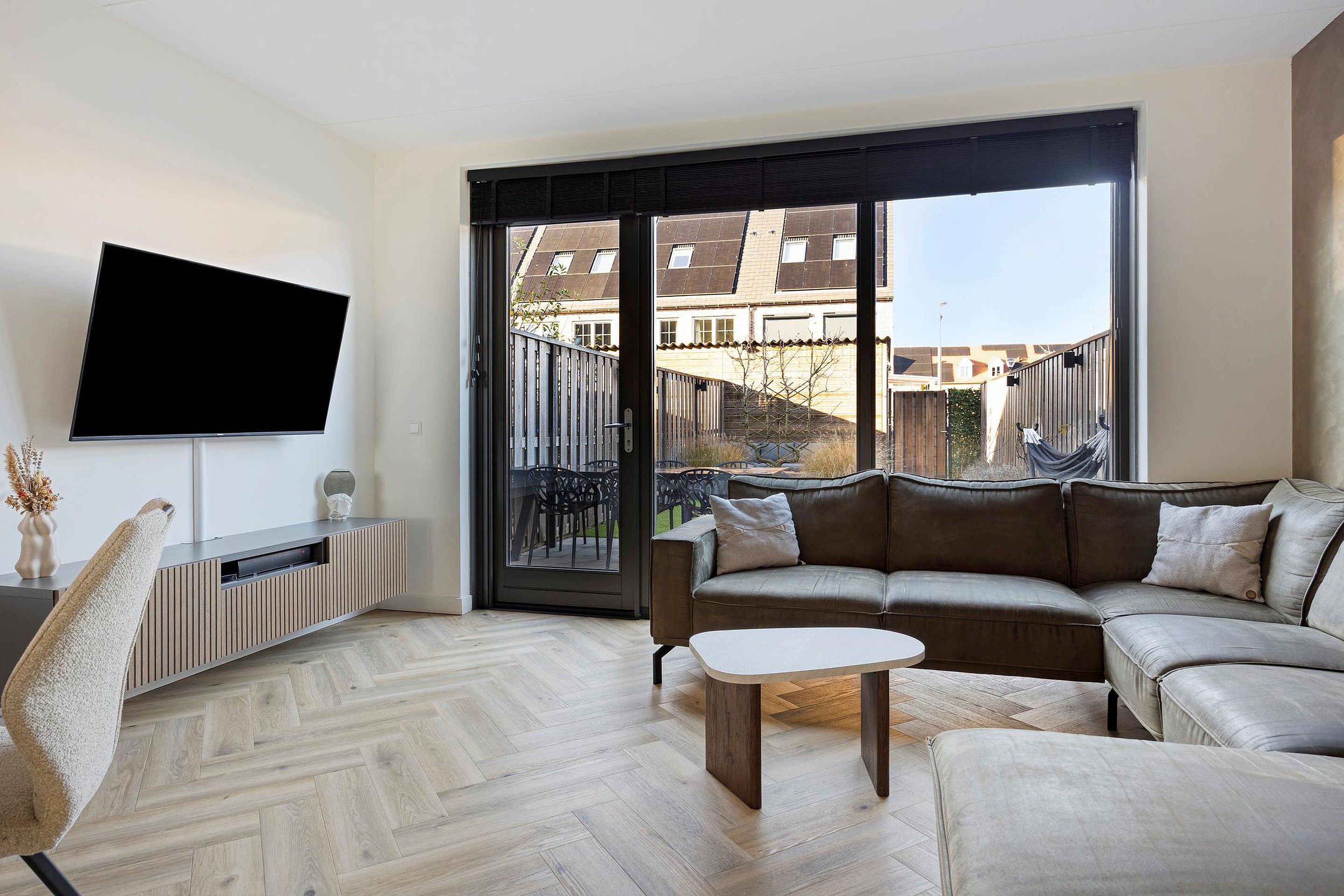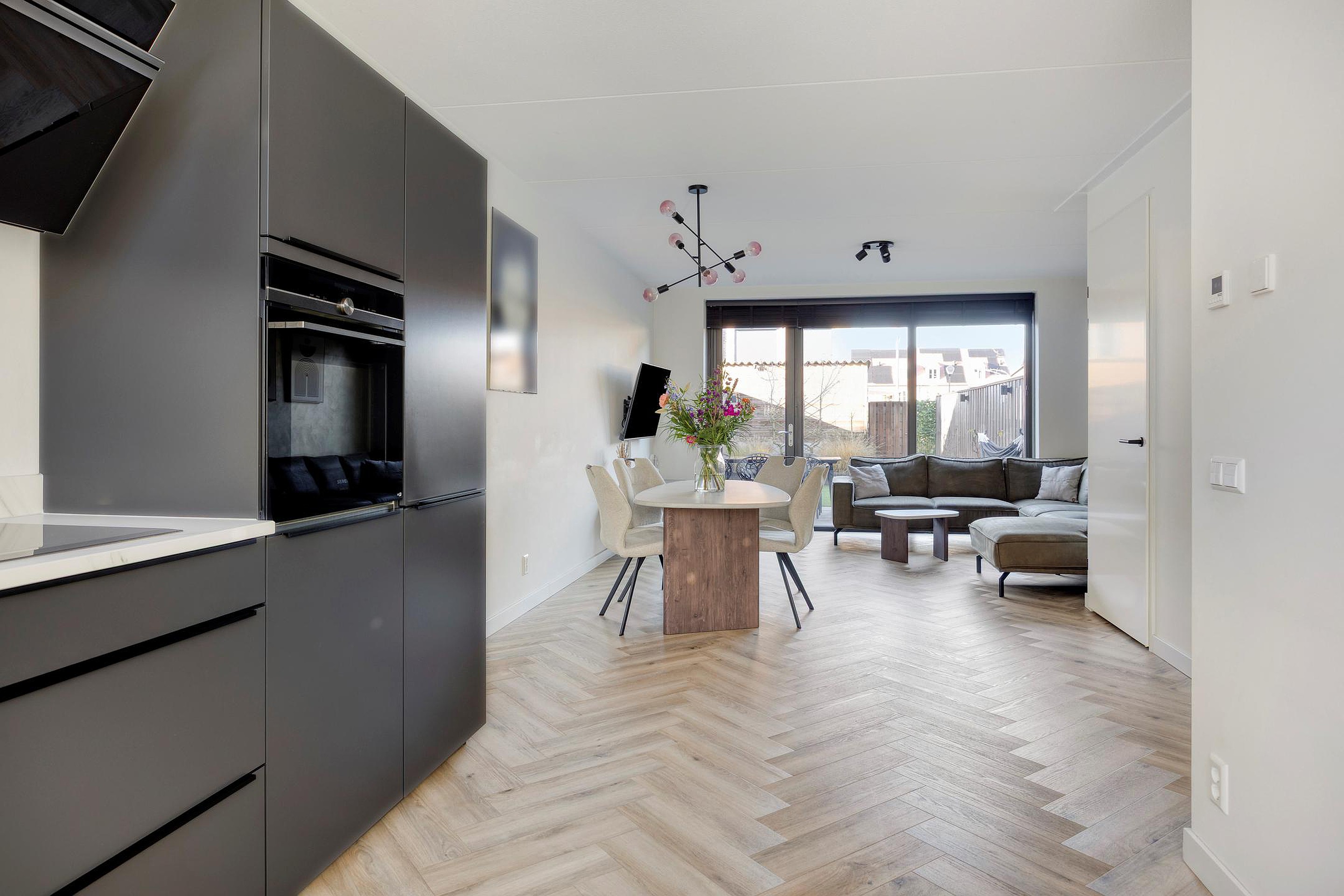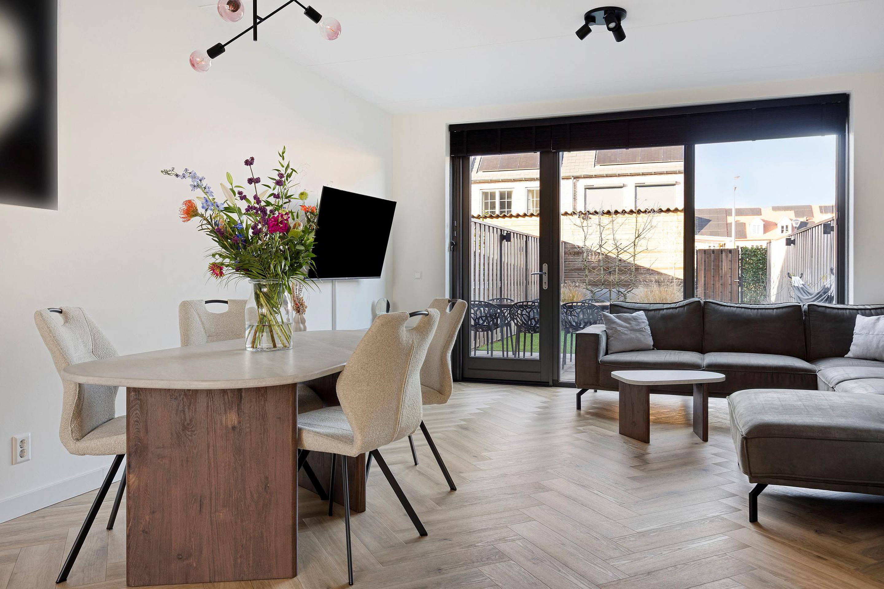 De lichtrijke woonkamer is ruim te noemen De strakke afwerking voelt ruim en rustig.
