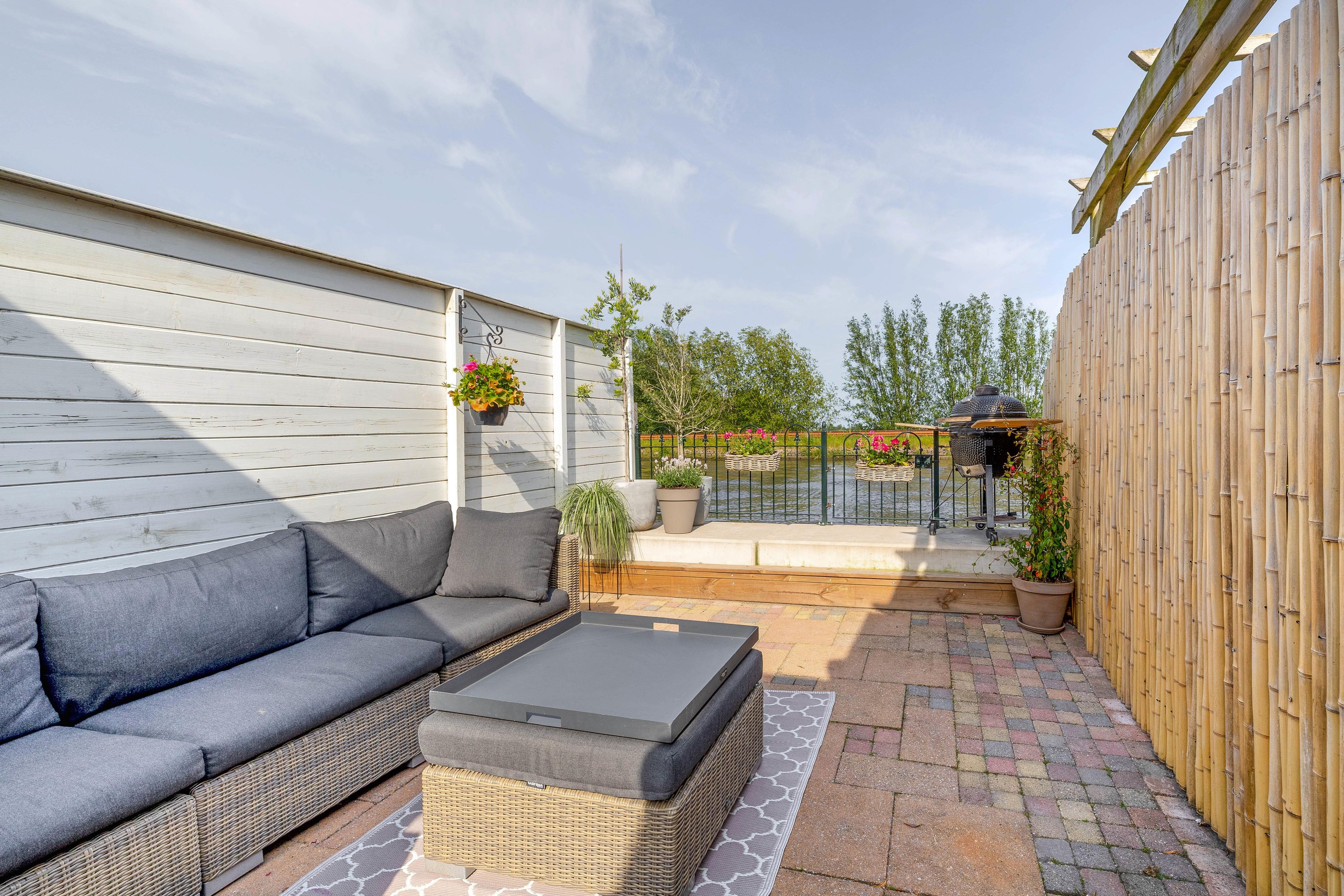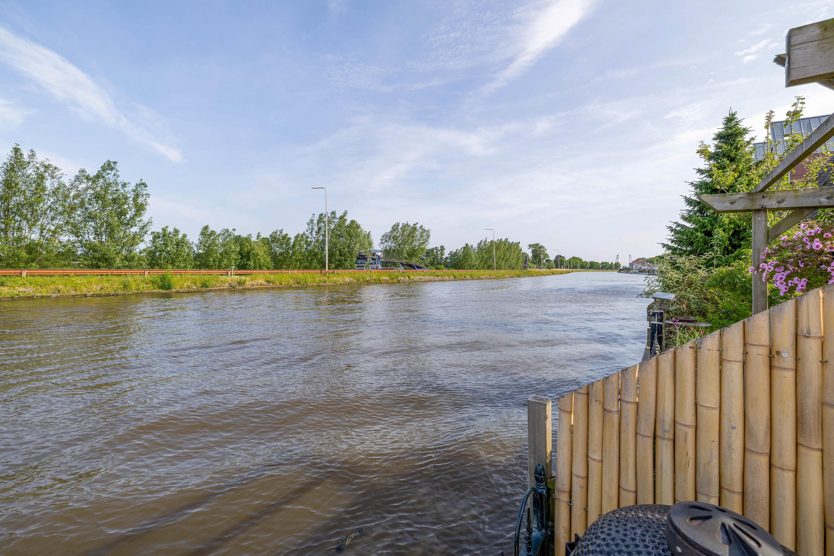 De tuin is direct gelegen aan het water. Bij mooi weer is het heerlijk aan de waterzijde te verblijven, genieten en kijken naar de scheepvaart op de Gouwe.
