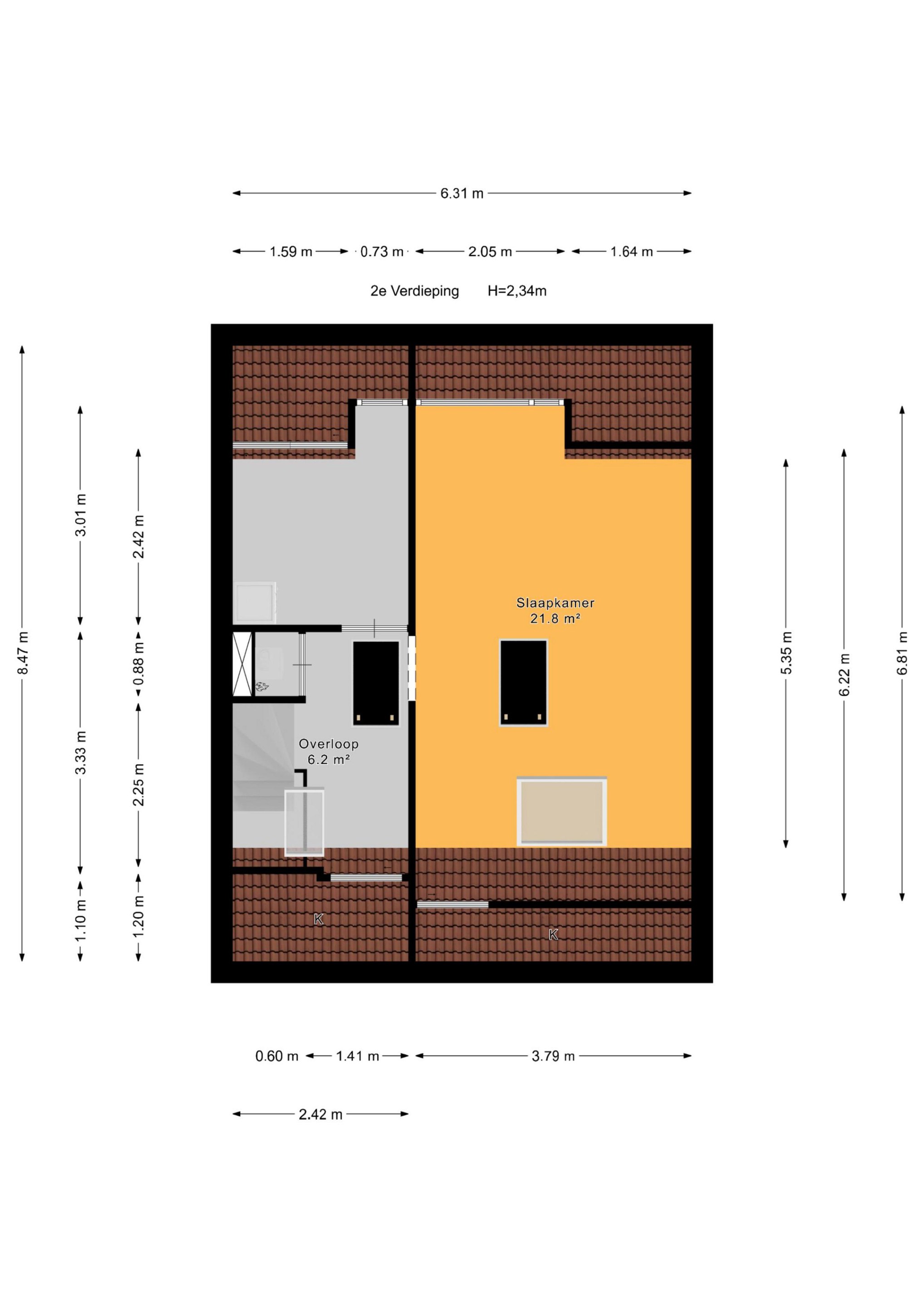 Over de afwerking is nagedacht: de overloop en beide slaapkamers zijn uniform afgewerkt met een nette laminaatvloer. De badkamer en het separate toilet hebben een onderhoudsvriendelijke plavuizen vloer.