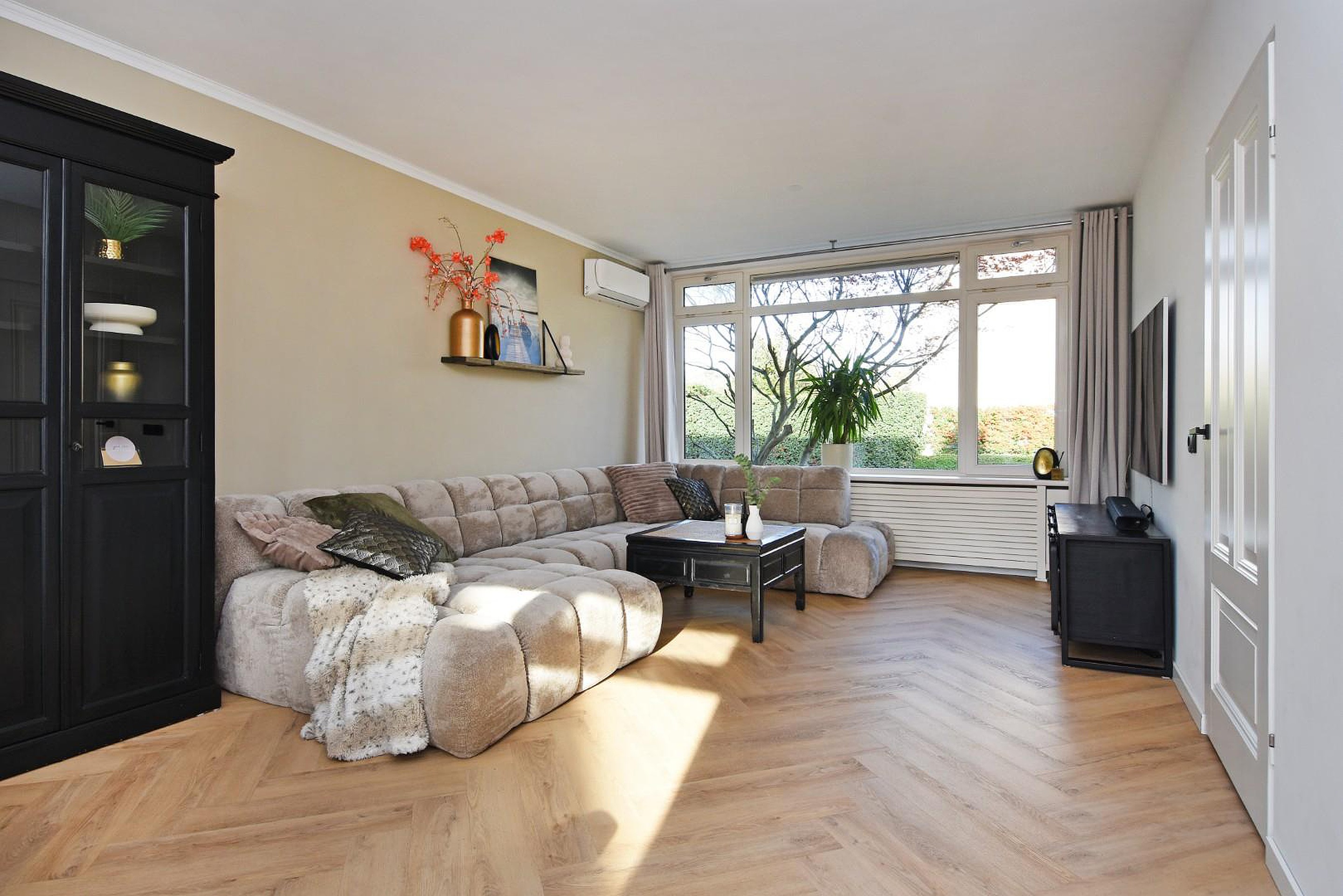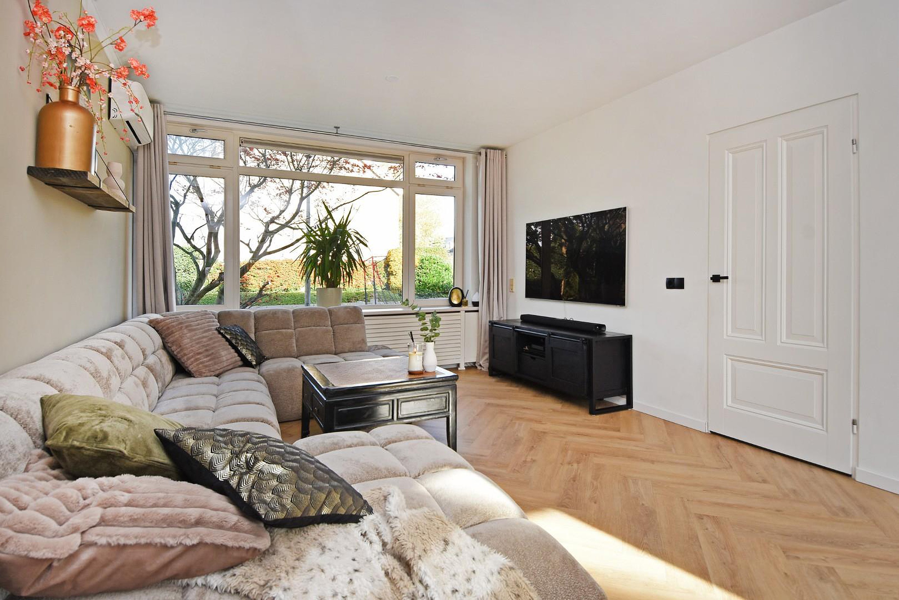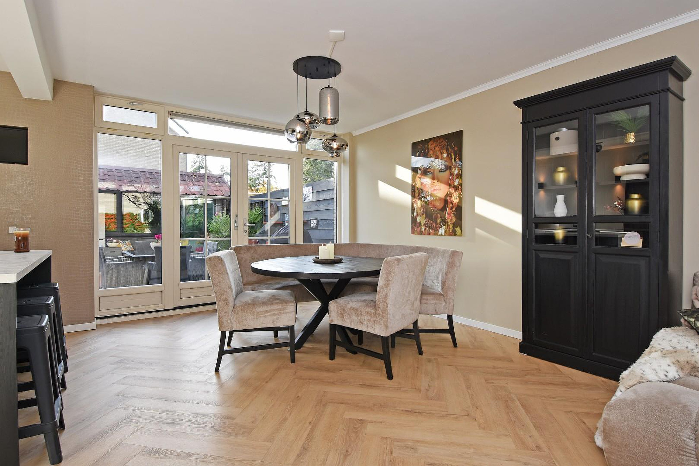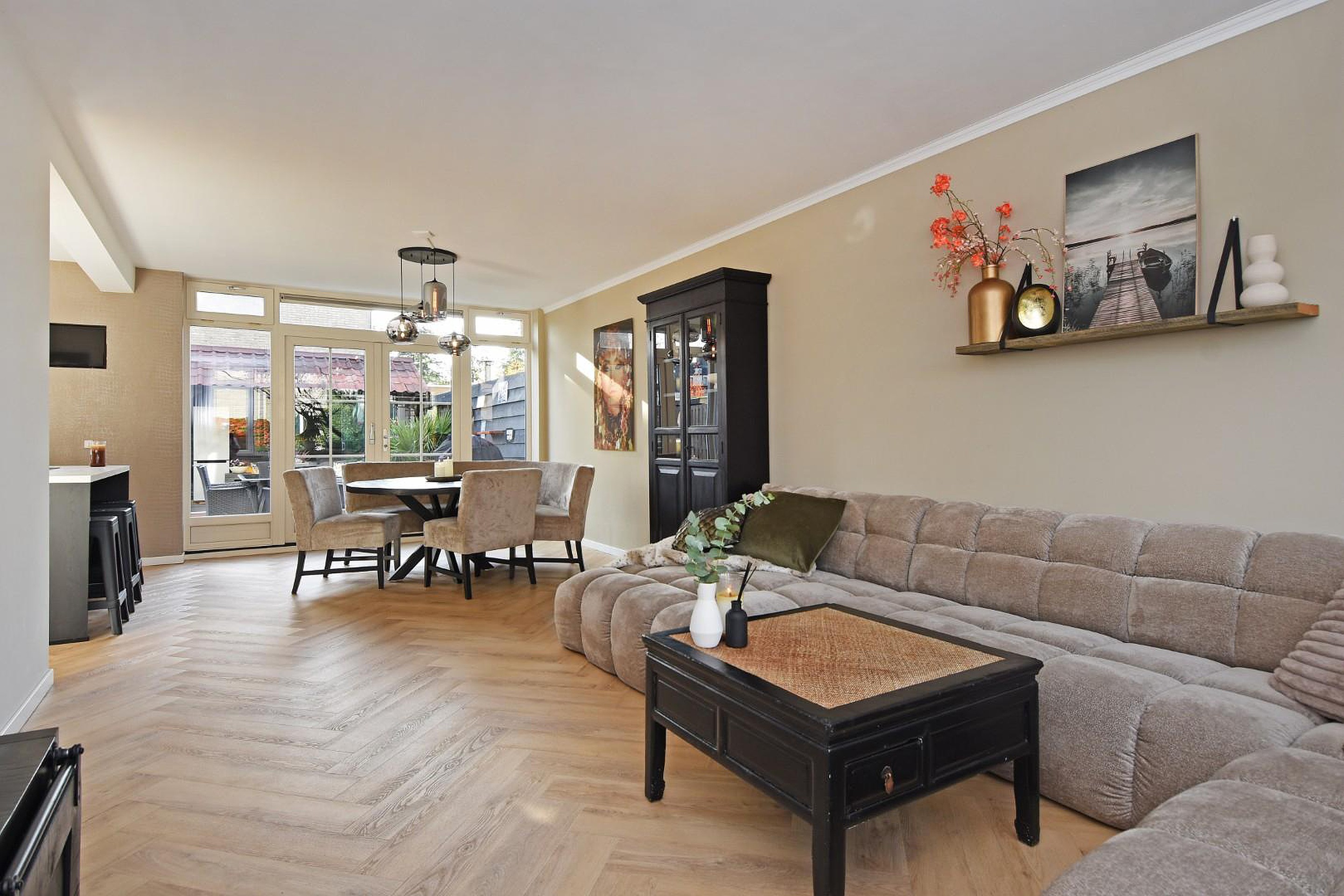 Via een stijlvolle deur bereikt u de lichte doorzon woonkamer. De zithoek is aan de voorzijde gesitueerd, terwijl de eethoek aan de achterzijde – met openslaande deuren – direct toegang biedt tot de buitenruimte.