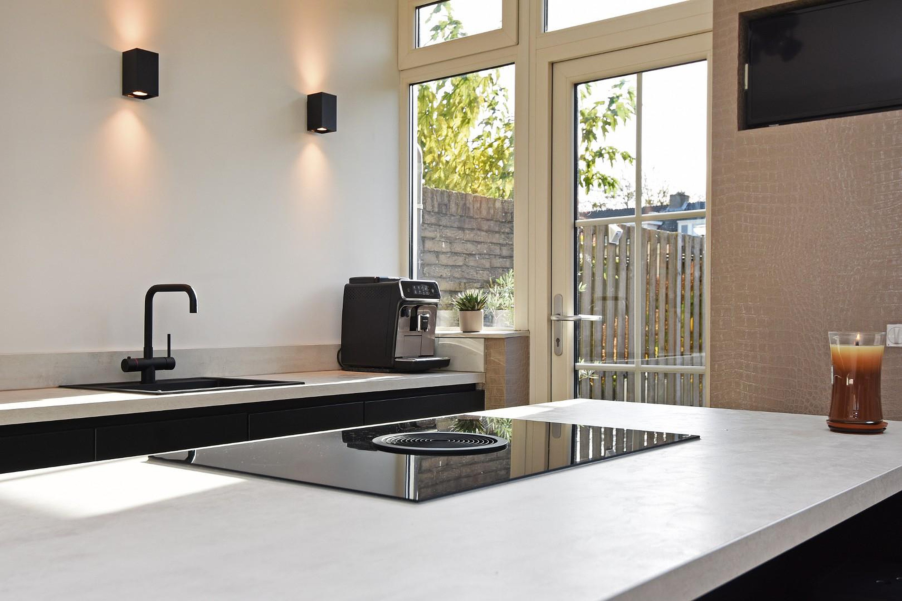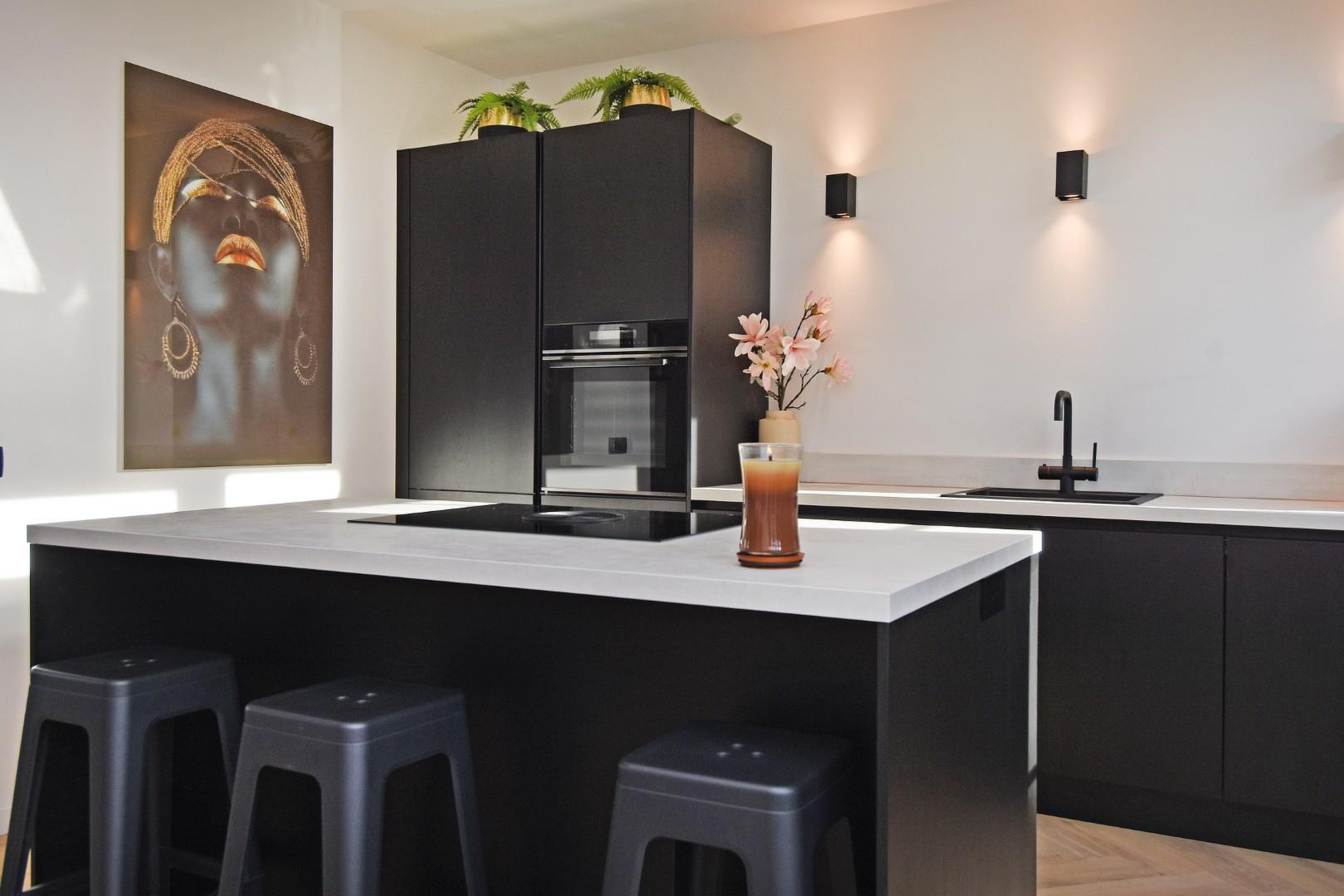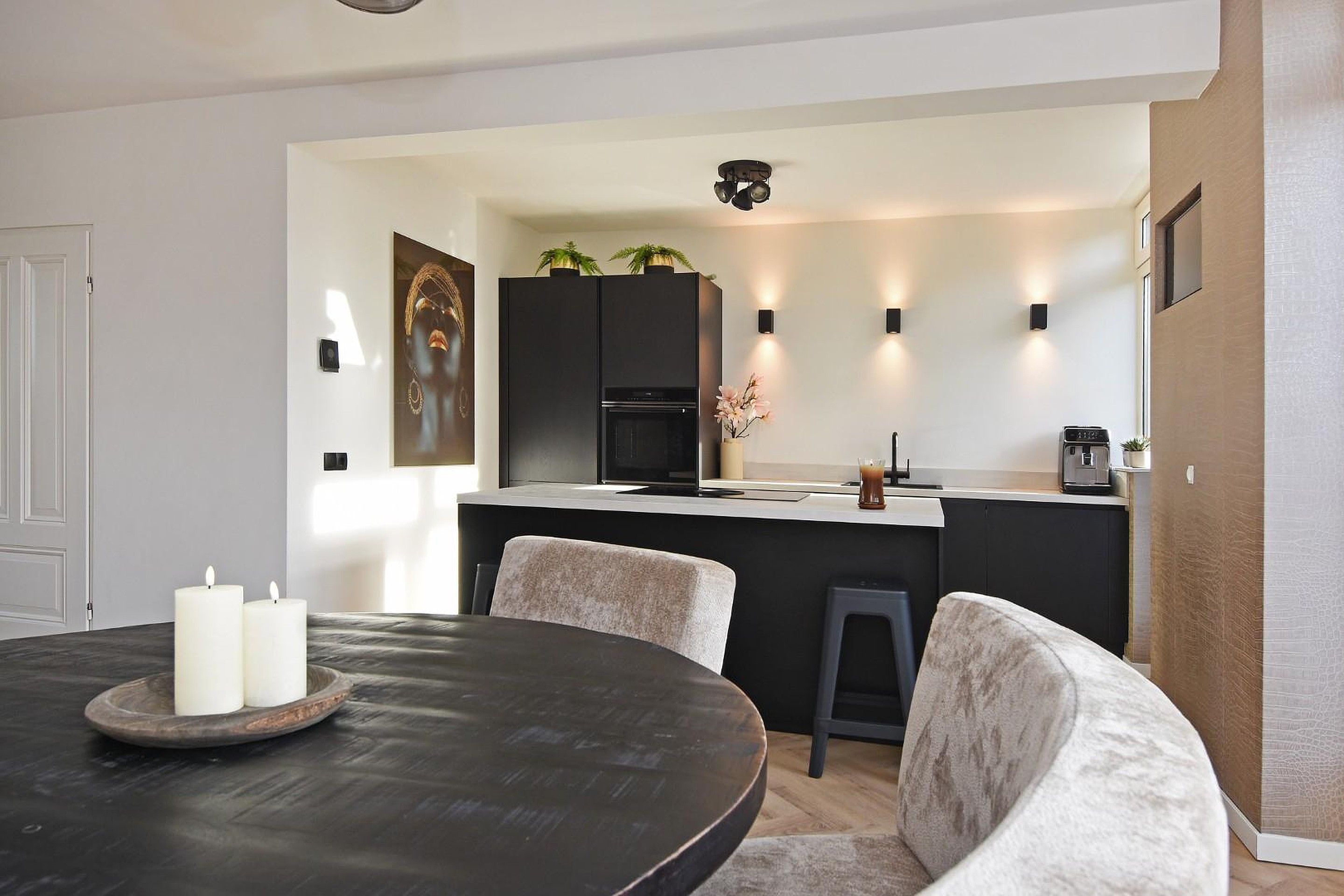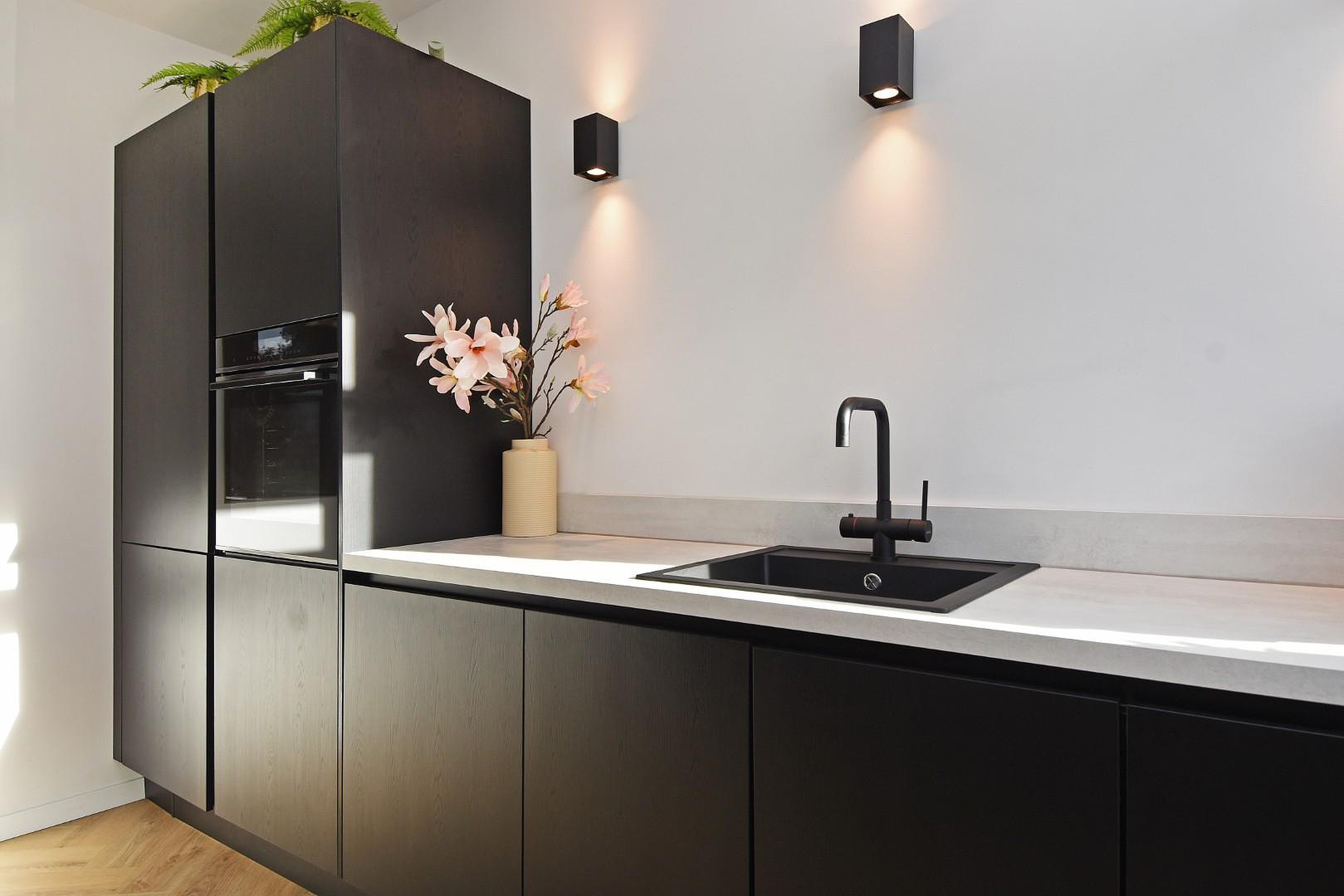 De twee jaar oude keuken is strak en modern uitgevoerd met zowel een rechte opstelling als een kookeiland. Qua apparatuur is de keuken rijk uitgerust met onder meer een koel-/vriescombinatie, oven, een inductiekookplaat met geïntegreerde afzuiging, een kokendwaterkraan en een vaatwasser. De ingebouwde televisie in de keuken blijft als extraatje achter bij de verkoop.