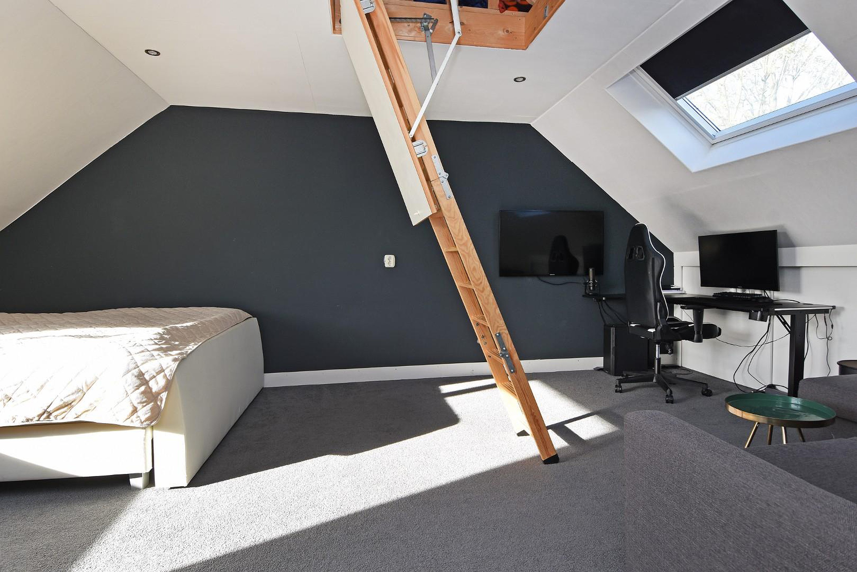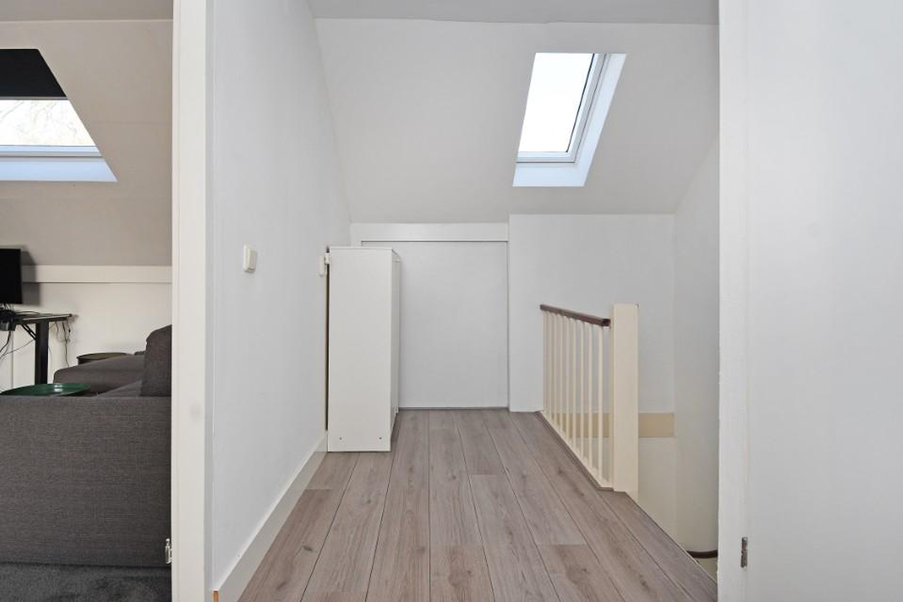 Tweede verdieping De zolderverdieping is efficiënt ingedeeld en biedt een ruime slaapkamer, verlicht door een kunststof dakkapel. Praktische zaken zijn hier netjes gescheiden: de CV-ruimte met de in 2016 geplaatste Intergas HR-installatie, en een aparte waskamer met aansluitingen voor de wasmachine en droger. Over bergruimte is nagedacht. De overloop beschikt over opslagruimte onder de schuine kap aan de voorzijde, plus een vlizotrap naar de vliering in de nok. Ook in de slaapkamer is een vlizotrap aangebracht die toegang geeft tot de berging boven het plafond van de kamer. Extra daglicht is gewaarborgd door dakramen in zowel de overloop als de slaapkamer.