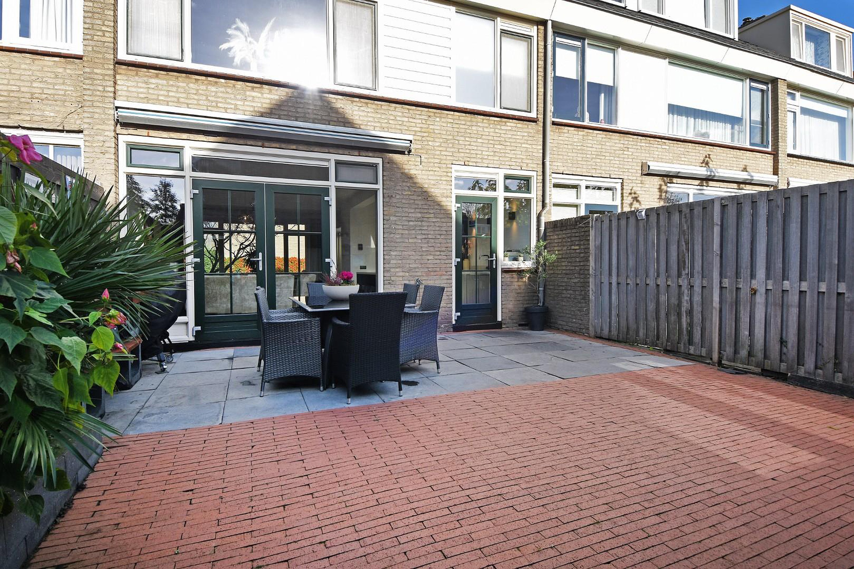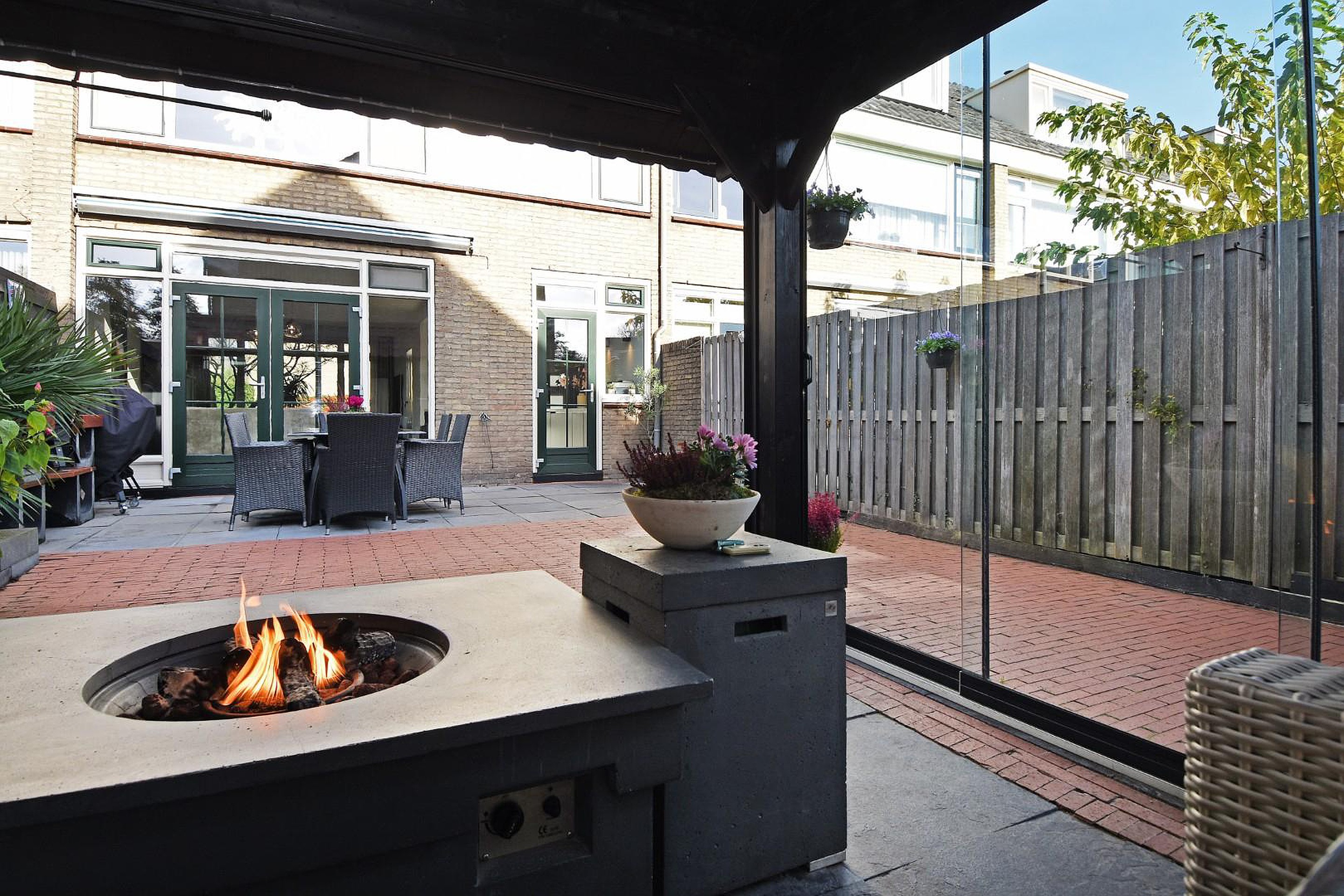 Tuin De keurig aangelegde achtertuin ligt op het zuiden en is onderhoudsvriendelijk, met smaakvolle borders. Direct aan de woning grenst een sfeervolle veranda. Deze is afsluitbaar met glazen schuifdeuren, wat zorgt voor een comfortabele buitenruimte, ook tijdens koudere periodes. Achterin de tuin staat de stenen berging, ideaal voor het stallen van fietsen.