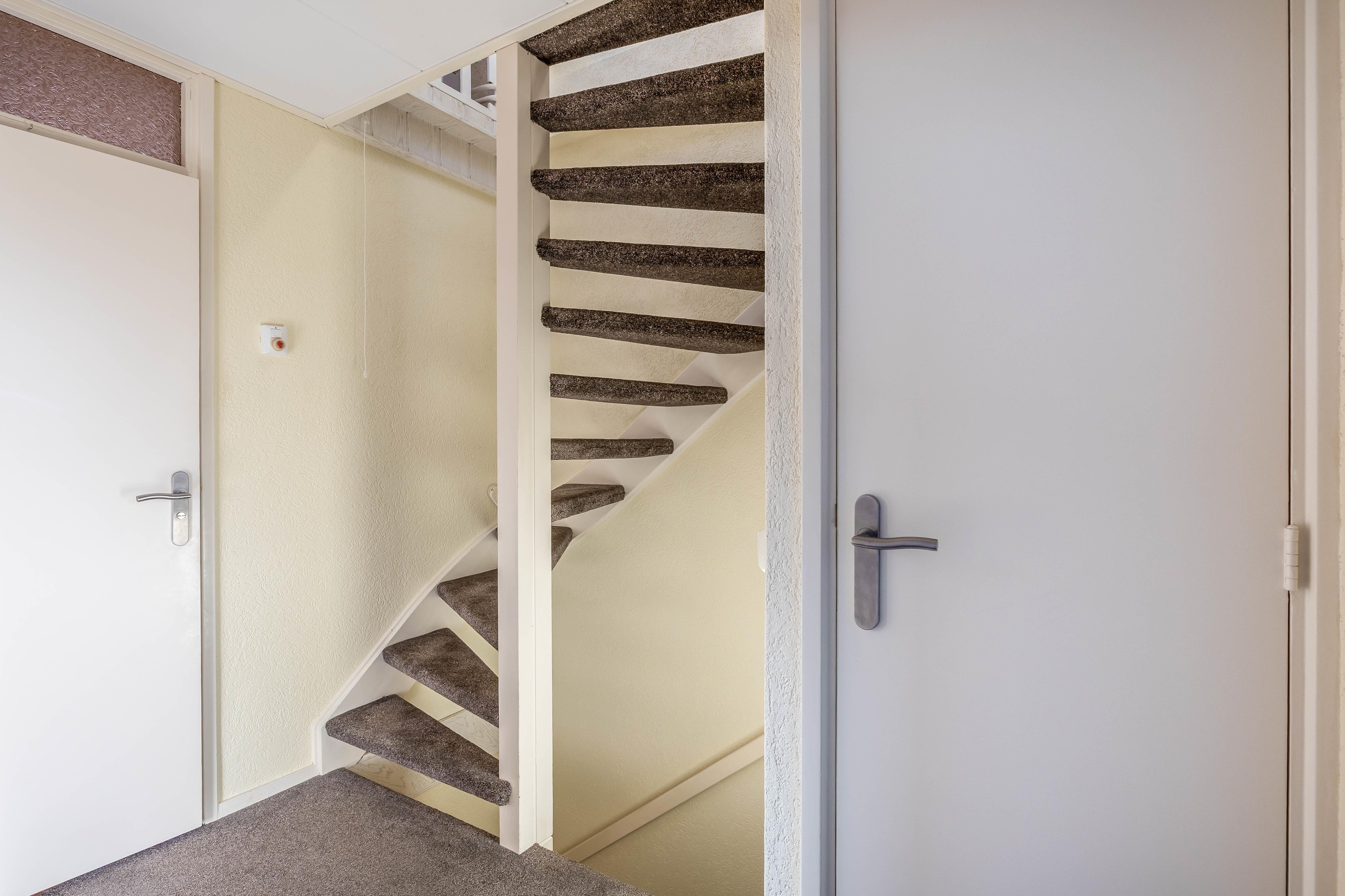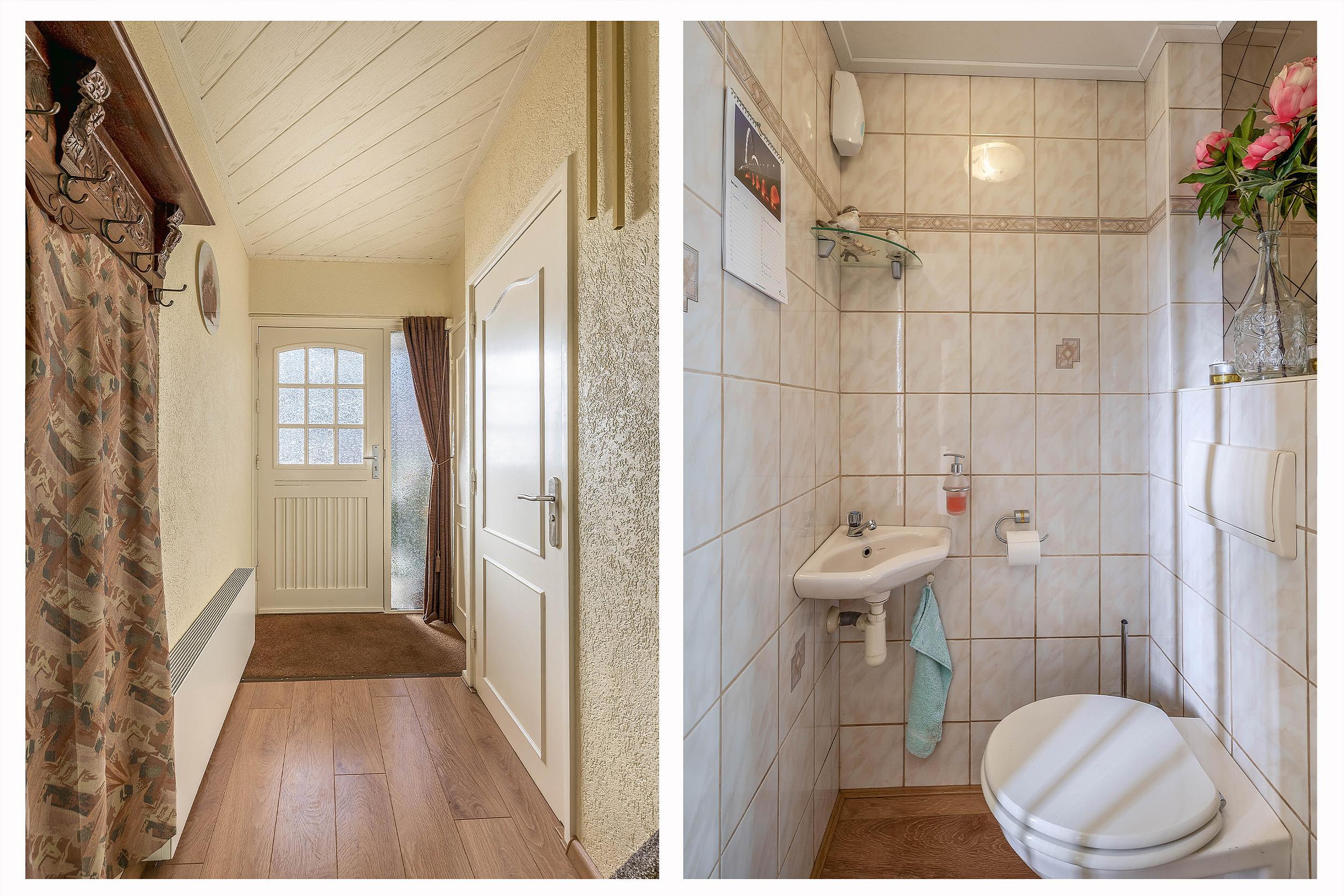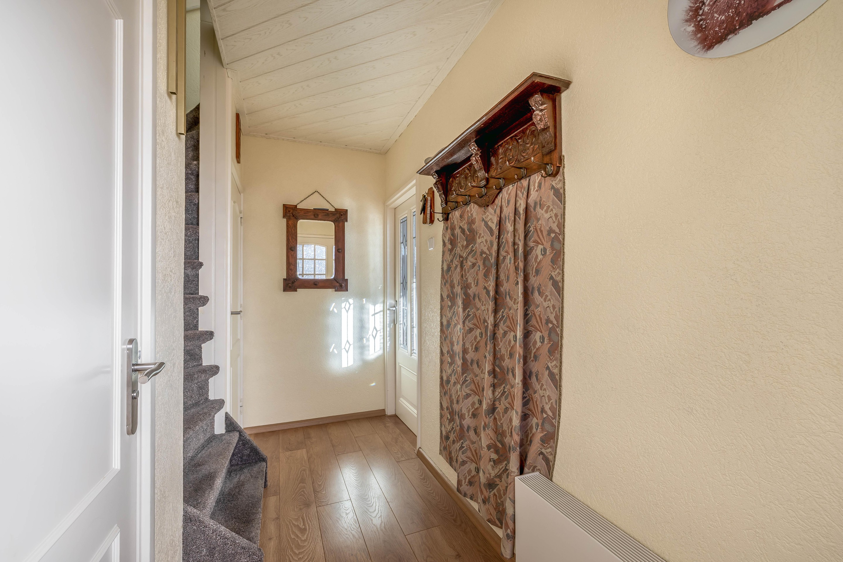 Begane grond Via de verzorgde voortuin betreed je de woning en kom je binnen in de ruime en overzichtelijke hal, waar direct de prettige indeling opvalt. Hier bevinden zich de meterkast, het toilet, de trapopgang naar de verdiepingen en een praktische ingebouwde kast onder de trap, ideaal voor jassen, schoenen en extra bergruimte.