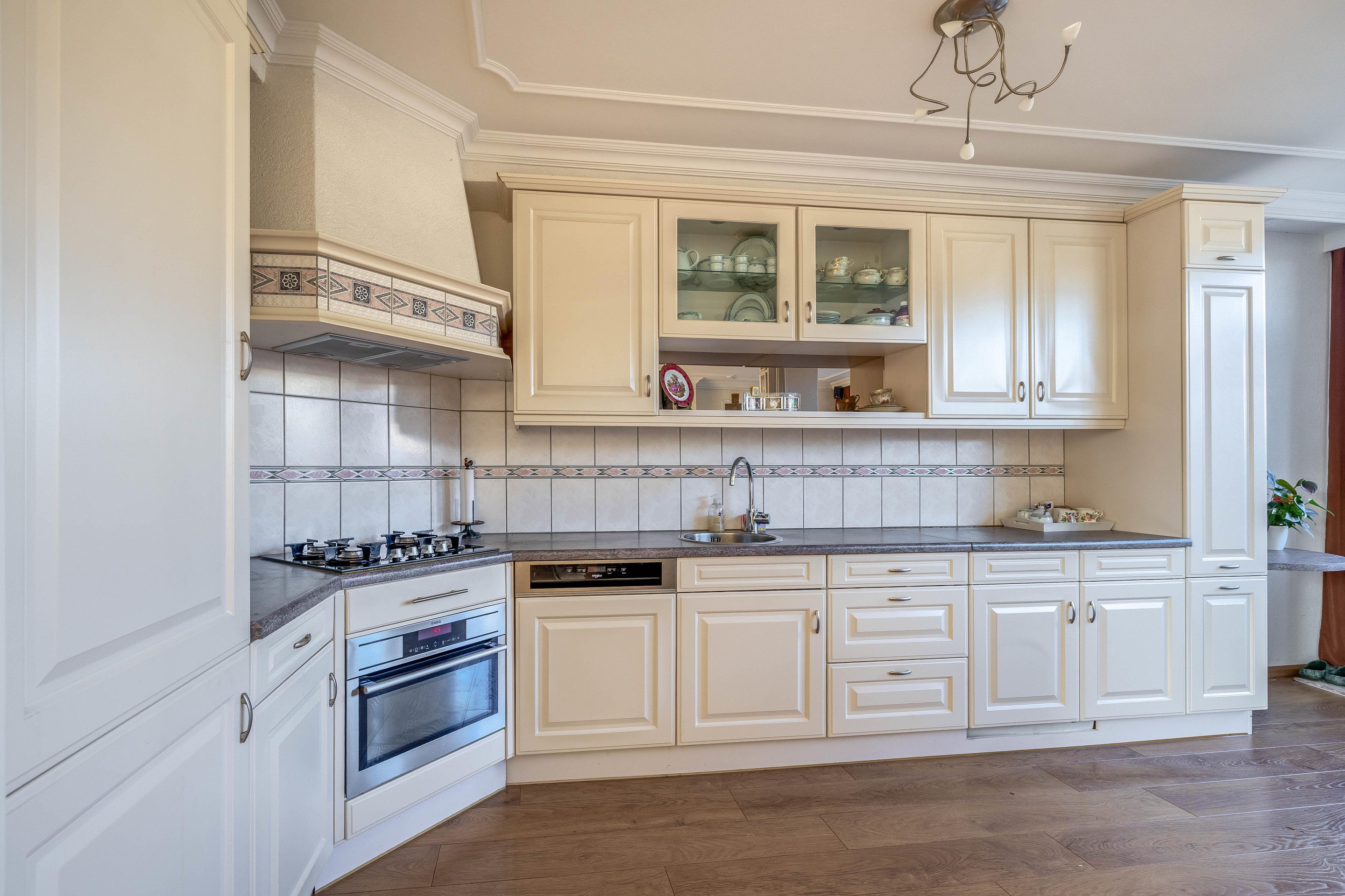 De keuken is praktisch ingericht en verzorgd onderhouden, voorzien van de benodigde inbouwapparatuur. In de loop der jaren zijn diverse onderdelen vernieuwd, waaronder de vaatwasser in 2024. Vanuit de keuken is er bovendien een aparte achterdeur naar de tuin, wat het dagelijks gebruik extra praktisch maakt.
