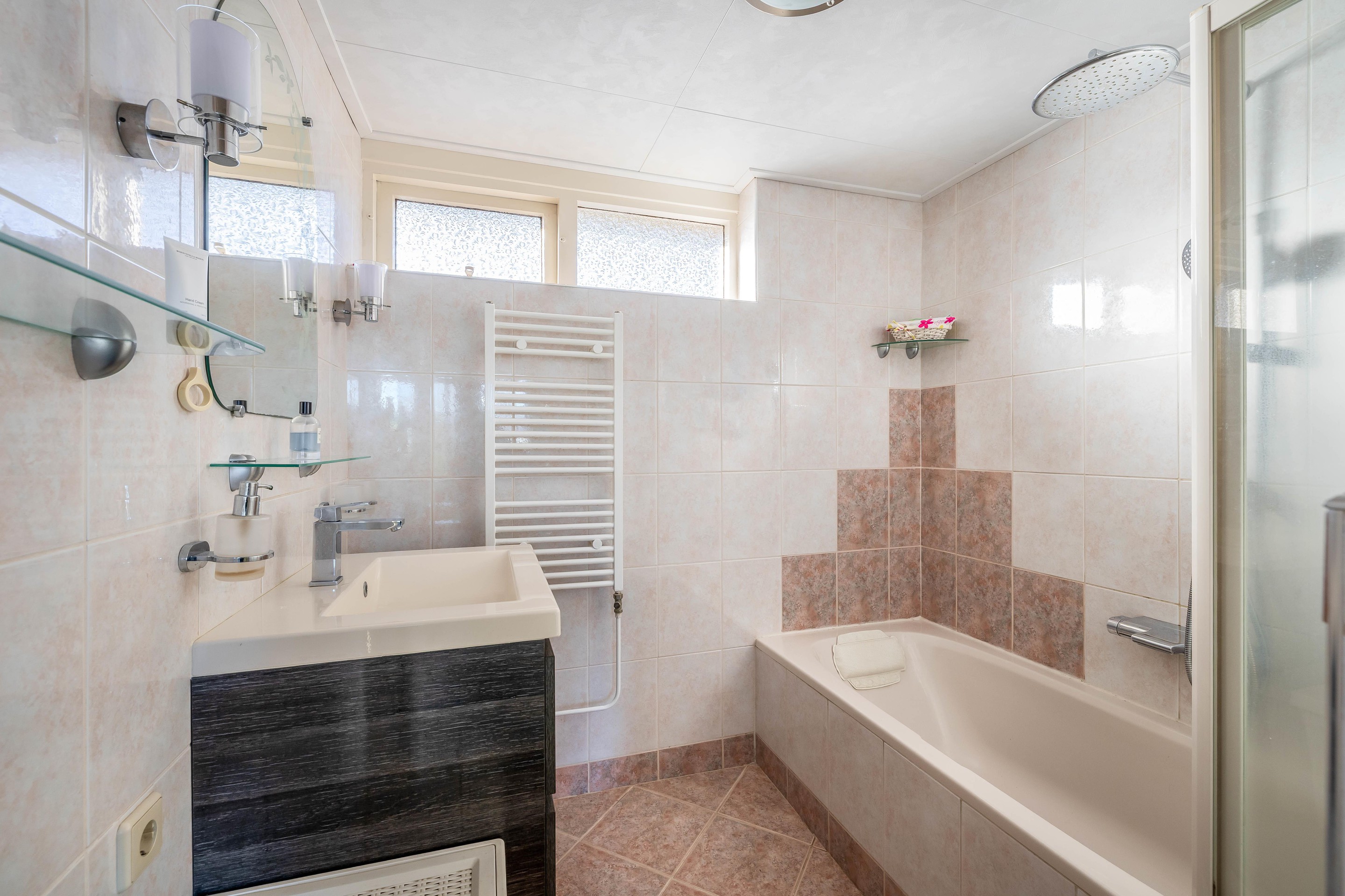 De badkamer is compleet ingericht met een ligbad met douchefunctie, wastafelmeubel en een tweede toilet, praktische toevoeging voor een gezin. De wastafel is vernieuwd in 2019.