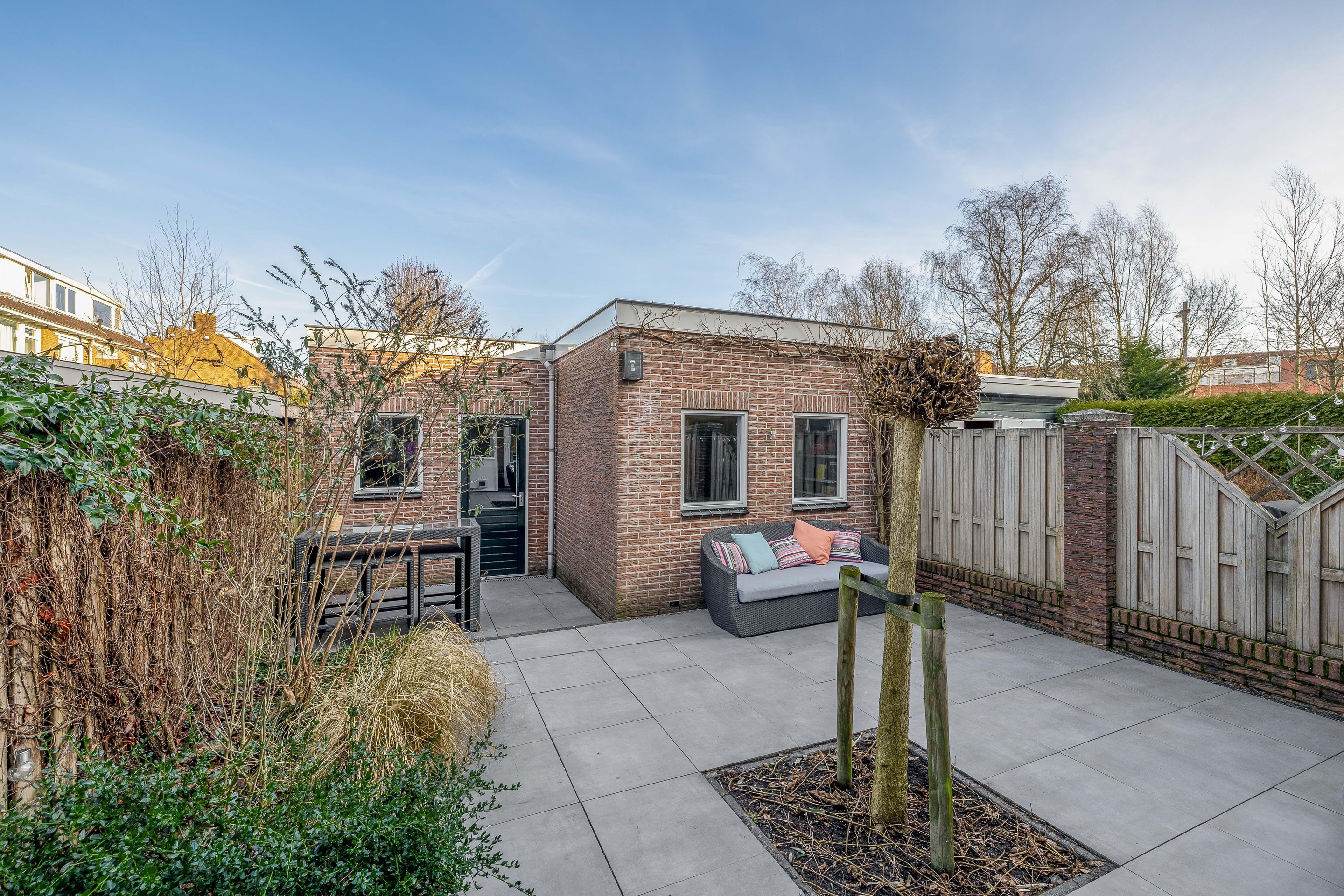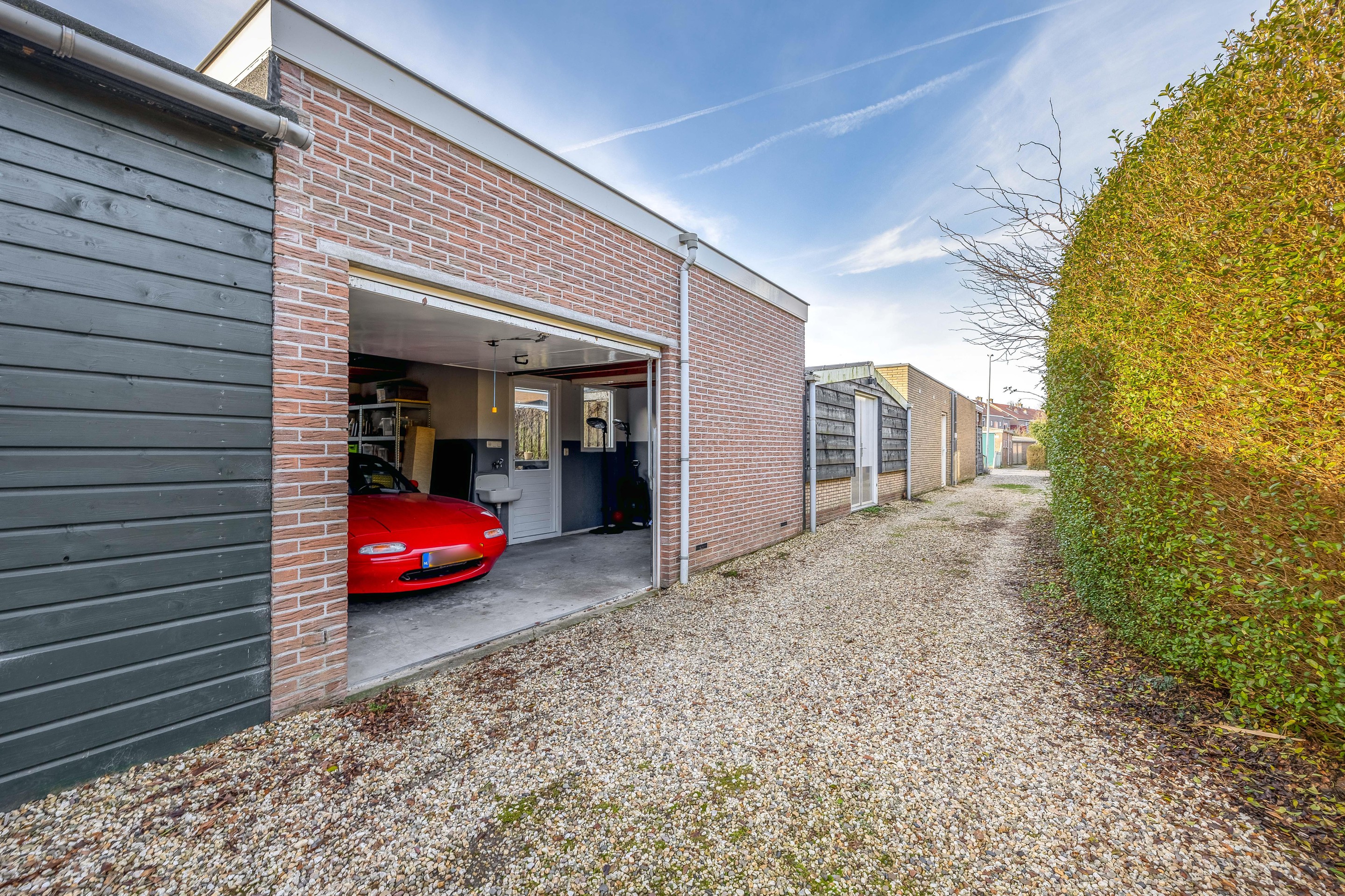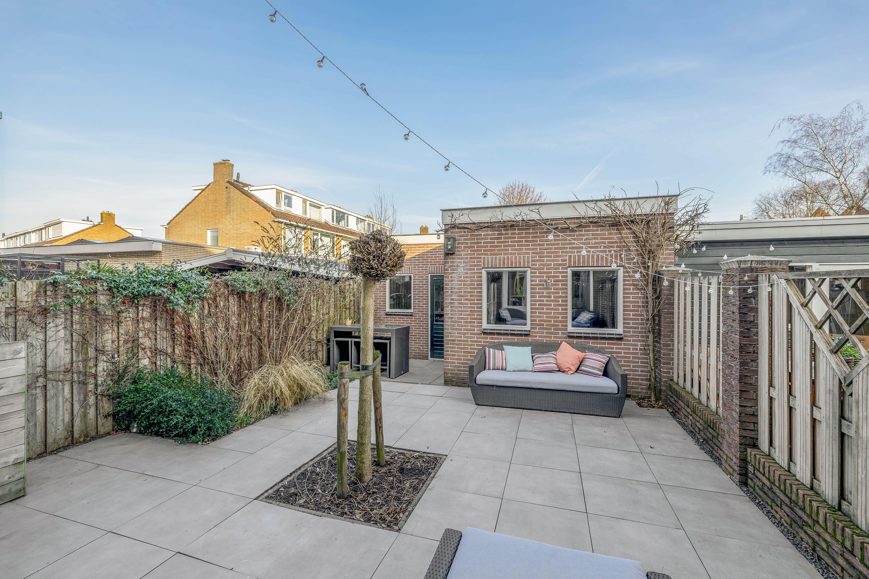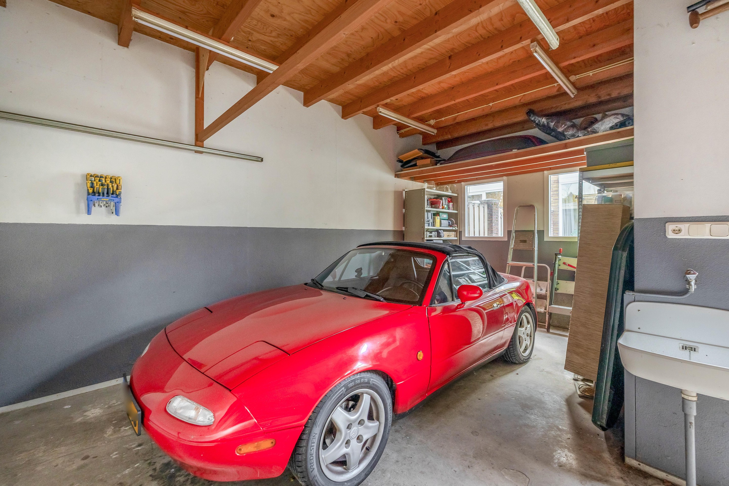 Tuin Garage en tuin: De achtertuin is keurig onderhouden en biedt toegang tot de grote garage van bijna 26 m2. Dit is een ideale plek voor de klusser of voor extra opslag: de garage is bereikbaar via het achterpad en heeft een vliering, een wateraansluiting en elektra.
