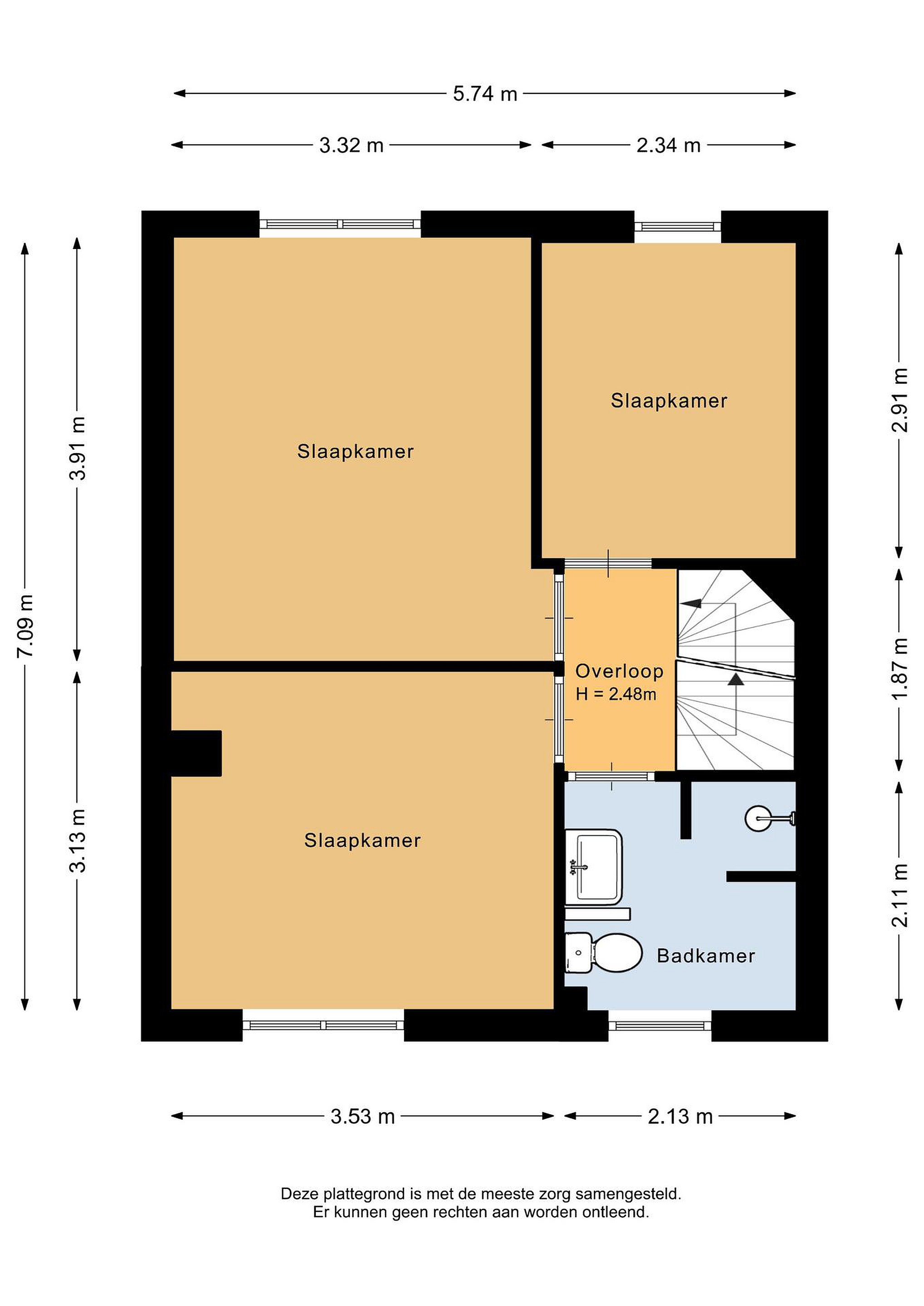 Eerste verdieping Alle drie de slaapkamers, exclusief de overloop, zijn voorzien van laminaat op de vloer en wanden met behang of glad stucwerk.