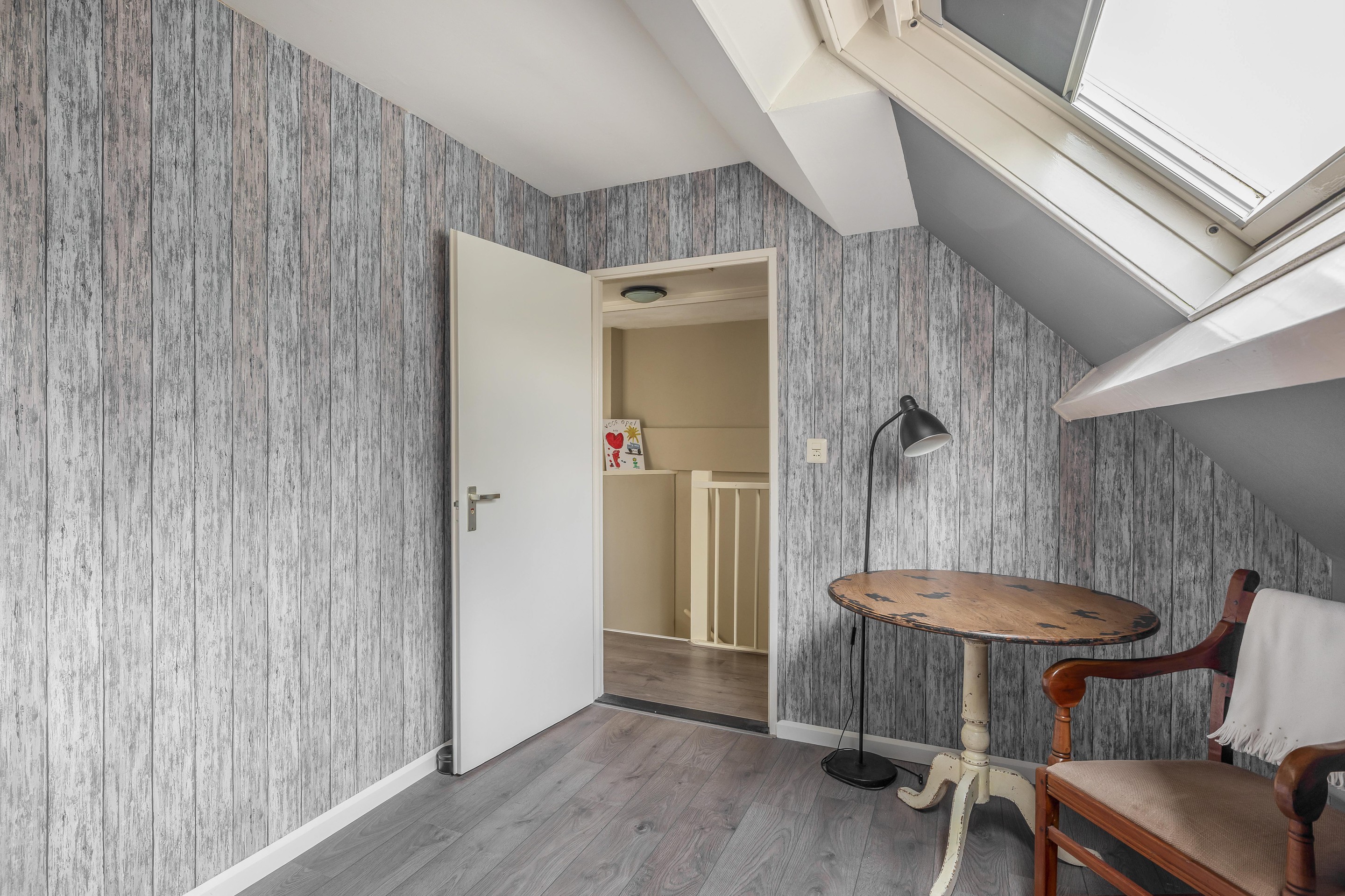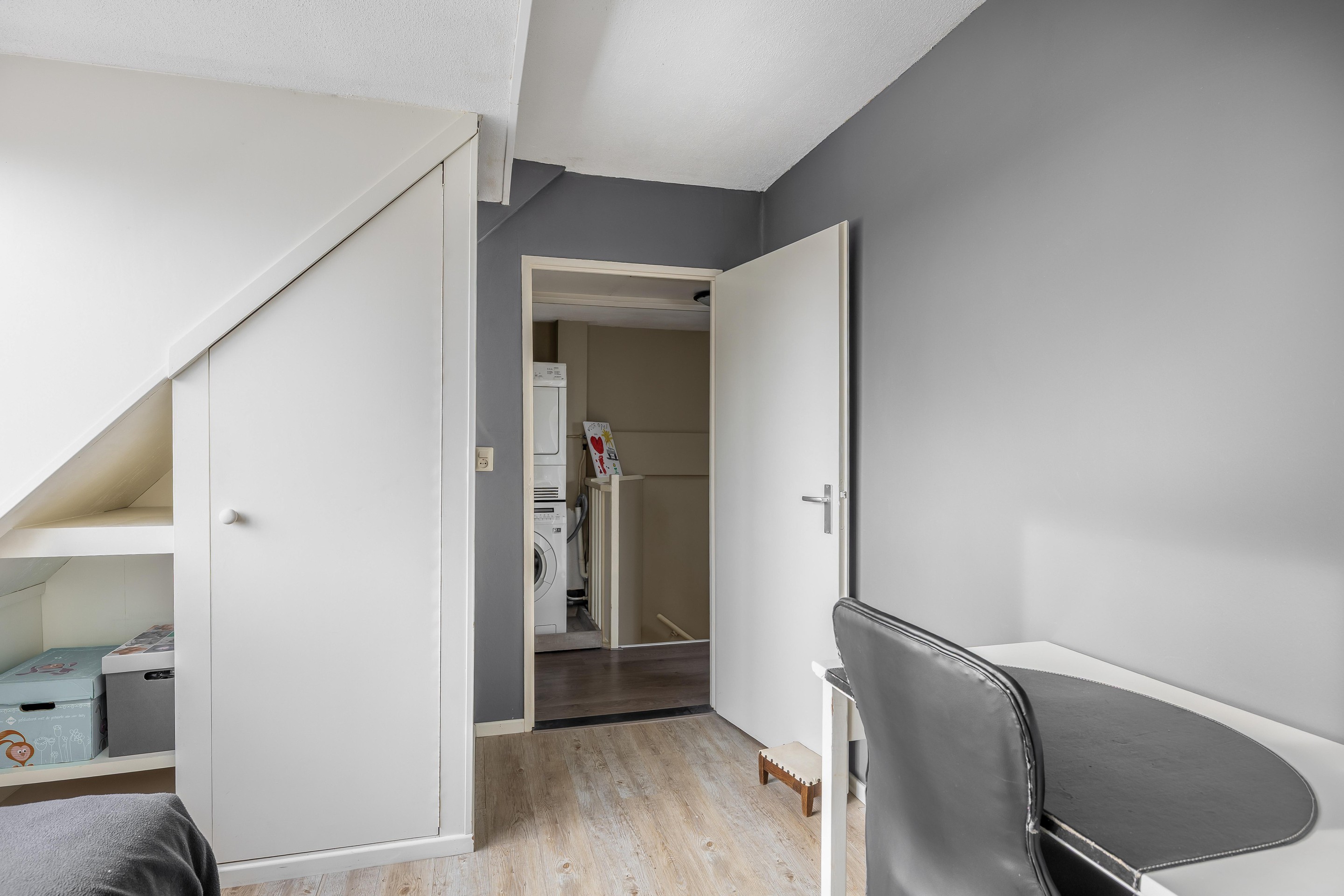 Tweede verdieping Voorzolder met ruimte en aansluitingen voor de wasmachine/droger en de opstelplaats van de cv-combiketel en mechanische afzuiging. Via een luik in het plafond is een ruime en praktische bergvliering bereikbaar. De zolder is verder ingedeeld met nog twee slaapkamers, waarmee de teller op vijf slaapkamers komt. Dit is mede mogelijk dankzij de brede beukmaat van 5,74 meter en de dakkapel aan de achterzijde van het huis. Beide kamers zijn circa 373 x 280 cm groot en afgewerkt met laminaatvloeren.