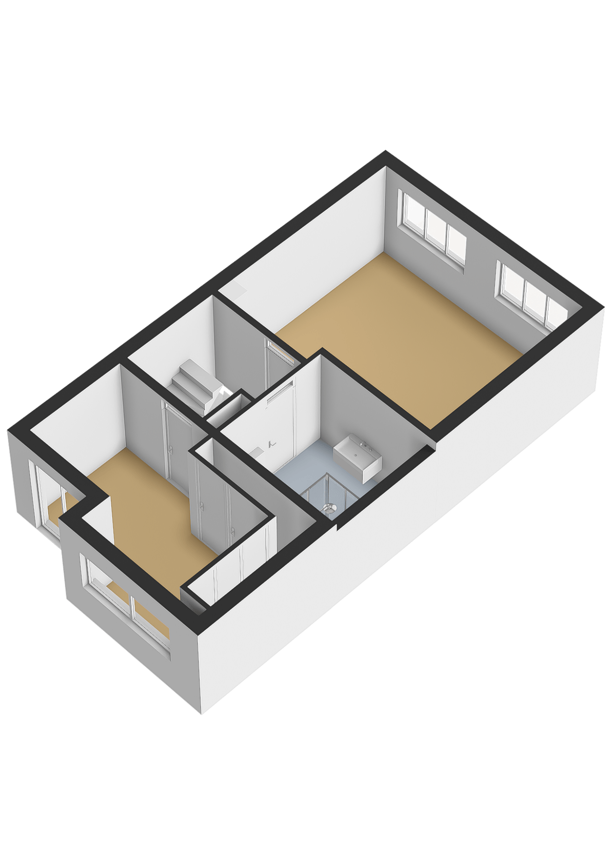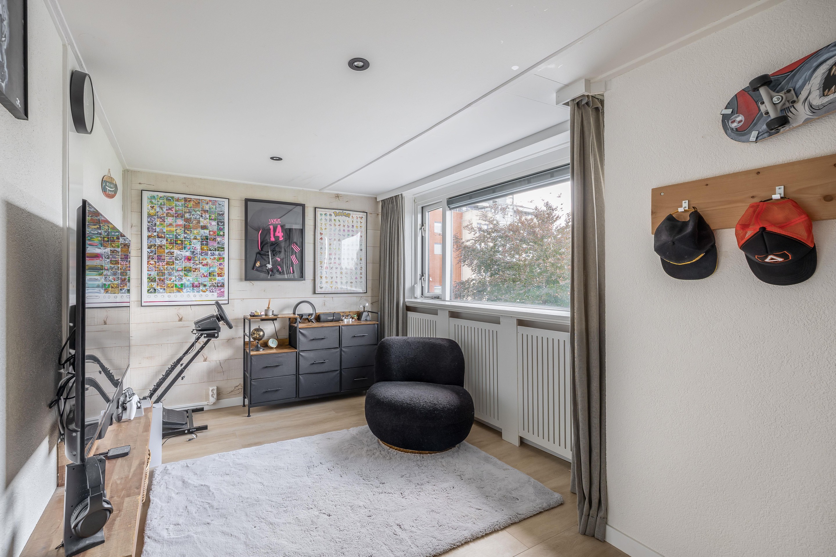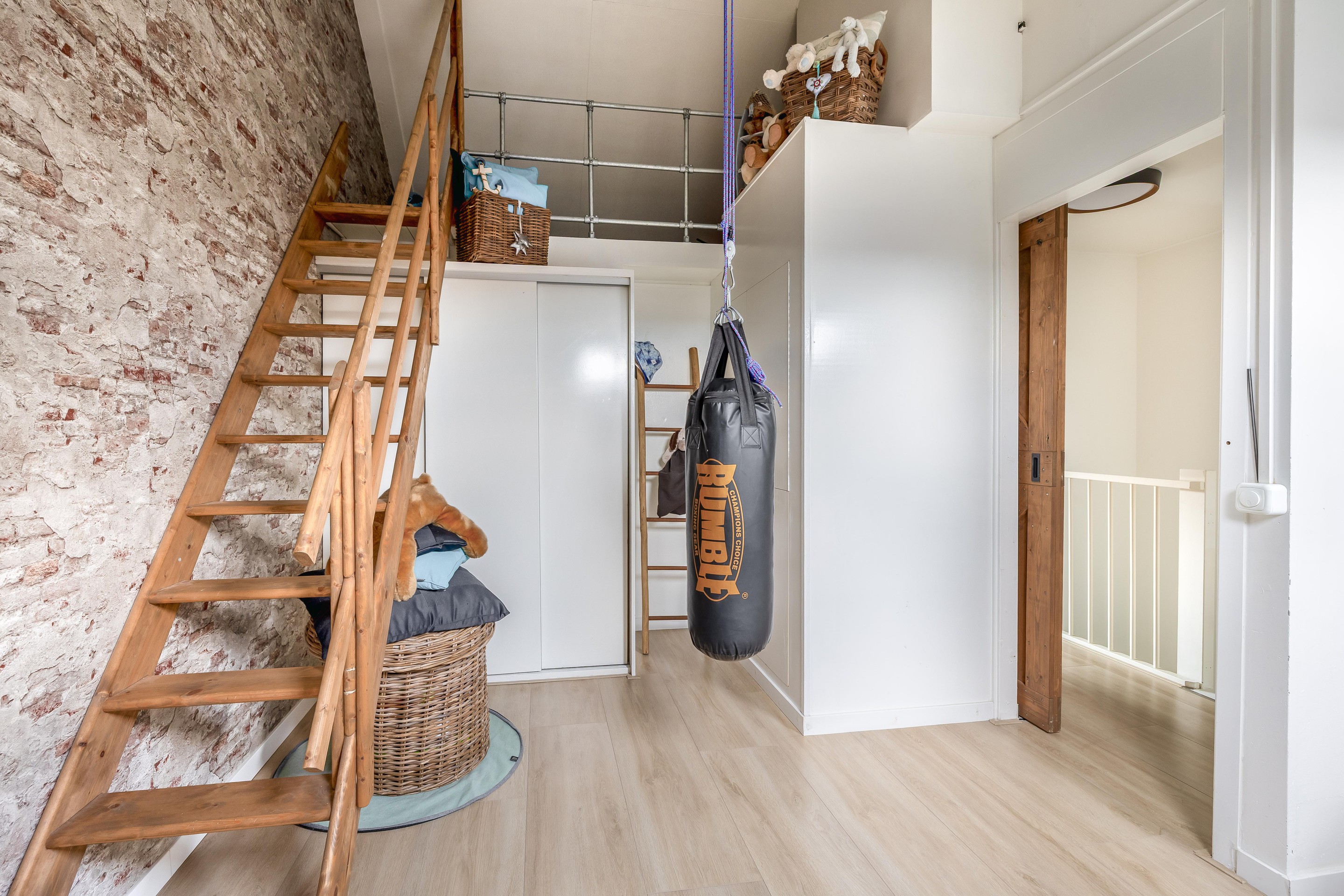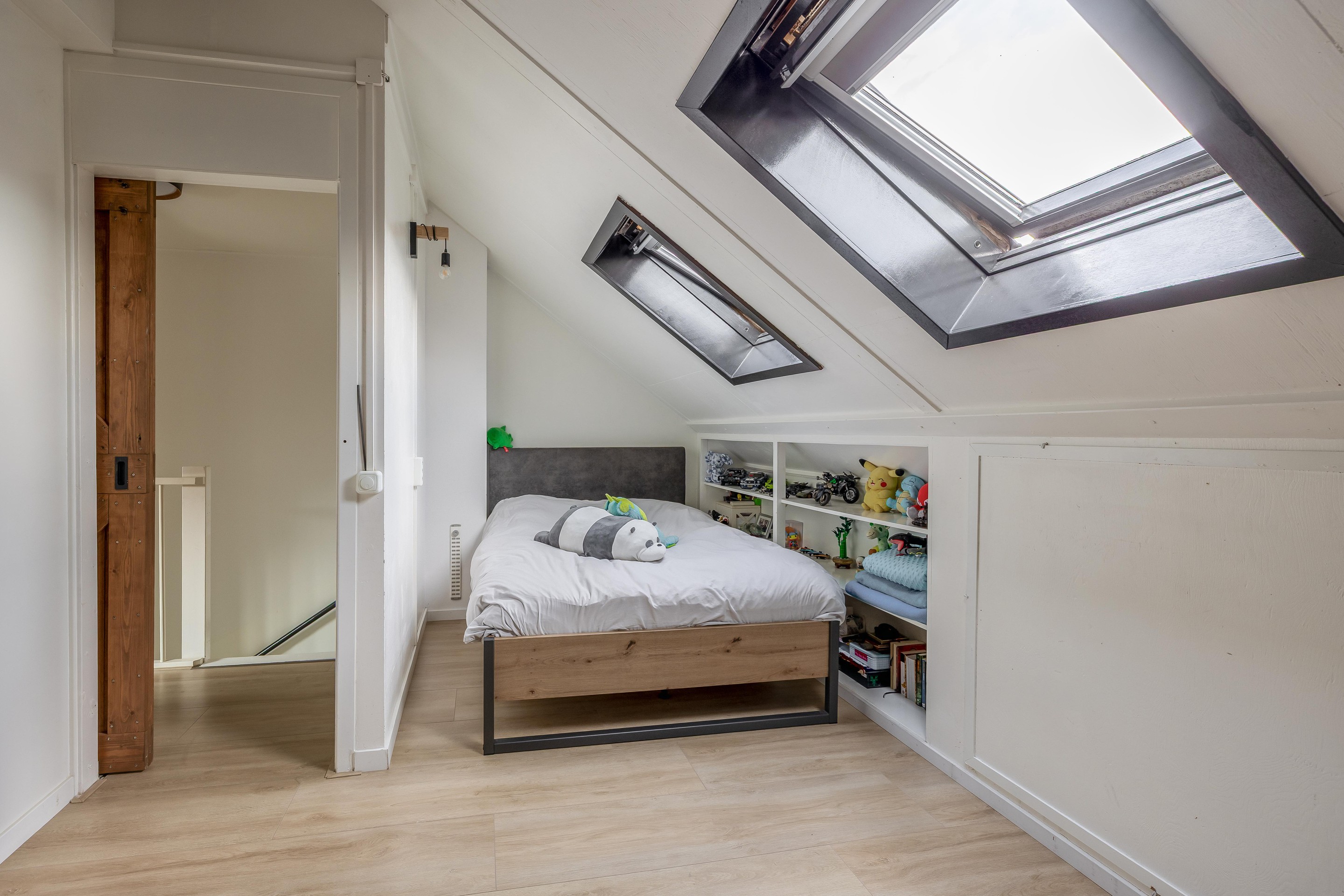 Dankzij de twee grote Velux dakramen geniet je van veel lichtinval. Bovendien is de hele zolder uitgerust met slimme opbergruimte achter de knieschotten. De hele verdieping is afgewerkt met een moderne laminaatvloer.