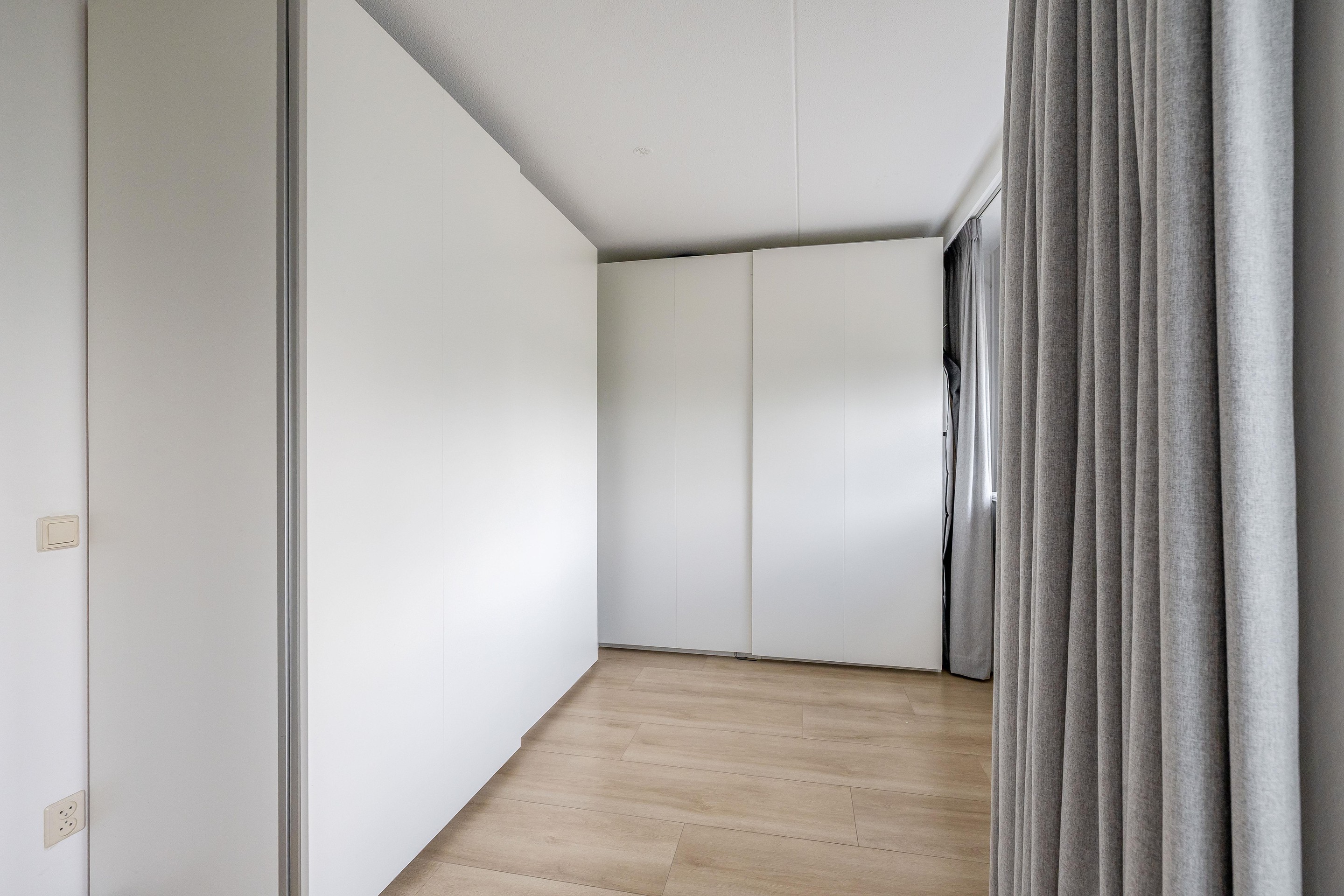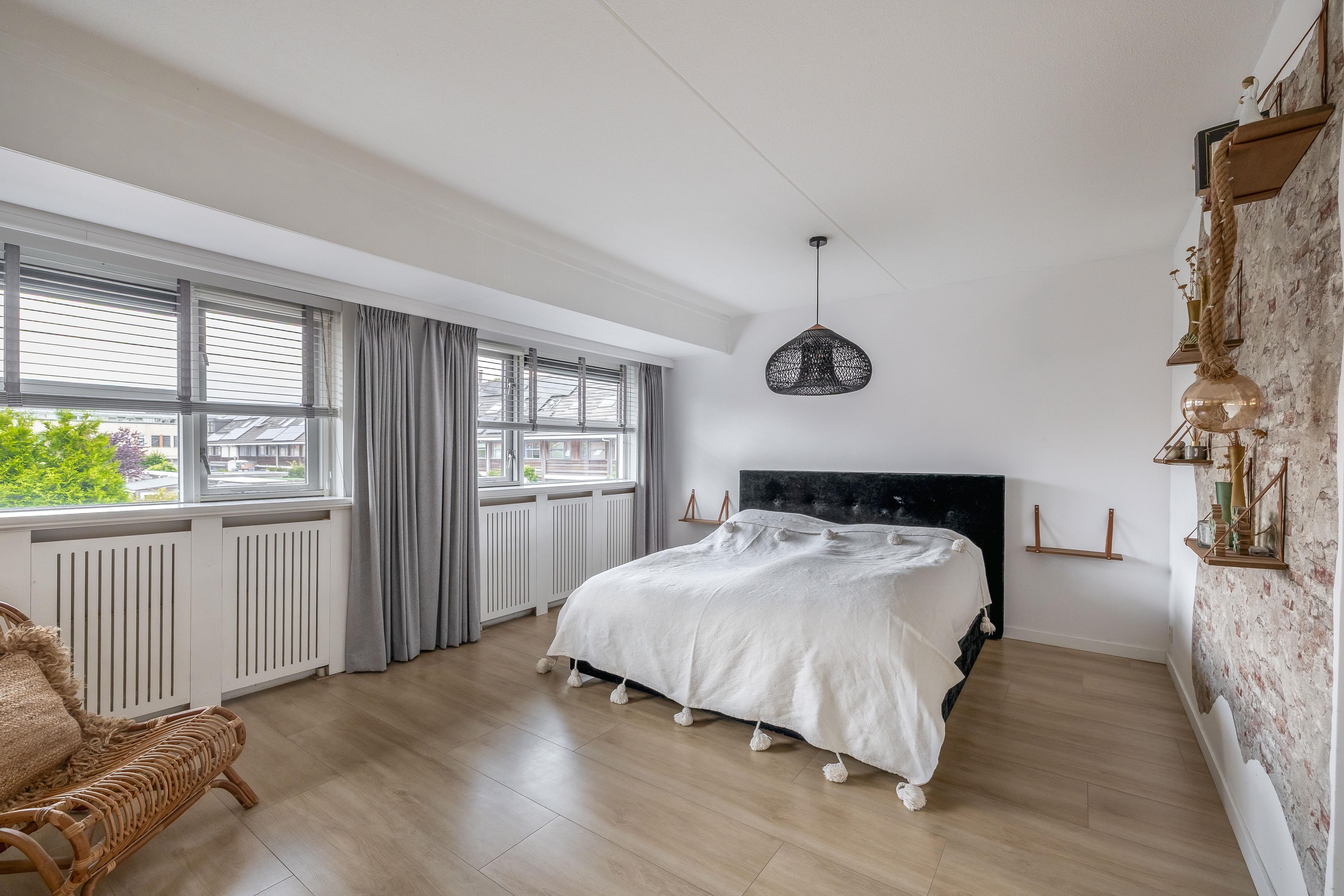 Slaapkamer 2 (achterzijde): Een uitzonderlijk royale slaapkamer, die oorspronkelijk uit twee kamers bestond. Door deze samen te voegen, is een extra brede kamer ontstaan met grote ramen die voor veel natuurlijk licht zorgen.