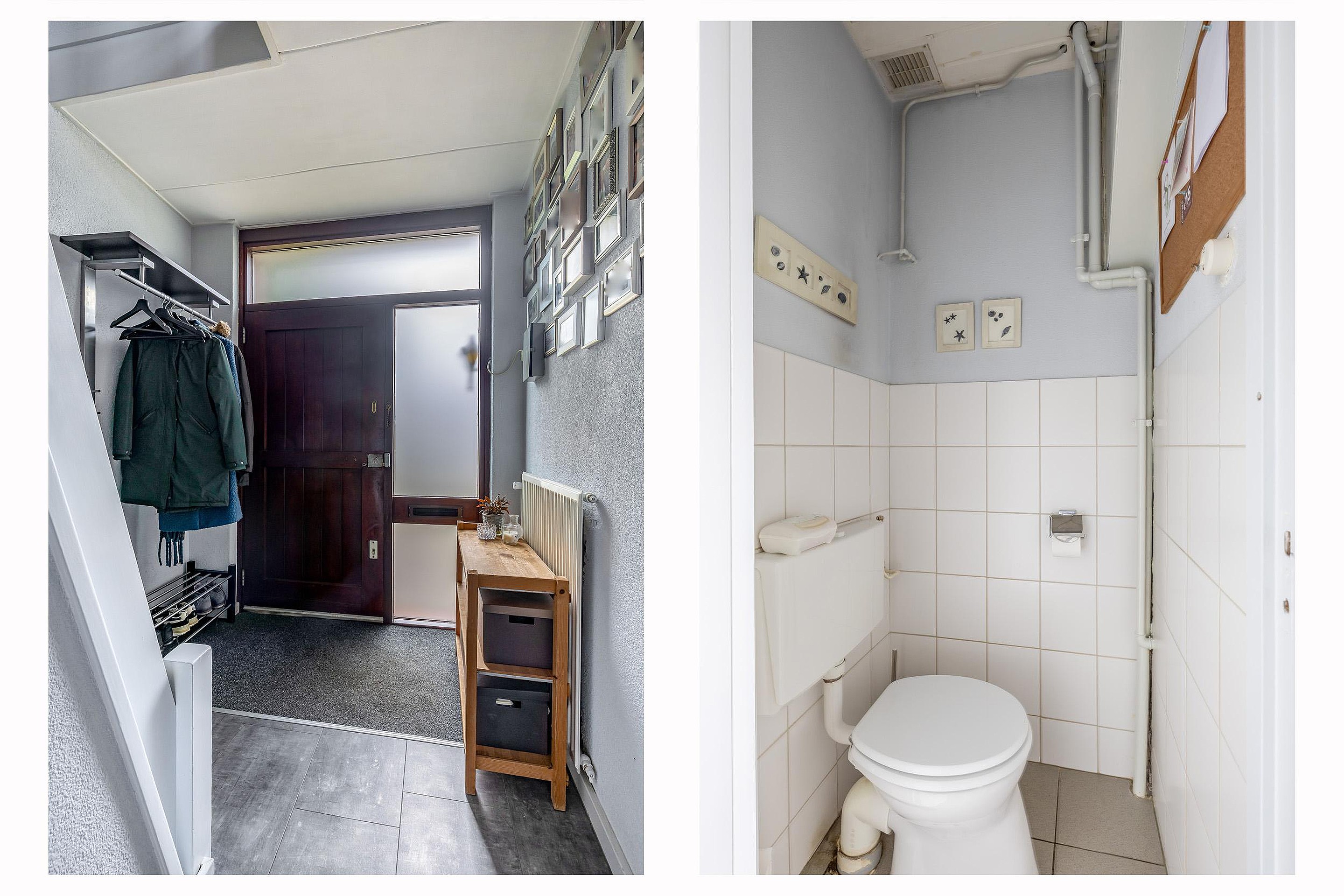 Entree met trapopgang naar de eerste verdieping, toiletruimte en toegang tot de royale woonkamer van circa 22 m2. Doordat de keuken is verplaatst naar de uitbouw, is er in de woonkamer ruimte ontstaan voor een gezellige zithoek én een ruime eethoek. Grote ramen zorgen voor veel lichtinval, wat de kamer een prettig en vriendelijk karakter geeft. De open haard zorgt voor extra sfeer en warmte.