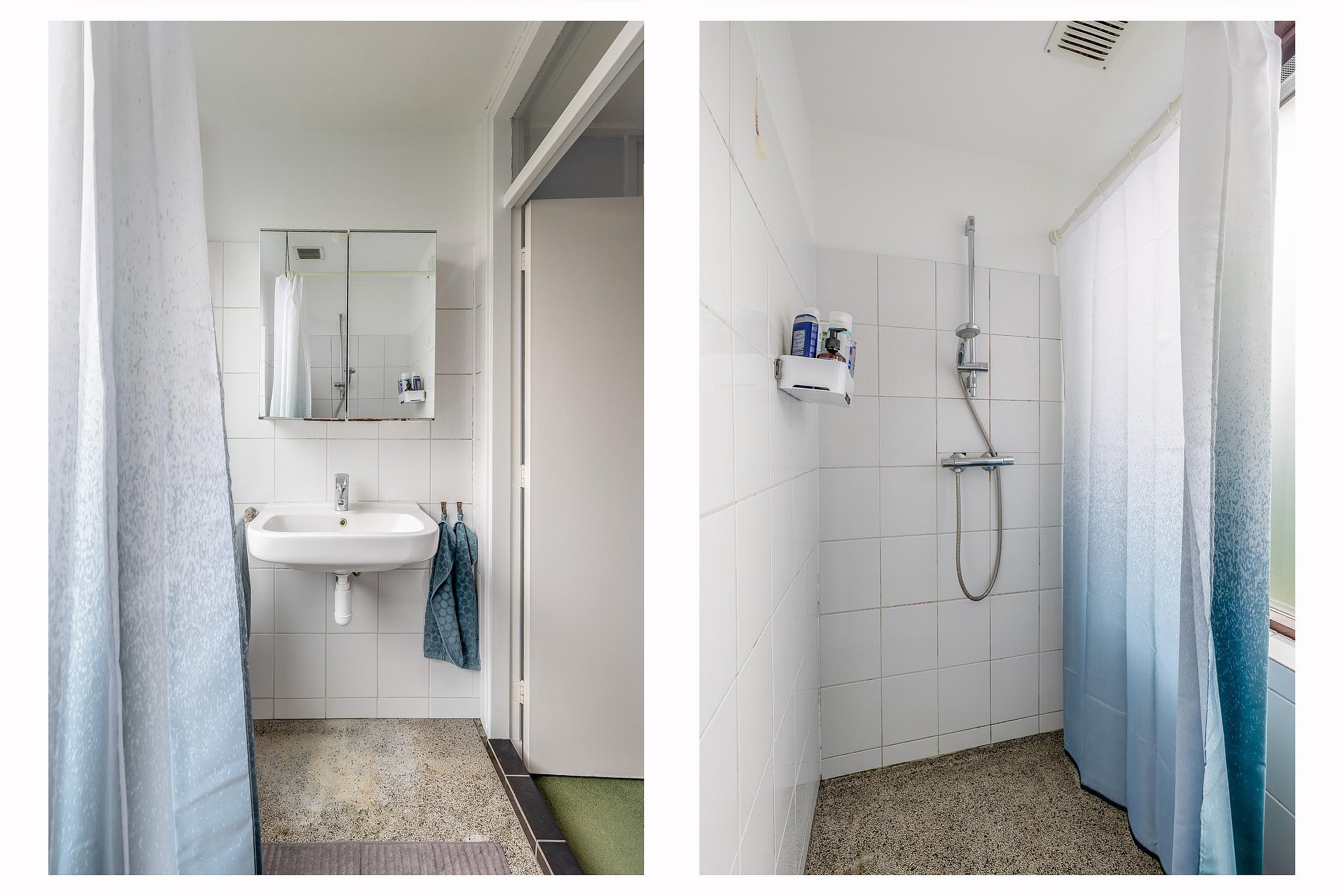 De badkamer is eenvoudig ingericht, maar netjes onderhouden en nog prima te gebruiken. Vervangen mag, maar is zeker niet direct nodig.