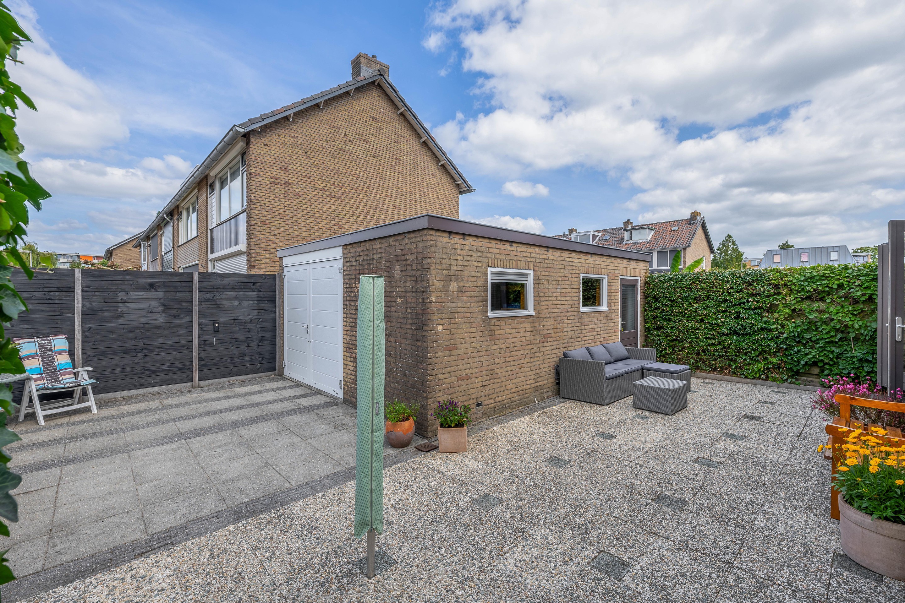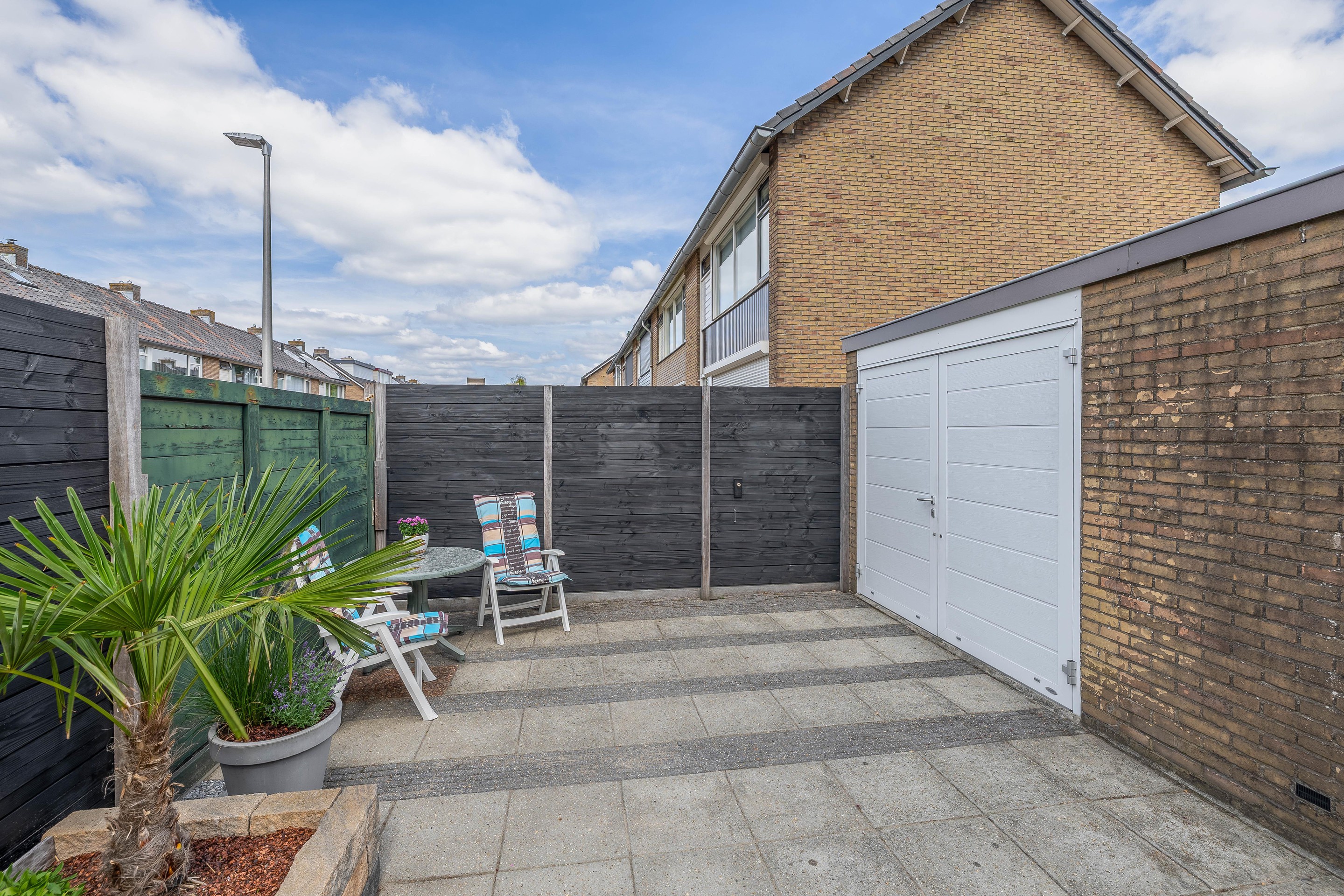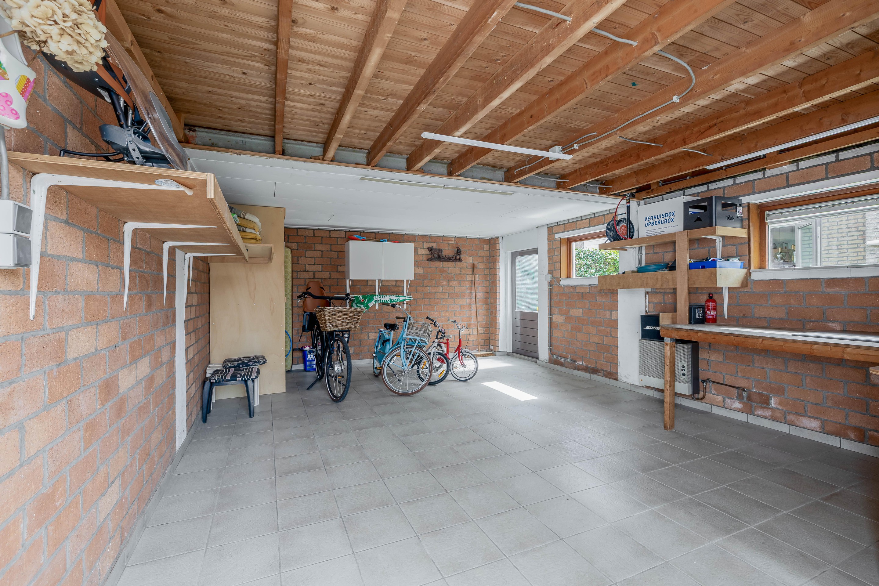 De garage (ca. 26 m2) staat over de breedte van de tuin en is recent voorzien van nieuwe kunststof openslaande deuren en uitgebreide elektra. De garage wordt momenteel niet gebruikt als opstelplaats voor de auto, waardoor het hek geen doorgang heeft. Indien gewenst kan dit eenvoudig weer worden aangepast. Voor motorrijders is de garage direct toegankelijk; het hek is hiervoor al geschikt gemaakt. Op zonnige dagen is er in de tuin altijd een plekje in de zon óf in de schaduw. Iedereen kan hier dus optimaal genieten.