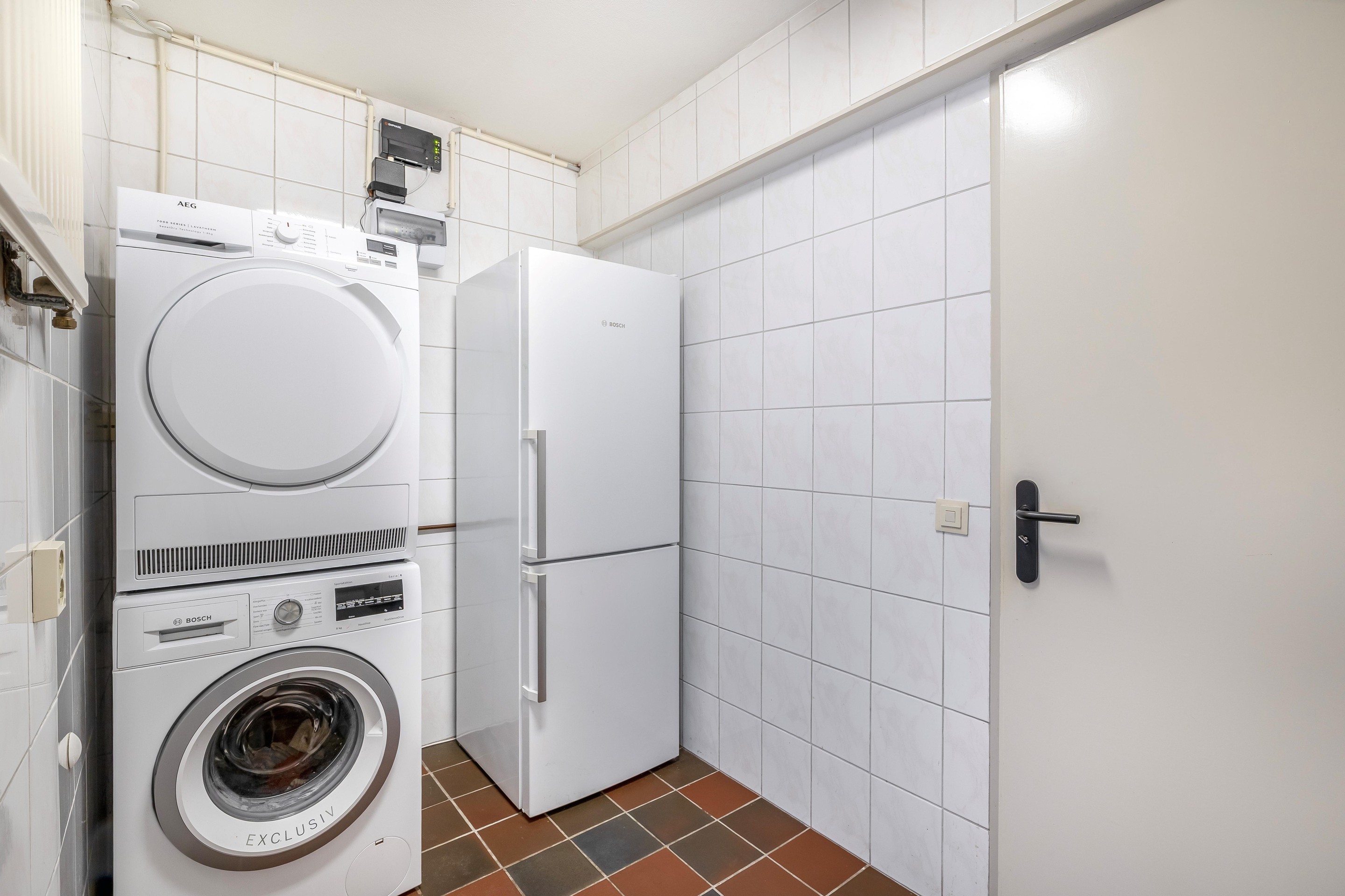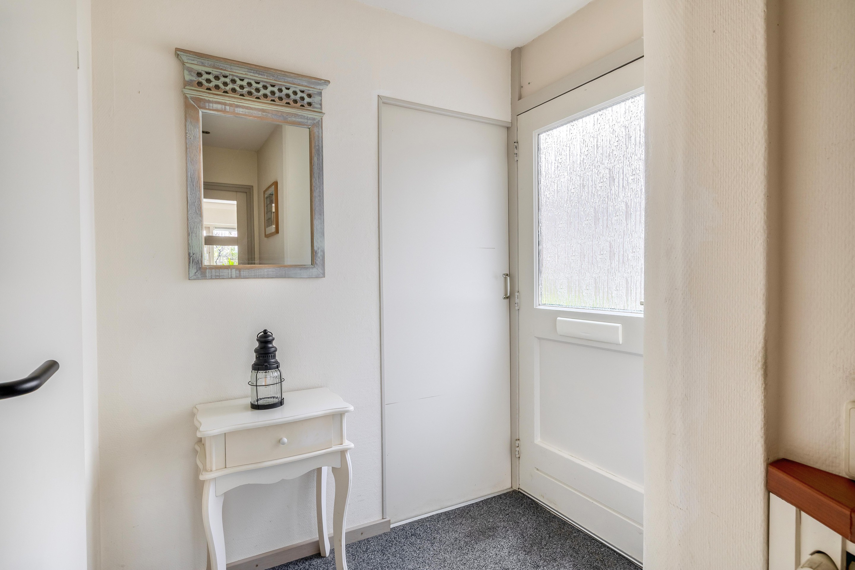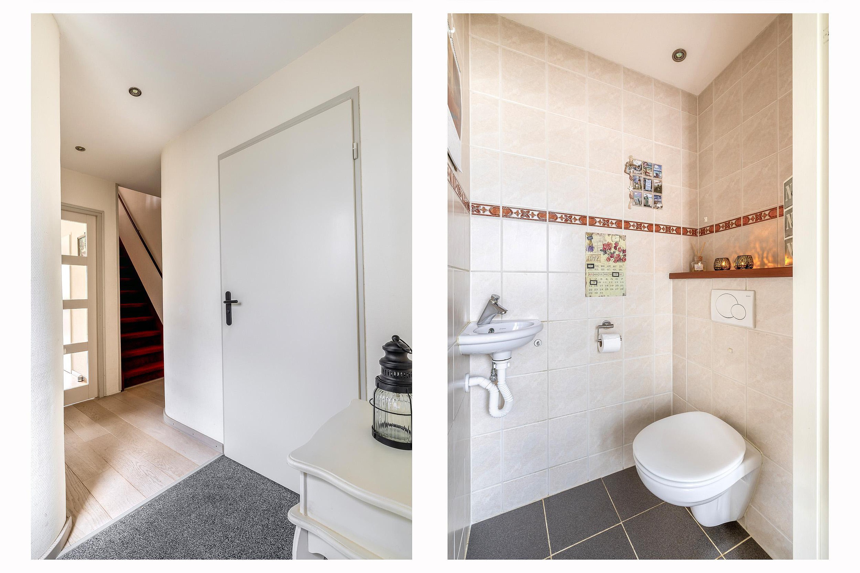 Begane grond U komt binnen in de riante entreehal met de toiletruimte en een schuifdeur naar de bijkeuken. Een deel van de garage is momenteel ingericht als praktische bijkeuken; hier bevinden zich de aansluitingen voor de wasmachine en droger, evenals ruimte voor een extra koel-vriescombinatie. Vanuit de bijkeuken heeft u toegang tot de resterende garage, die ideaal is voor het stallen van fietsen en motoren of als fijne klusruimte. Terug in de hal vindt u de toiletruimte met een vrijhangend toilet en fonteintje. De meterkast is slim geplaatst achter de garderobe. Ook bevindt zich hier de trap naar de eerste verdieping.