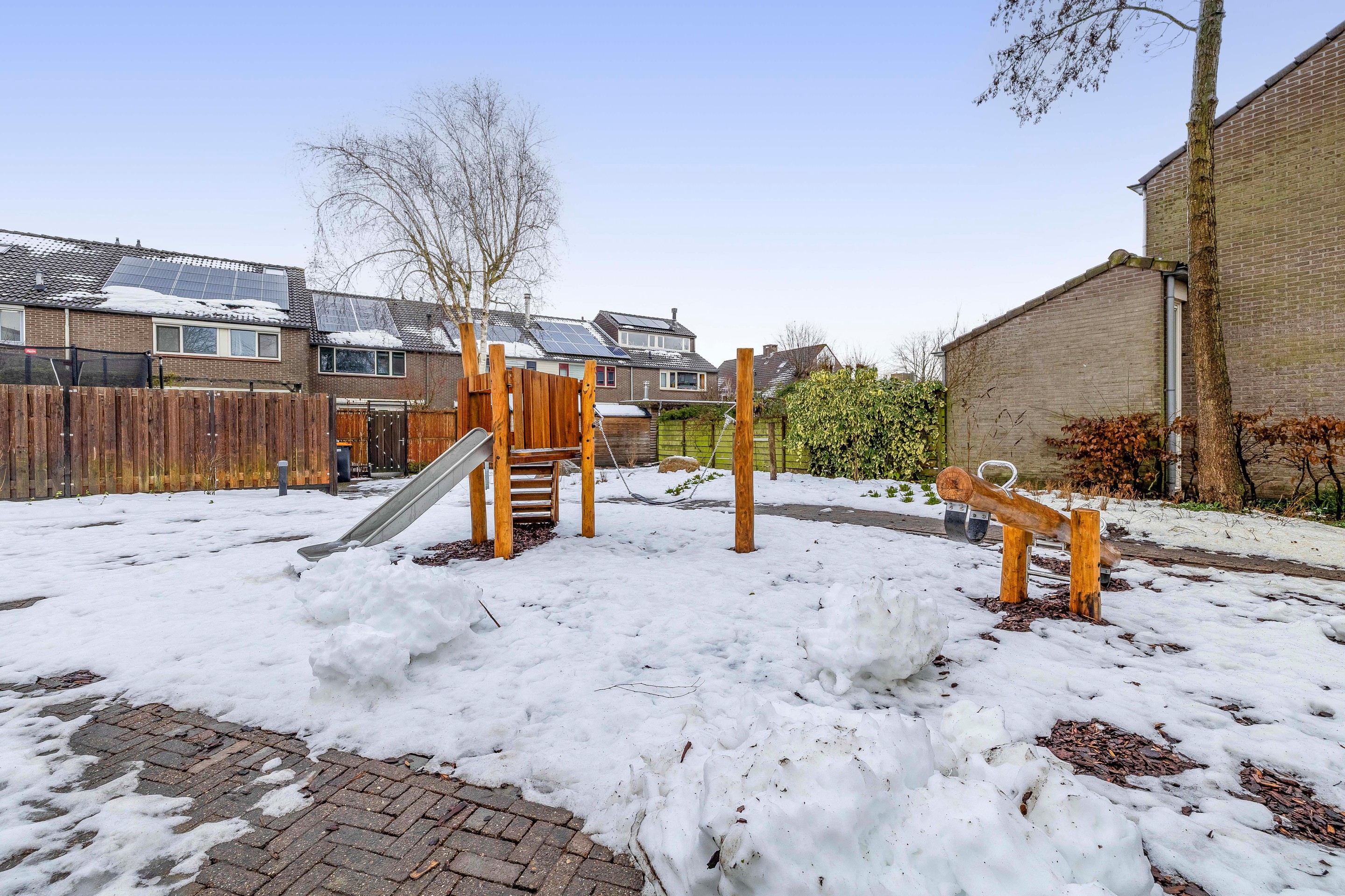 Via de achterom betreedt u een speelpleintje dat direct achter de woning ligt. Dit pleintje is onlangs volledig vernieuwd door de gemeente en is veilig ingericht voor de jongste bewoners van de wijk.