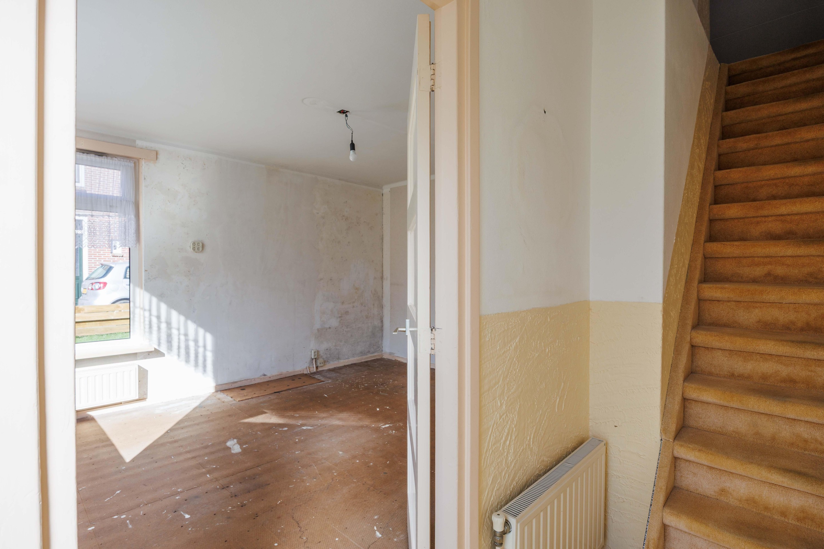 Entree/hal met meterkast (5 groepen) met de trapopgang naar de verdieping, ook de toegang tot de woonkamer.