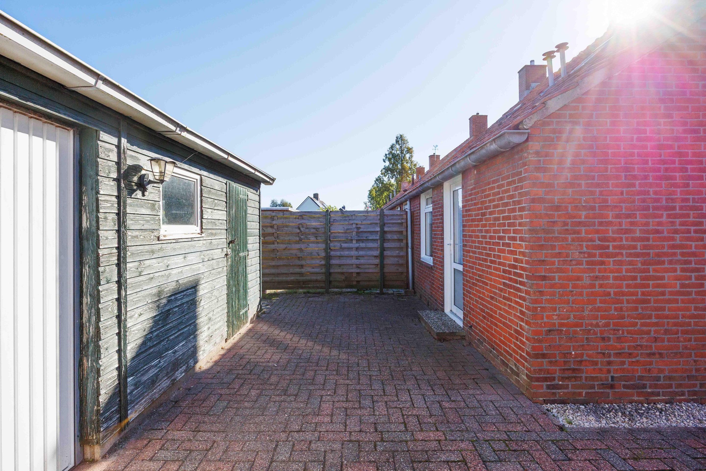De achtertuin is voorzien van schuttingen met de buren en aan de achterzijde is er een greppel.