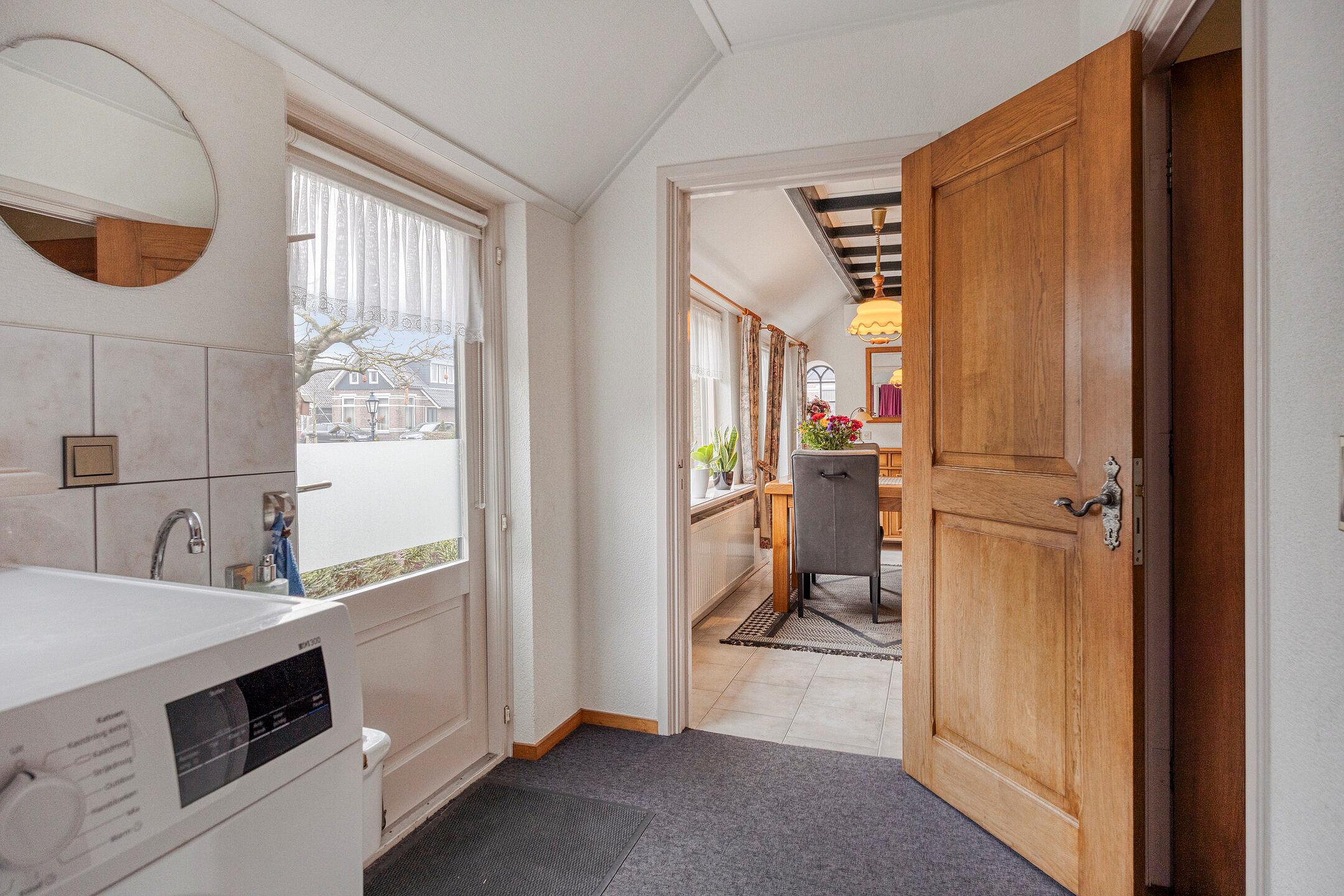 Begane grond Entree/hal met meterkast en trapopgang. De woonkamer is voorzien van veel lichtinval, openslaande tuindeuren, een houtkachel (ter overname) en een toegang naar de woonkeuken. De woonkeuken beschikt over een tuindeur en een keukenblok met diverse inbouwapparatuur, o.a. inductiekookplaat, afzuigkap, oven, vaatwasmachine en een koelkast. Via de bijkeuken bereikt u de tuin en een gang met een toegang naar de tuin en de ruime slaapkamer. De badkamer, bereikbaar vanuit de hal en de slaapkamer, is voorzien van een douchehoek, toilet, bidet en een dubbele wastafel in meubel.