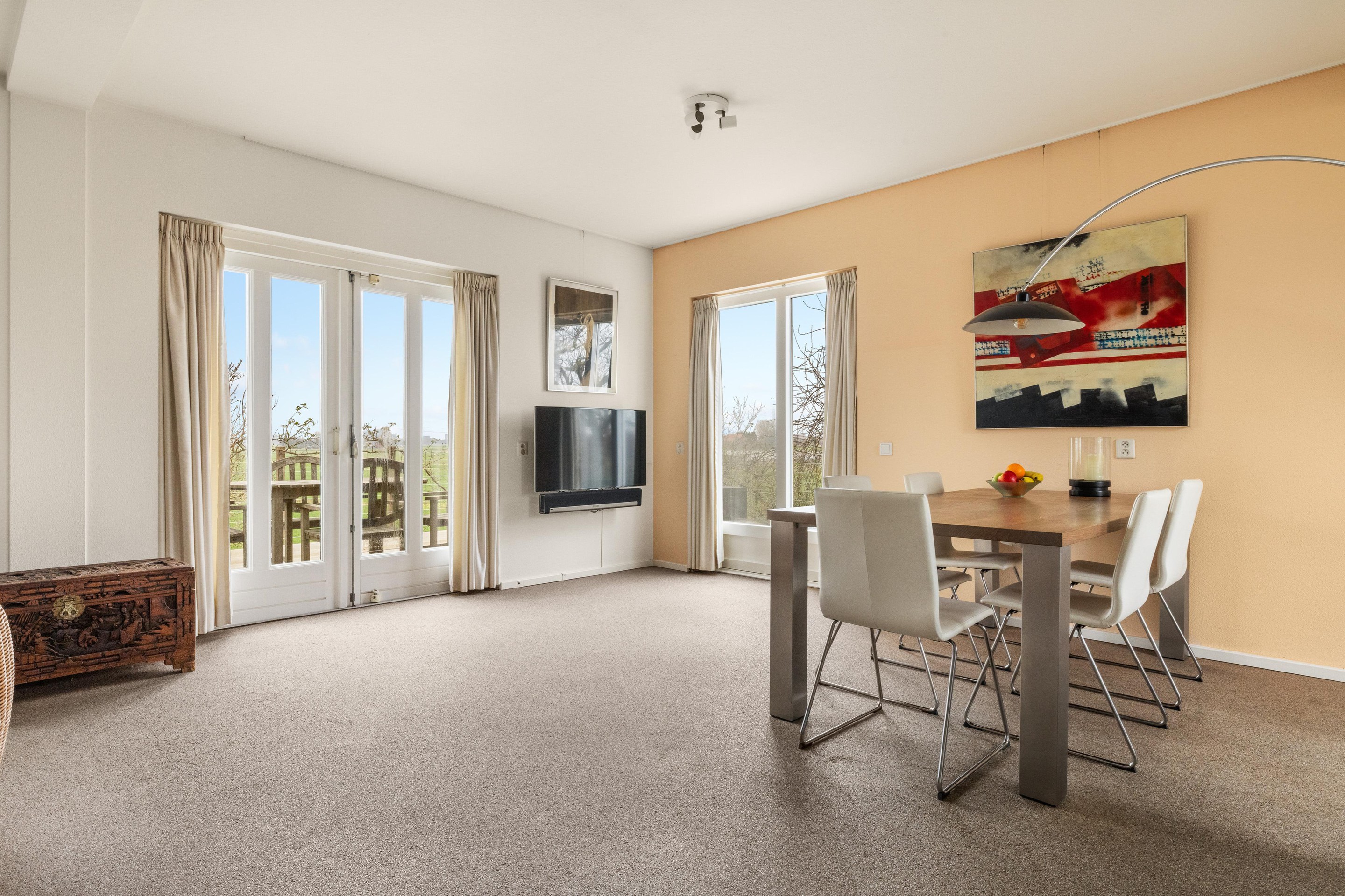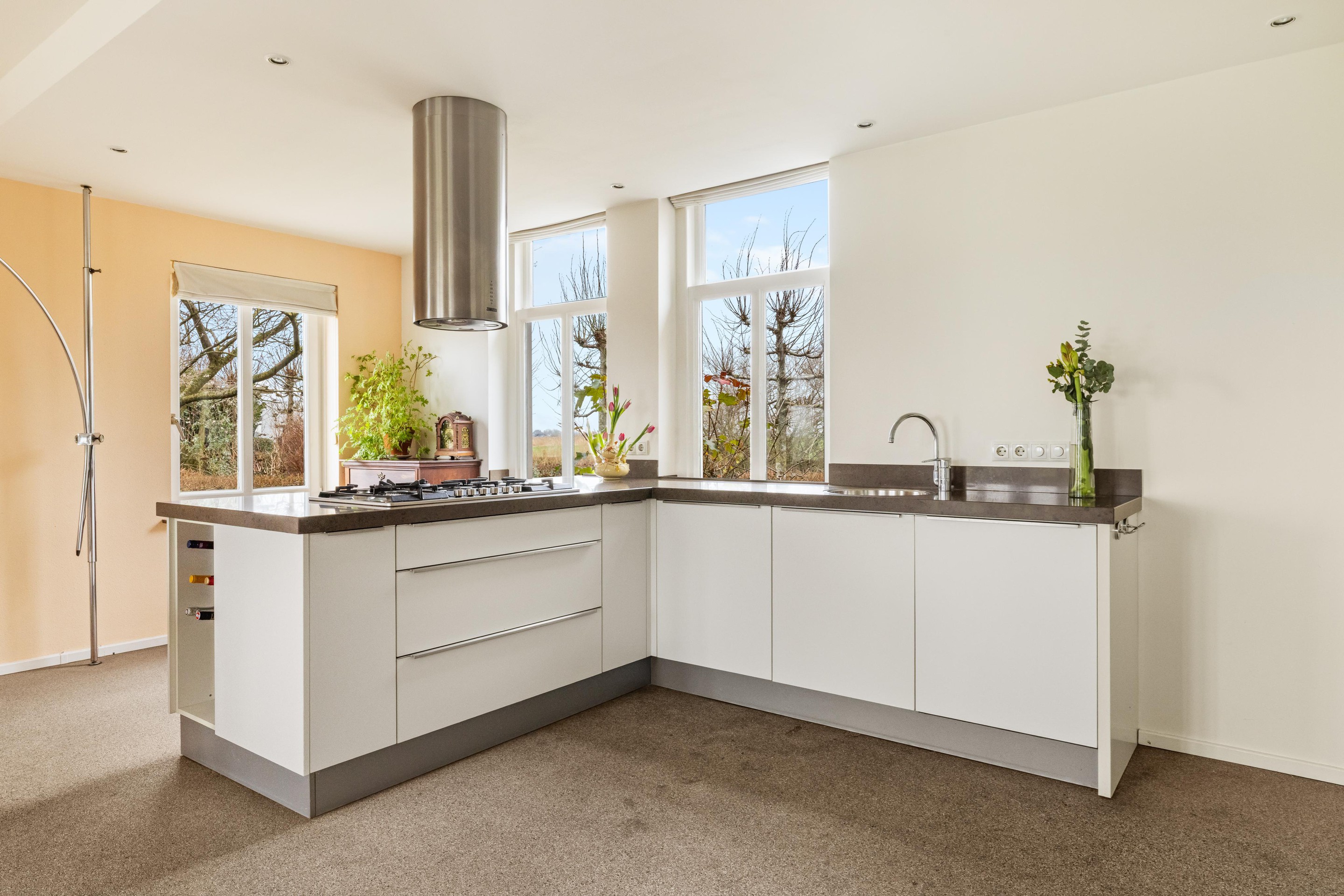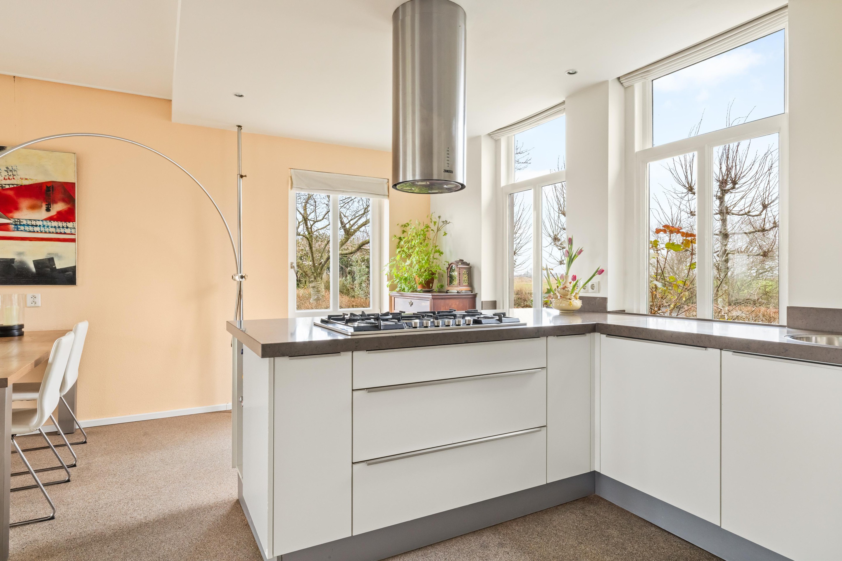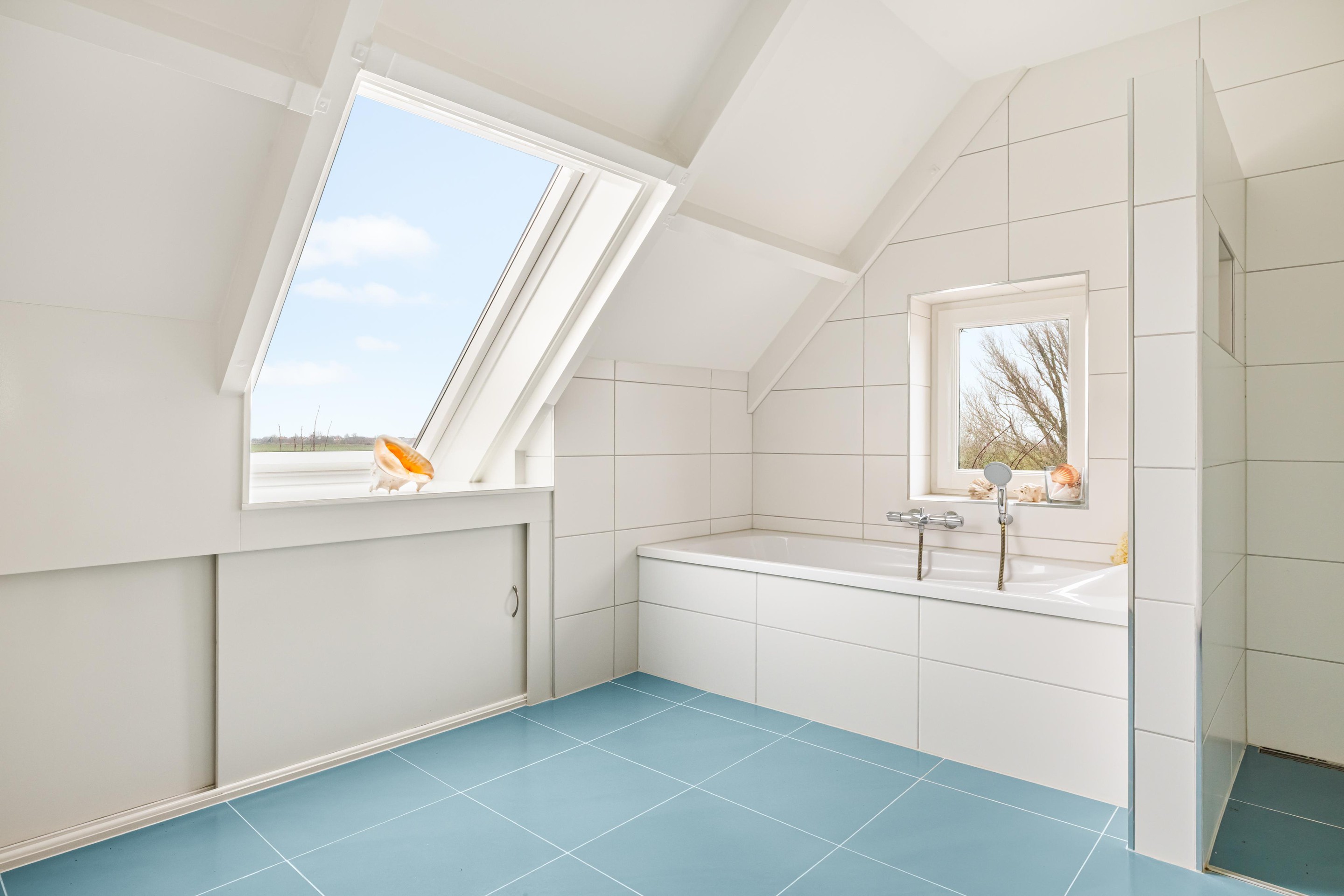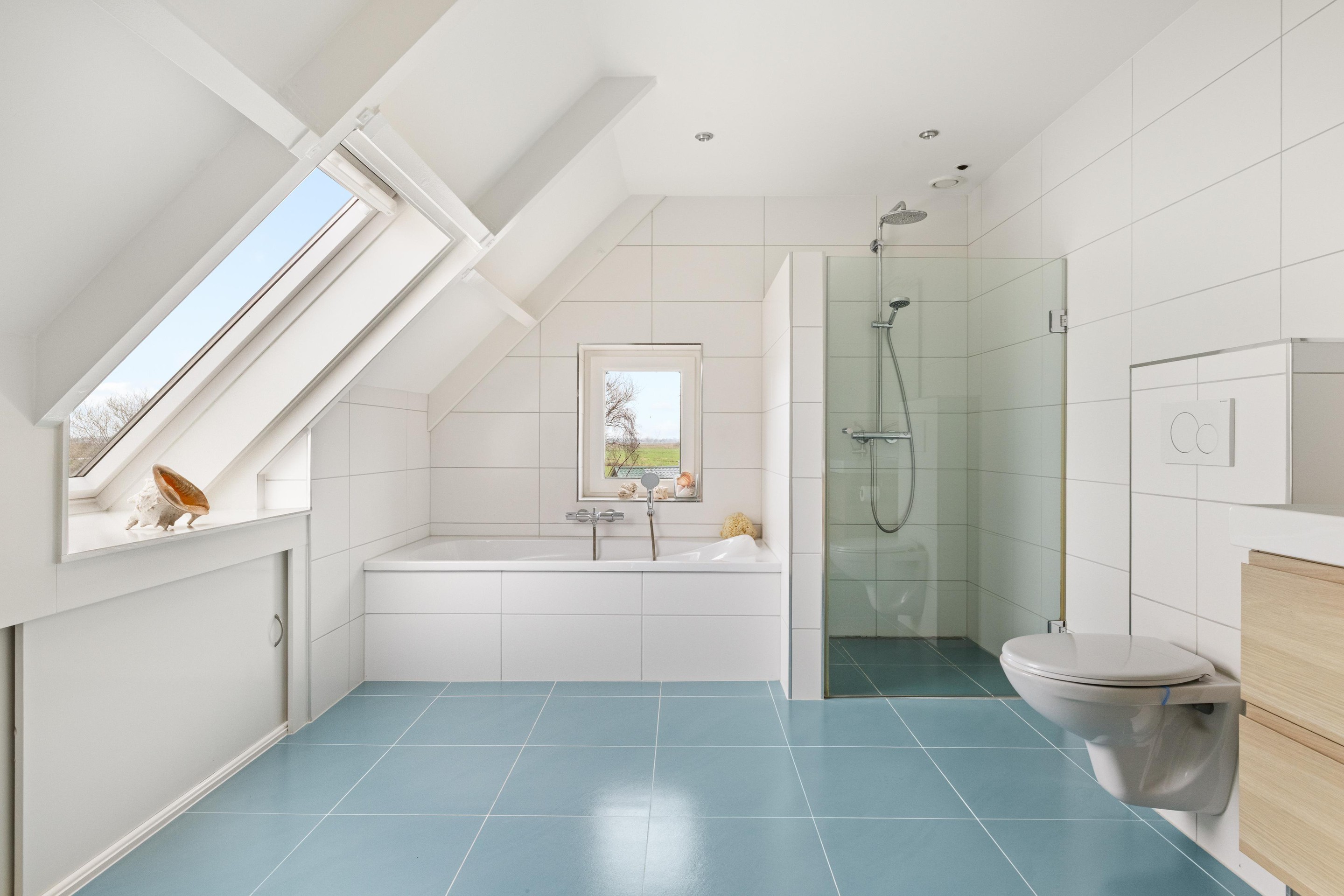 Middels de openslaande deuren bereikt u het in 2025 aangelegde, royale terras/veranda van ca. 50 m2, gelegen op het zuiden. Hier geniet u de hele dag van de zon en van een adembenemend vrij uitzicht over de weilanden, een unieke plek om volledig tot rust te komen.