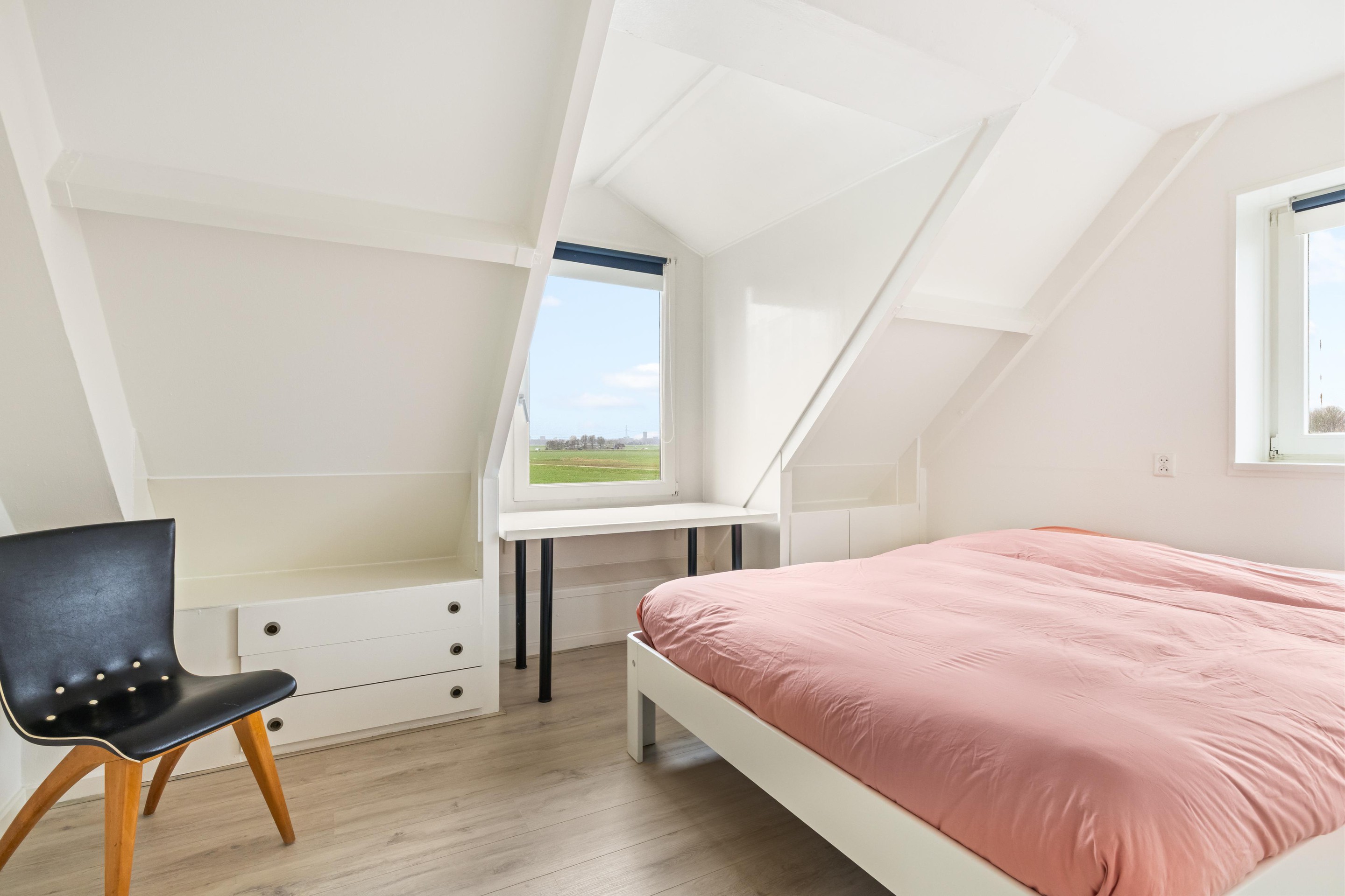 De derde slaapkamer is gelegen aan de zijkant van de woning en beschikt eveneens over een dakkapel en twee inbouwkasten. Vanuit deze kamer kijkt u uit over het water van de Broekervaart, een prachtig en rustgevend uitzicht.