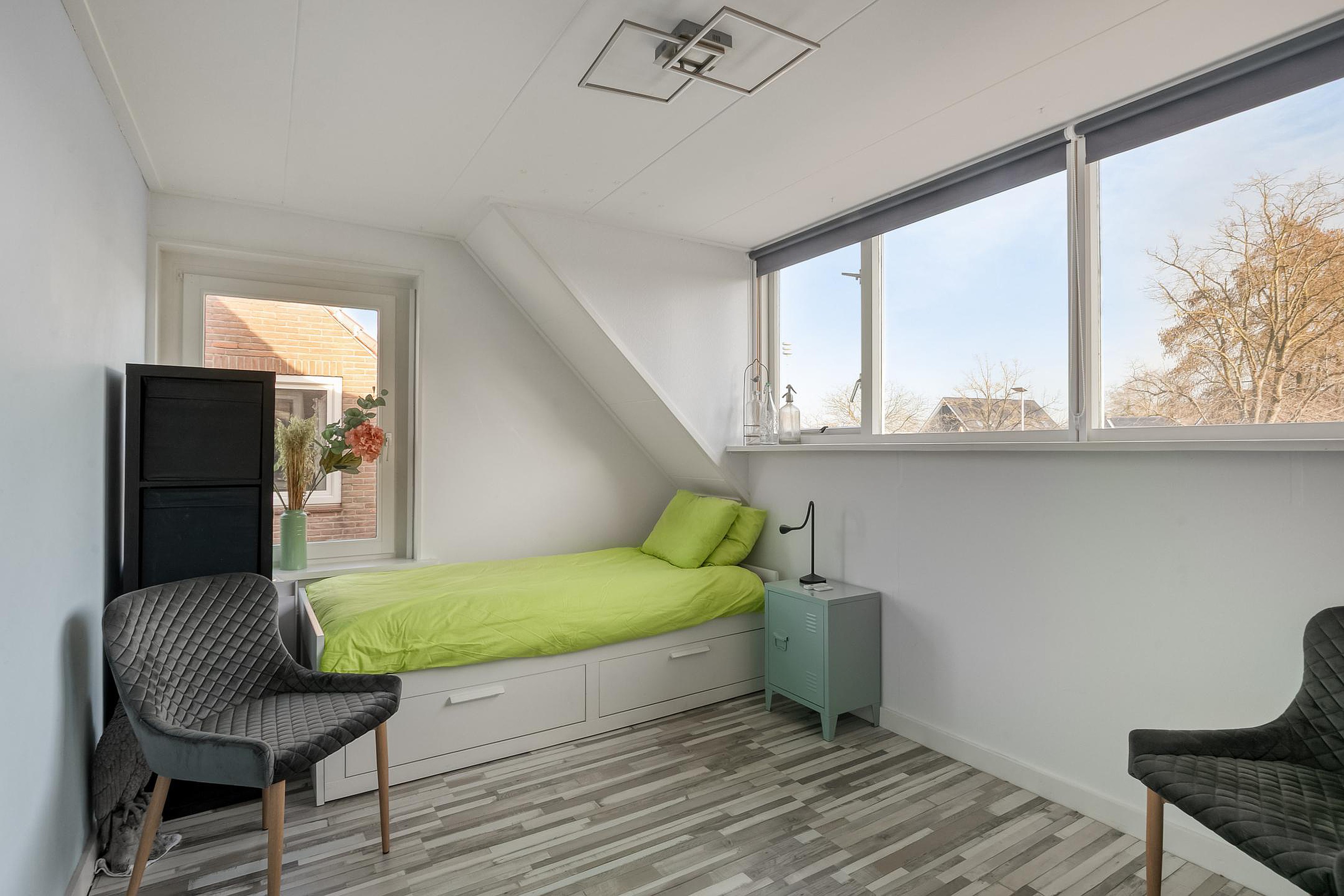 De geïsoleerde ruimte achter de garage biedt meerdere mogelijkheden, denk bijvoorbeeld aan een werkplaats, praktijk of kantoor aan huis of mantelzorg.