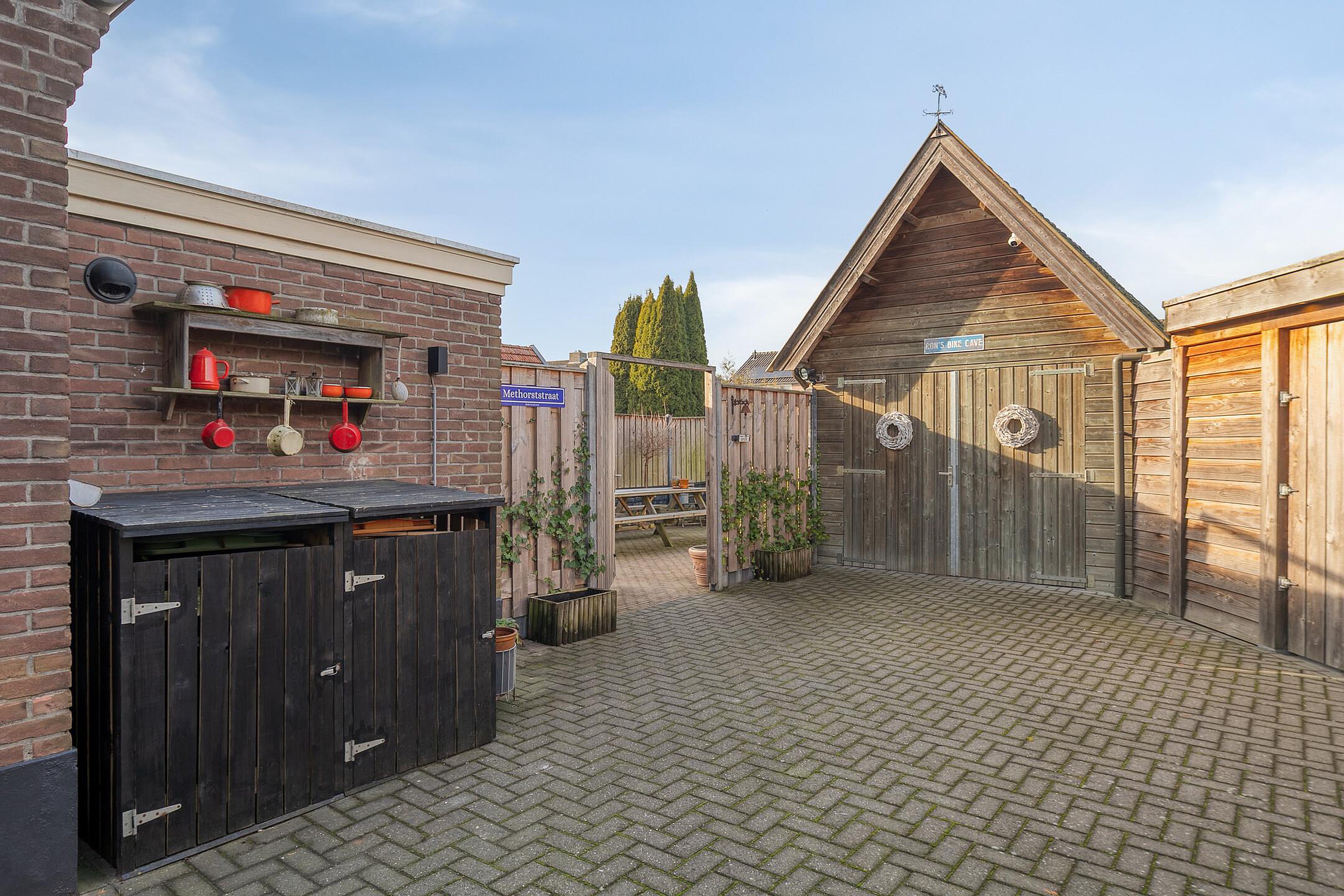 Tuinhuis met barretje achter in tuin