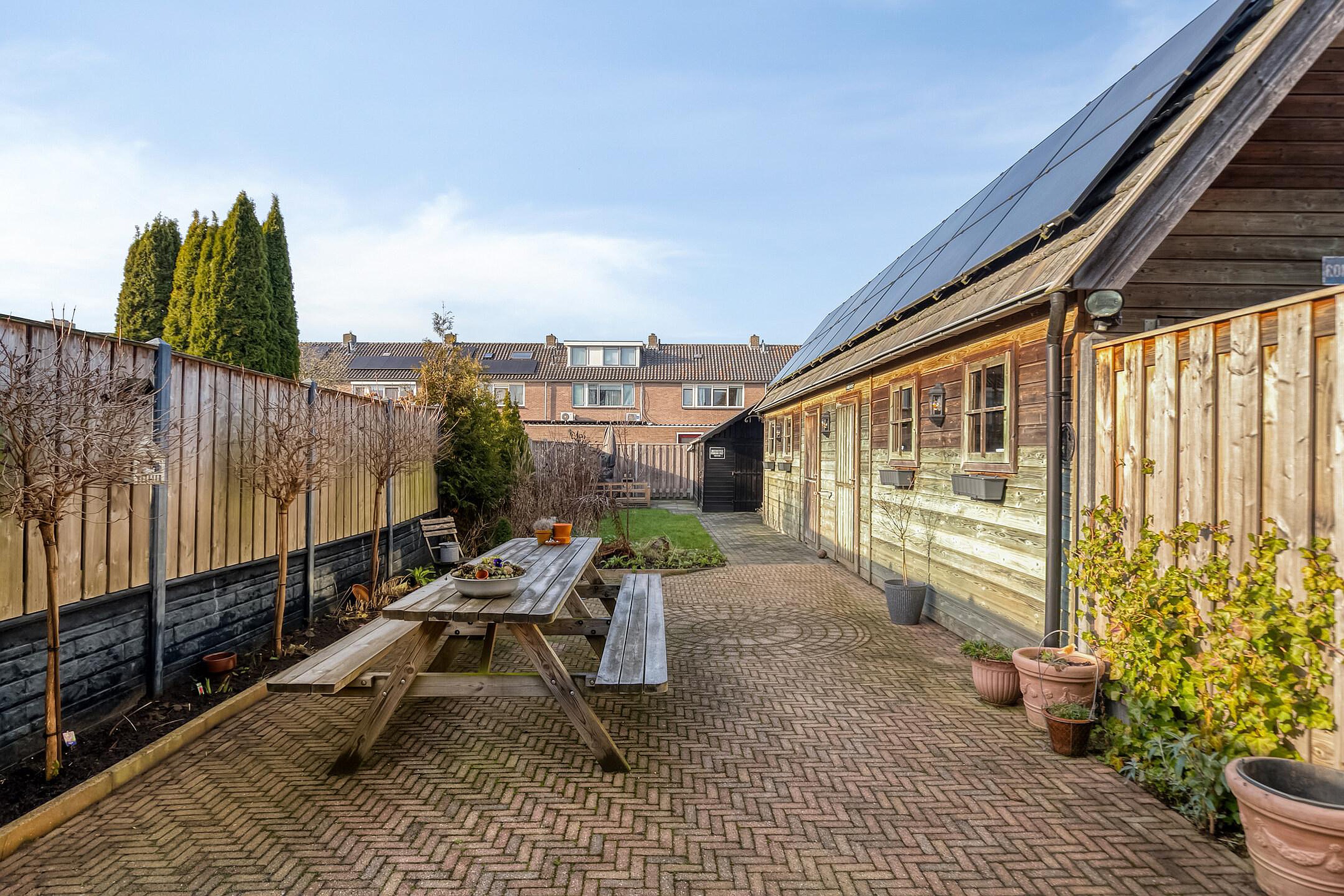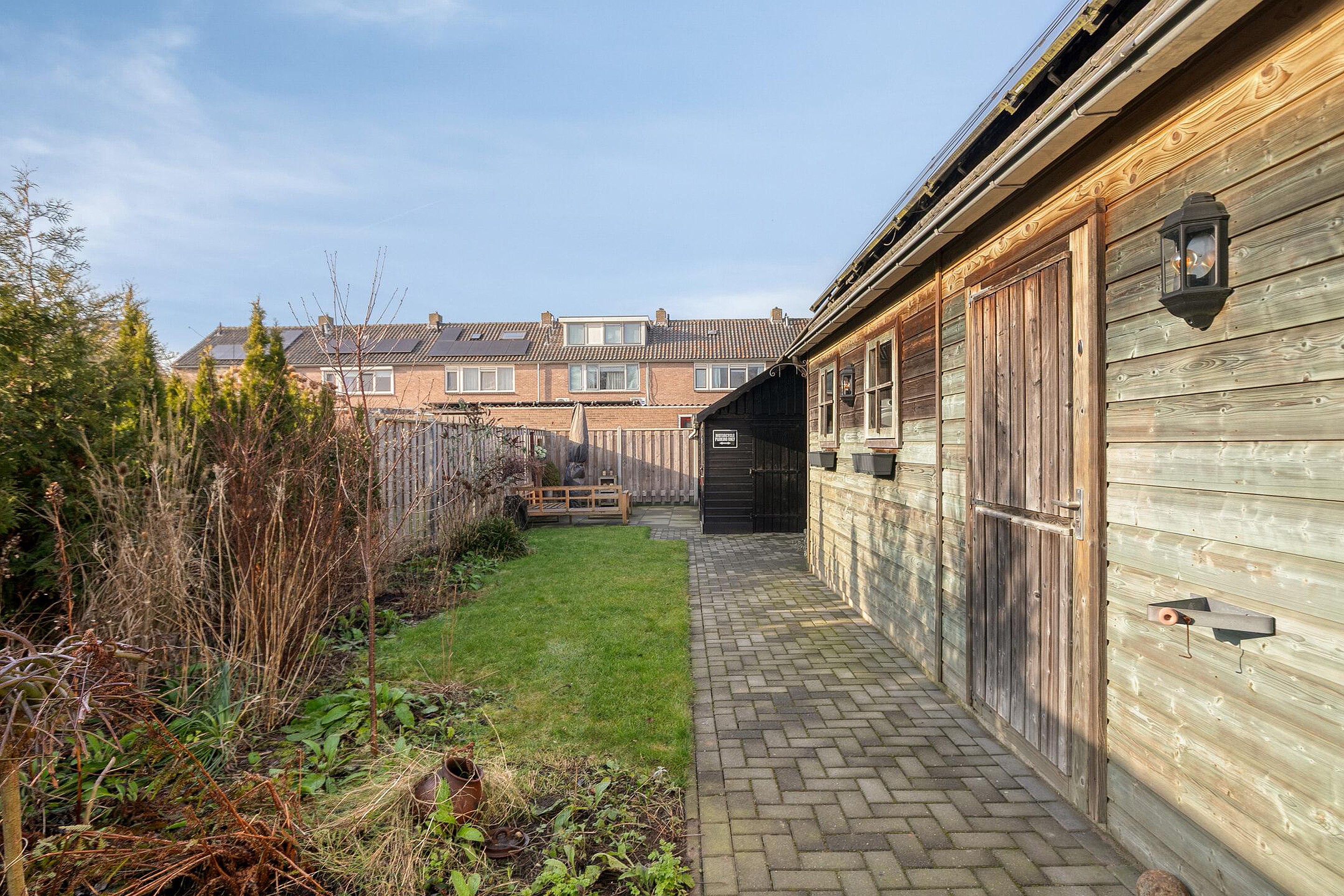 Gelegen in een kindvriendelijke omgeving ligt deze uitgebouwde twee-onder-een-kap woning met vrijstaande houten garage met in het verlengde daarvan een geïsoleerde ruimte met keukentje, met een zeer diepe achtertuin en achter in de de tuin een tuinhuis met barretje op een perceel met maar liefst 380 m2 eigen grond.