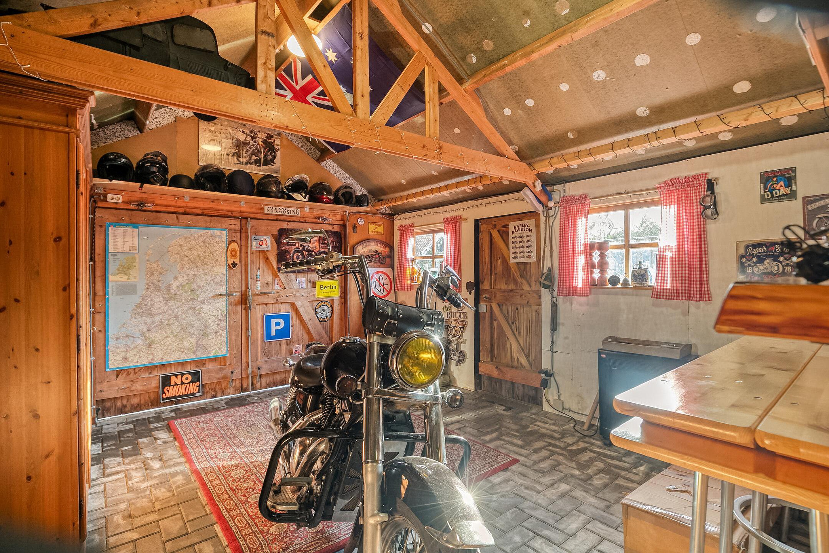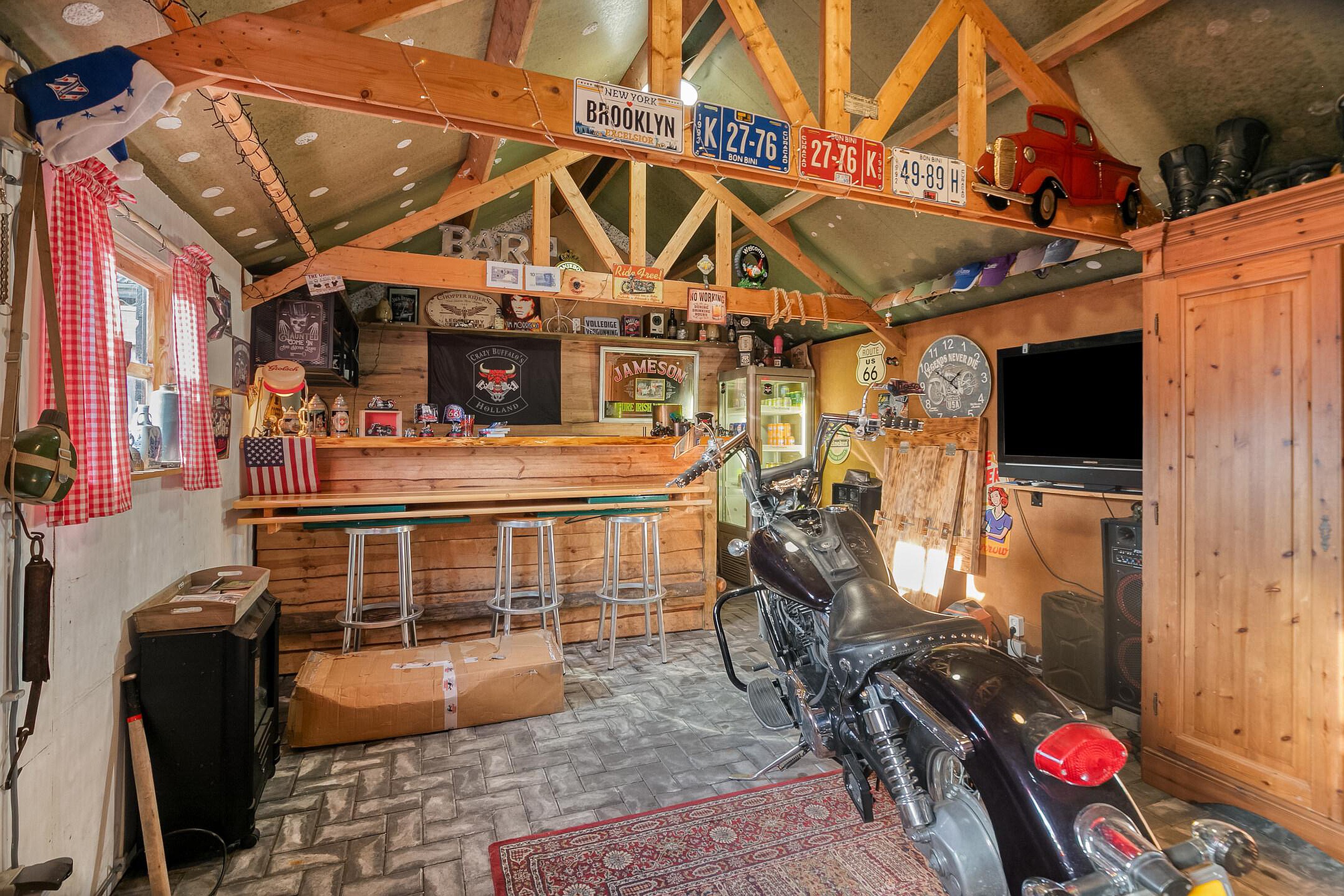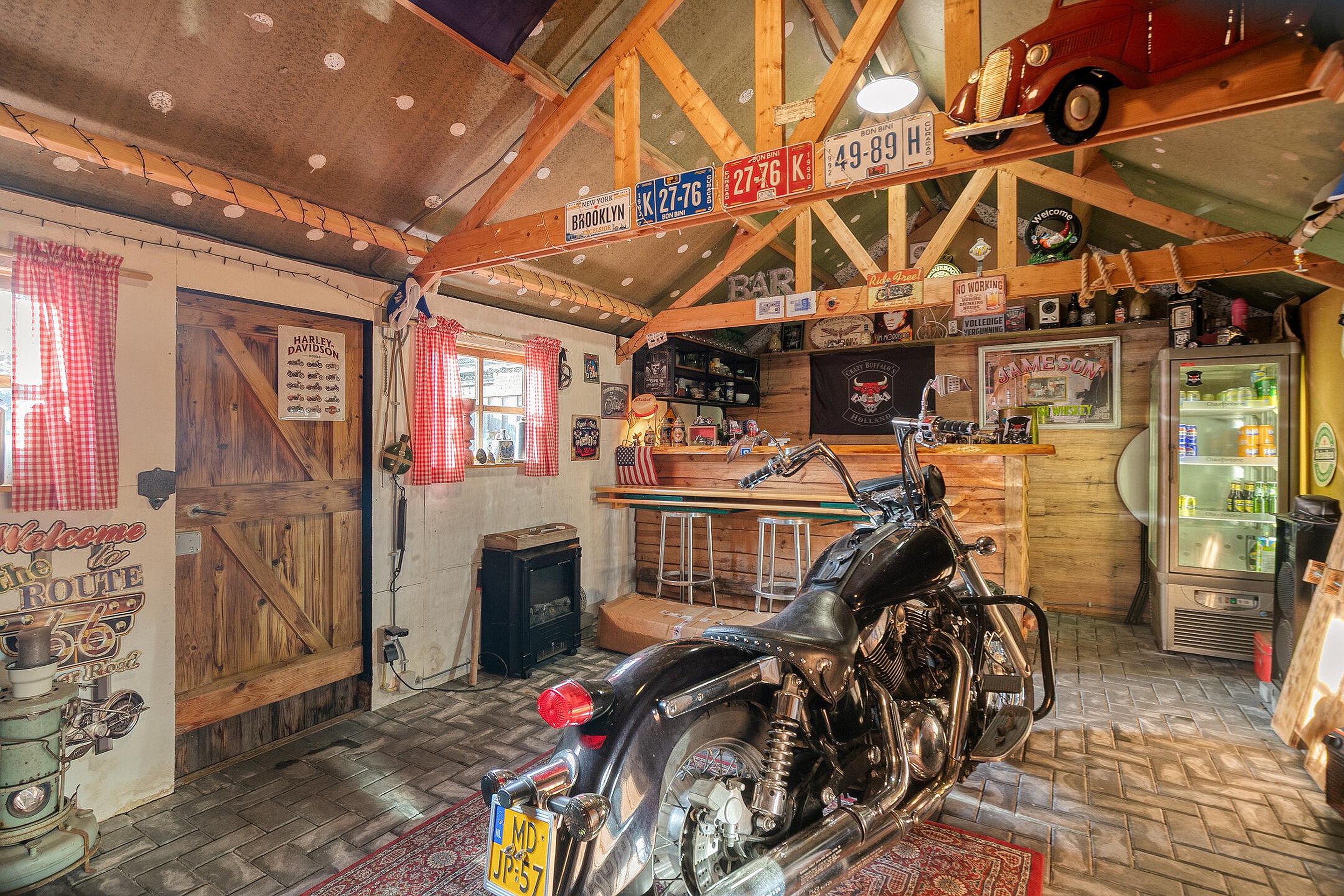 Achter in de tuin is een tuinhuis ingericht als een barretje.
