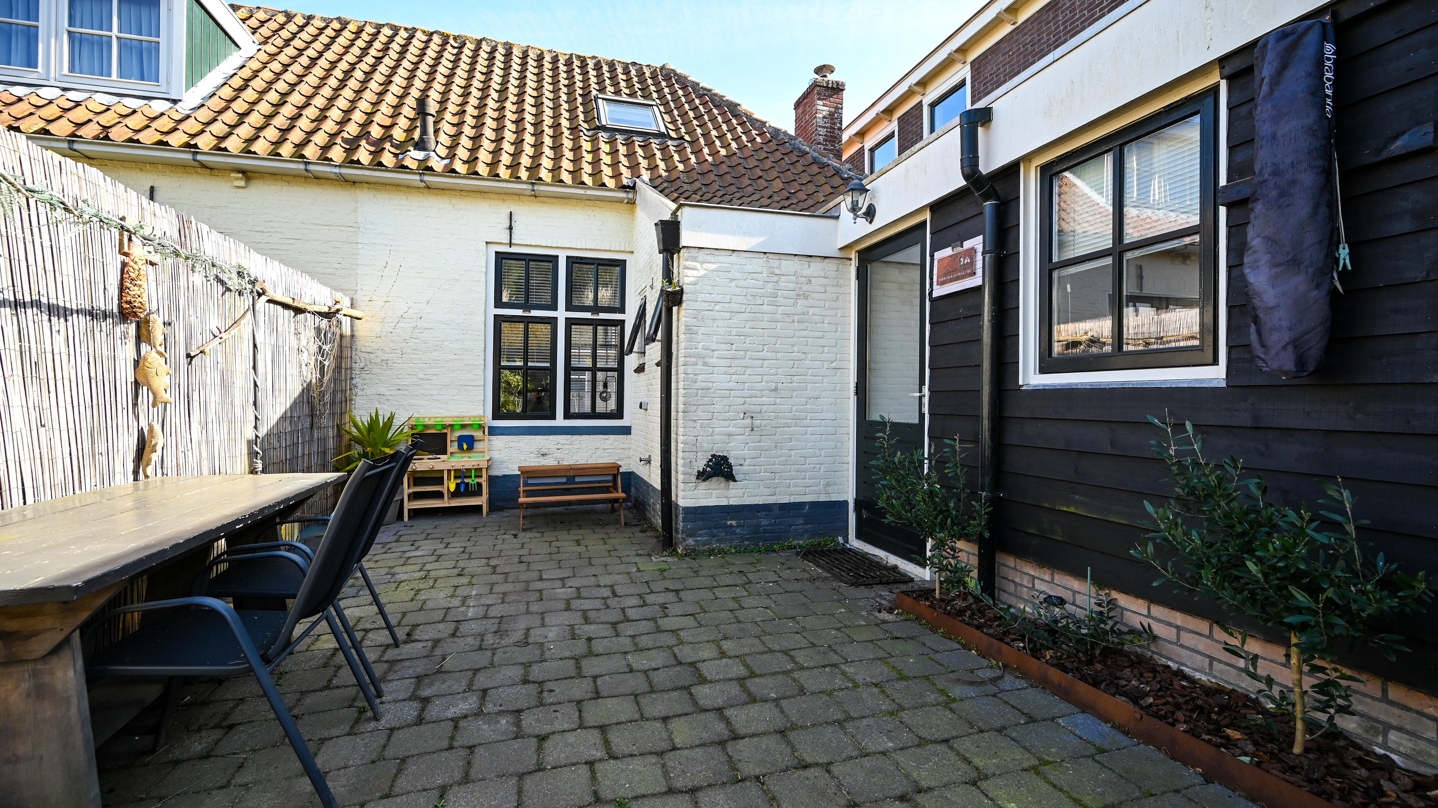 Buiten biedt de woning aan de voorzijde een verzorgd aangelegd terras met een sfeervol zitje. Aan de achterzijde ligt een diepe en zonnige tuin, fraai aangelegd en voorzien van meerdere zitplekken. Ook is hier er een praktische berging aanwezig en een beschutte plek voor het stallen van fietsen. De achtertuin biedt directe toegang tot de tuinentree aan de Zwarteweg, vanwaar u moeiteloos de duinen in wandelt.