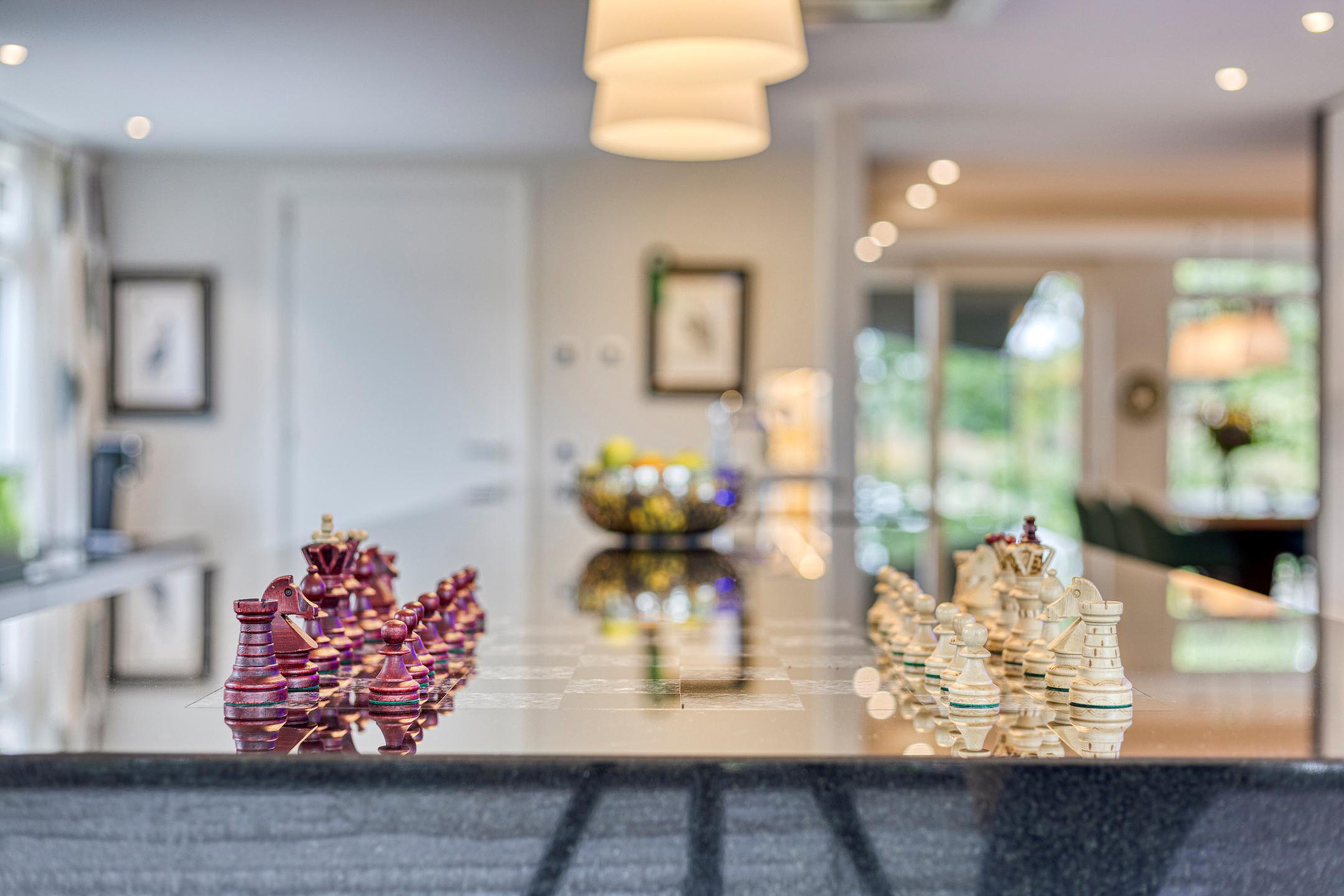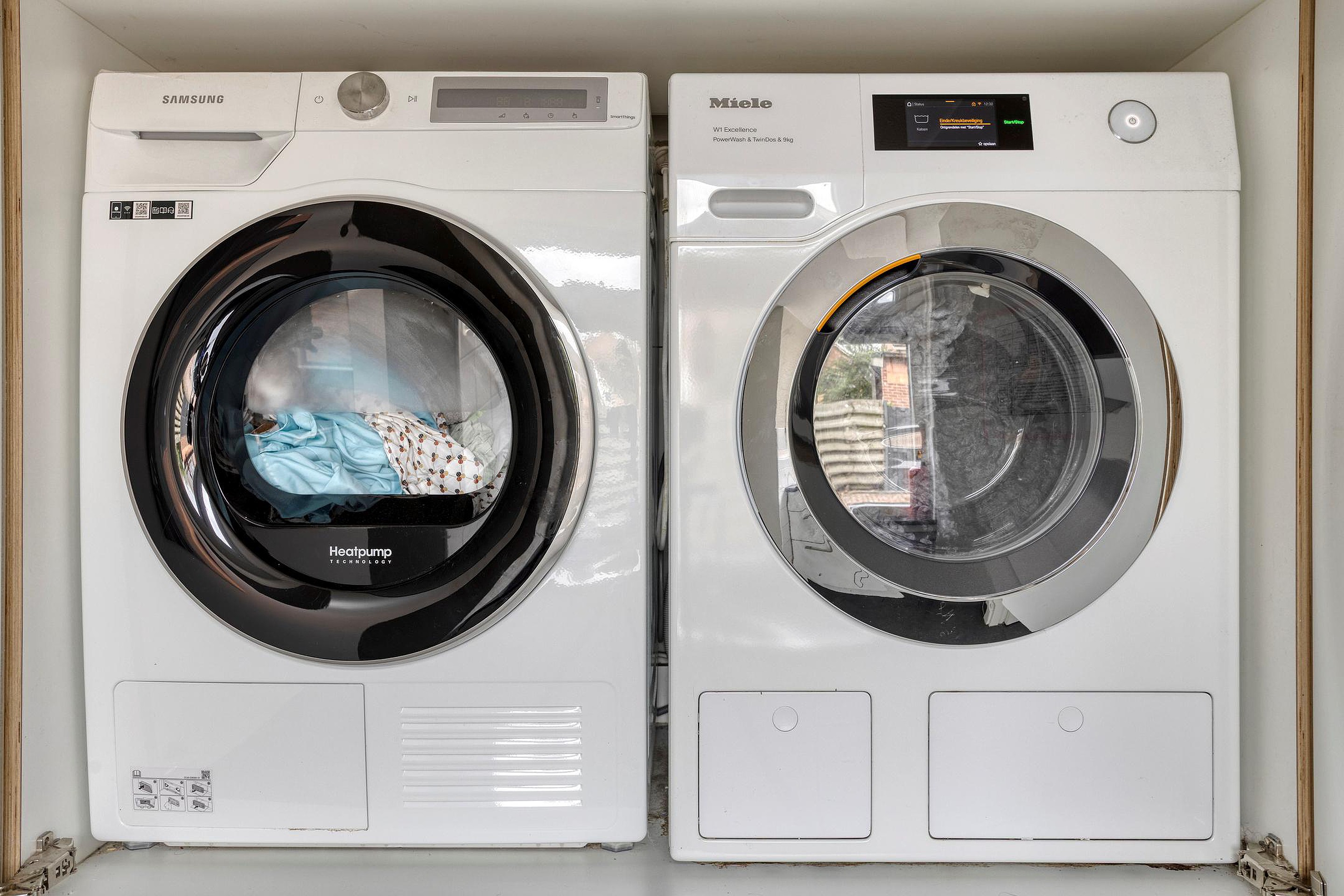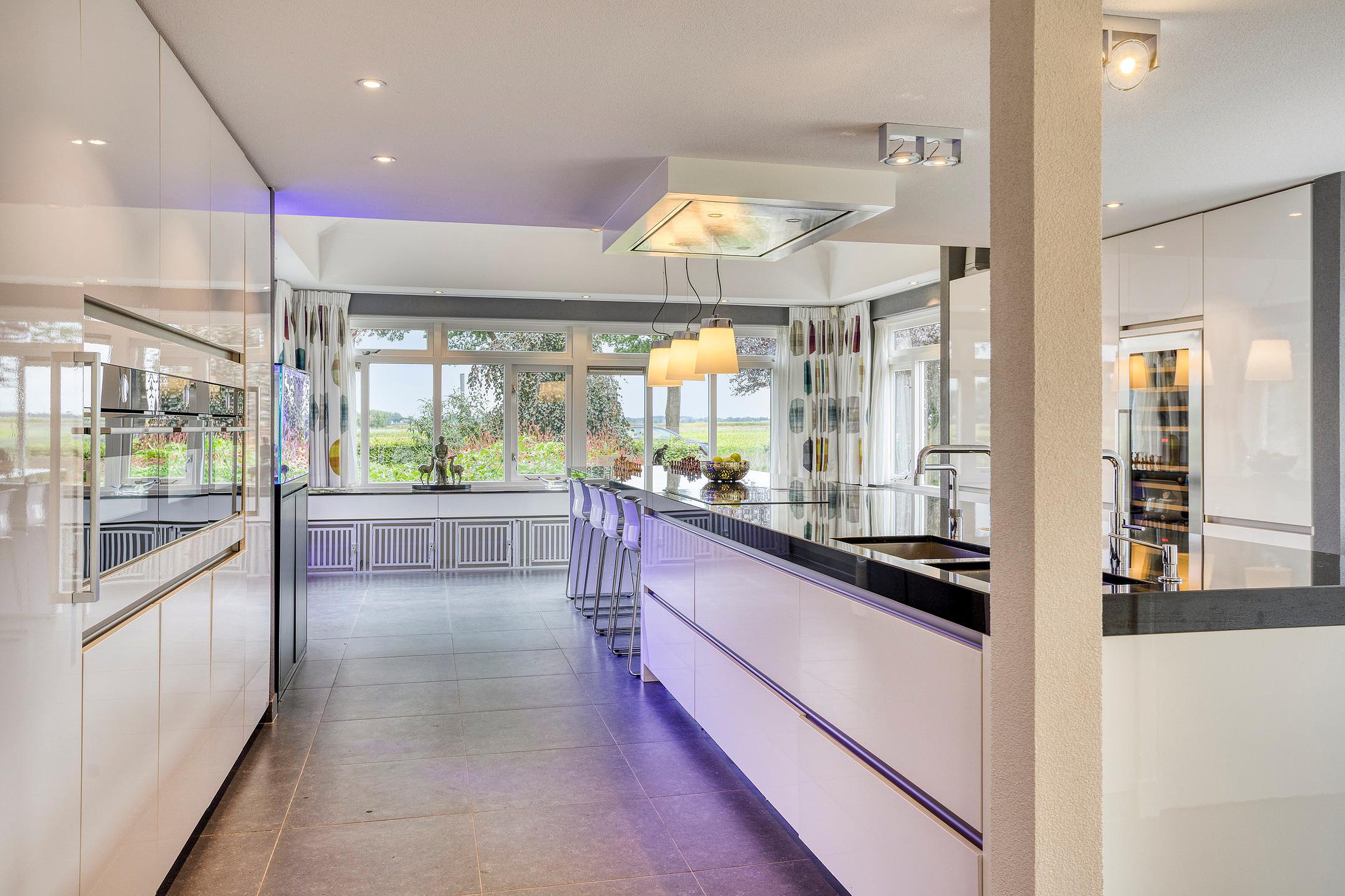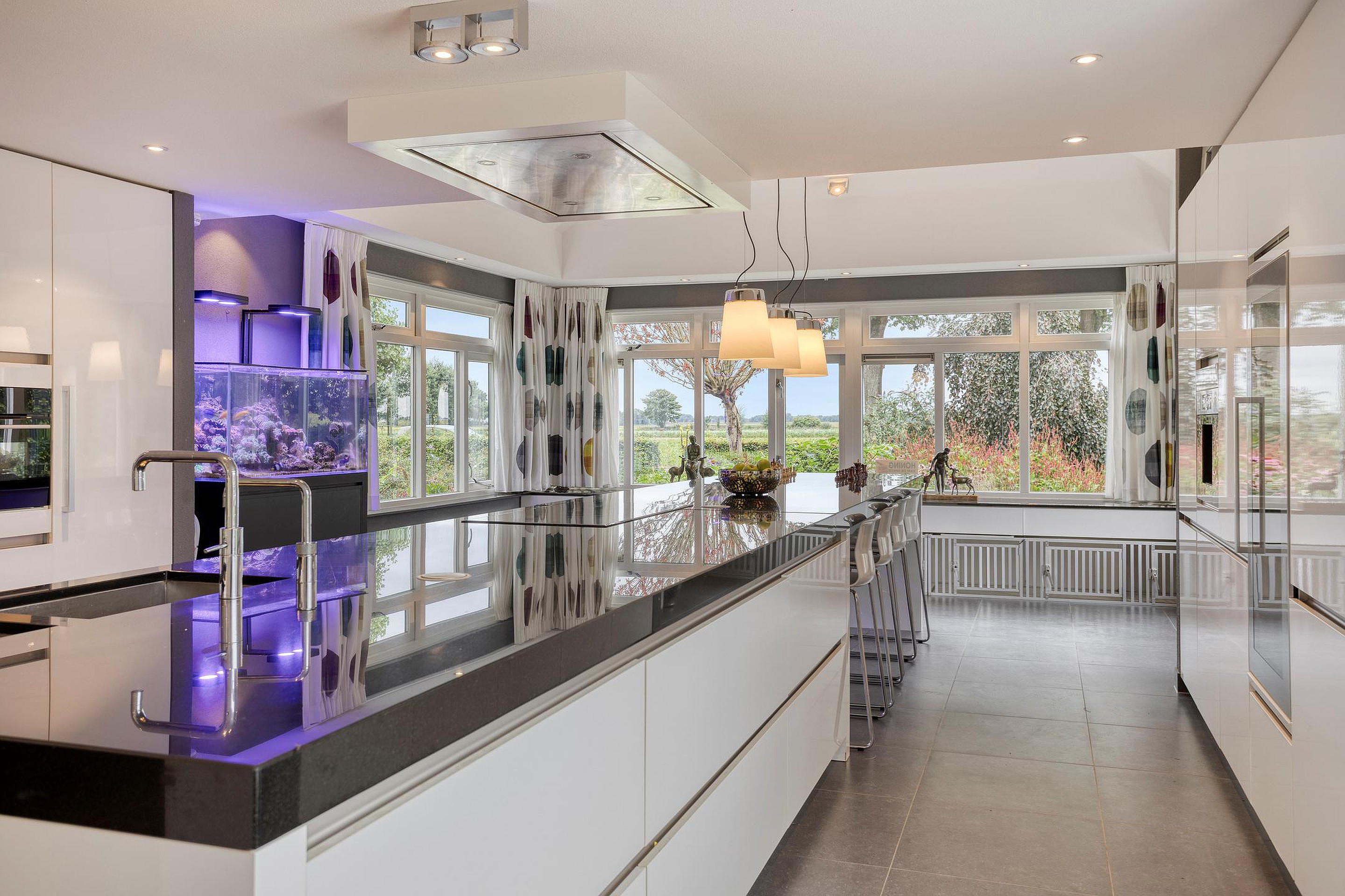De keuken heeft naast de gebruikelijke inbouwapparatuur ook een quooker, stoomoven en zelfs een wijnkoeler. Vanuit de keuken krijgt u toegang tot de bijkeuken met witgoedopstelling, de meterkast en de kelder.