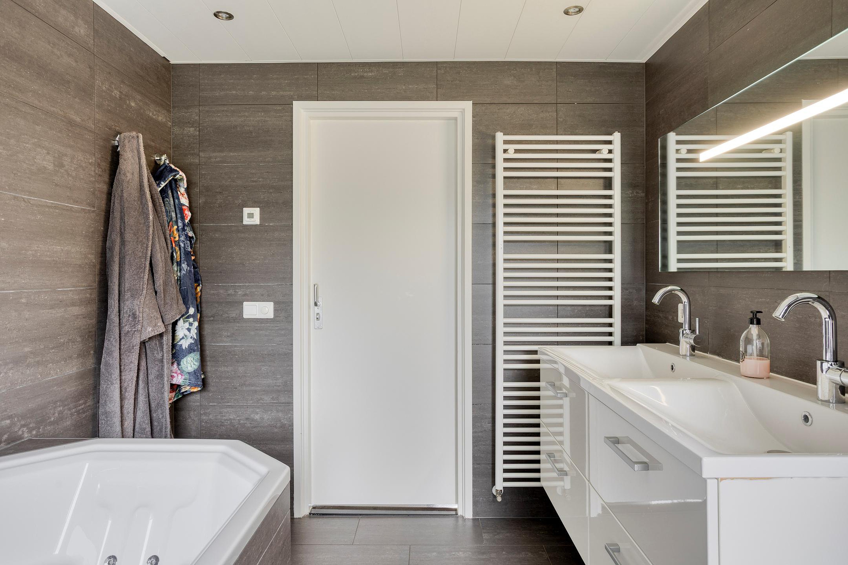 Middels statige trap in de hal wordt de eerste verdieping bereikt. Ook hier een lichte overloop van waaruit de 4 slaapkamers te bereiken zijn en de luxe badkamer. U kunt hier baden in een bubbelbad, opmaken voor de spiegel met spiegelverwarming en dit allemaal onder het genot van sfeervolle muziek.