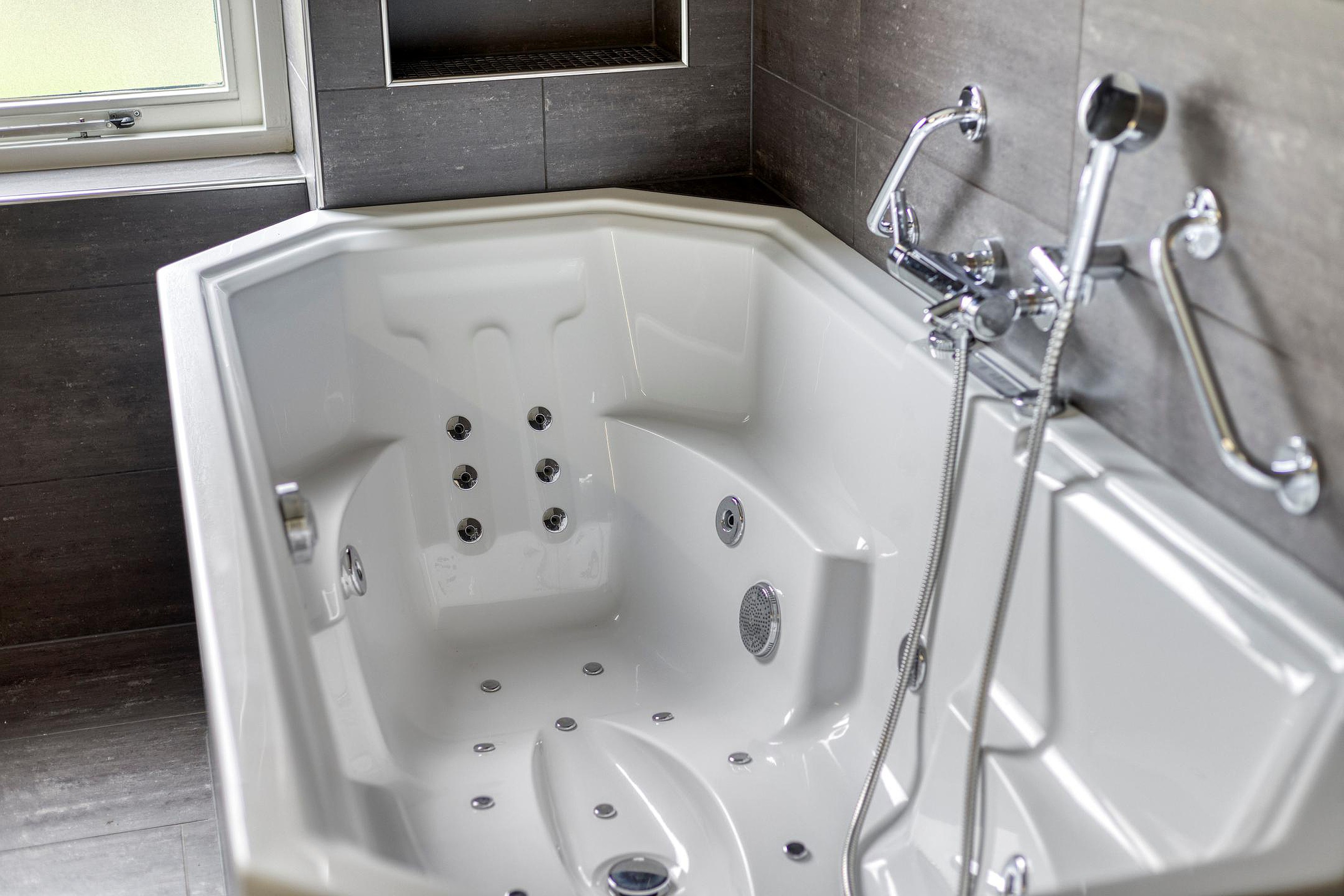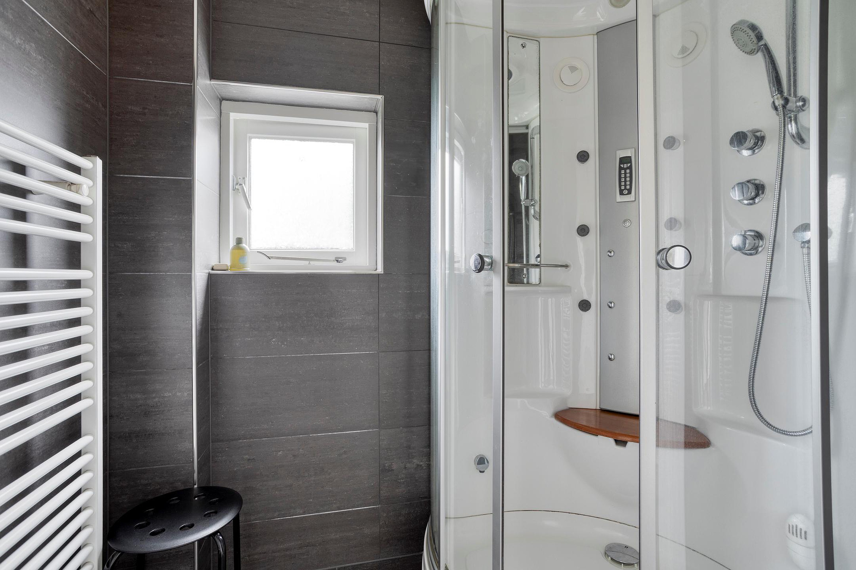Naast deze badkamer is er een tweede badkamer met een massagejet-douche, ook hier weer muziek en telefonie.