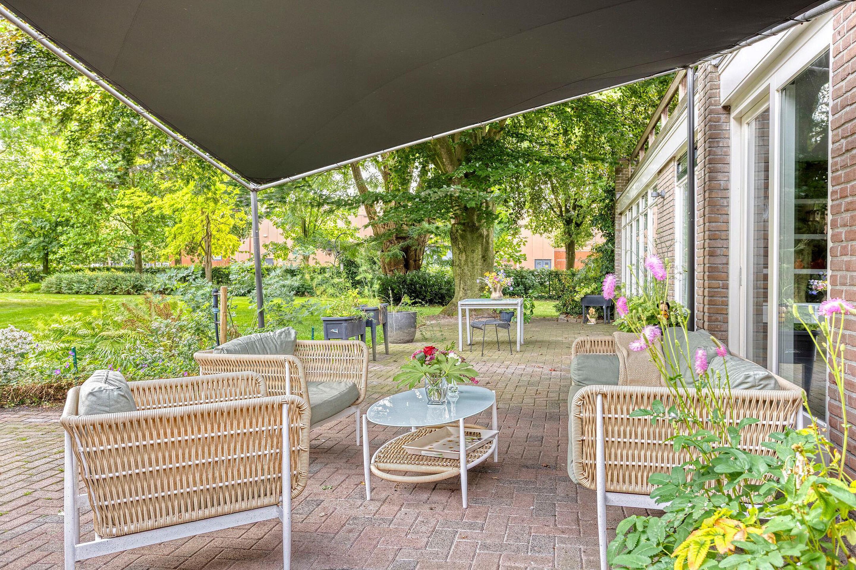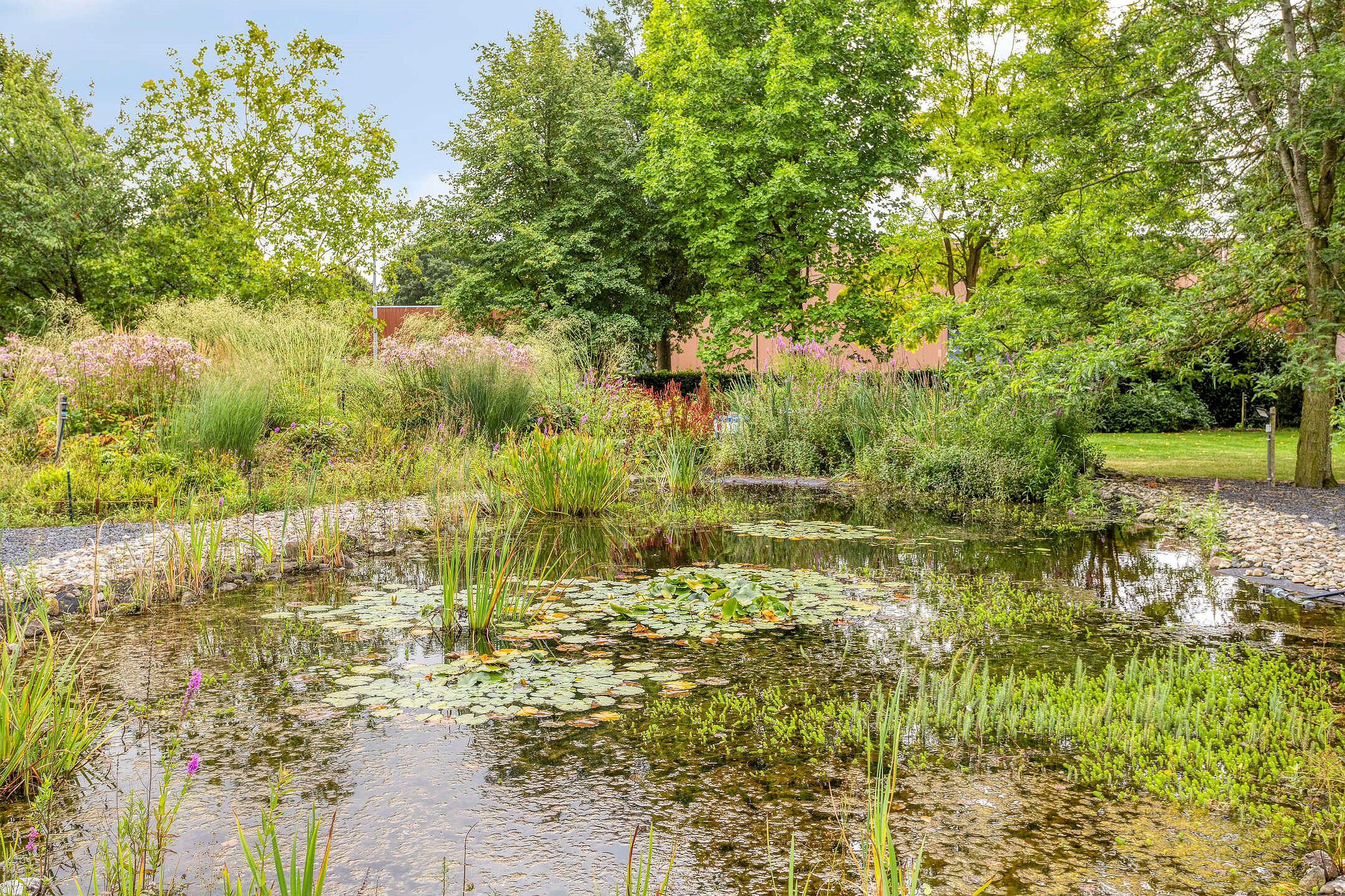 Wanneer u na een drukke dag thuiskomt kunt u uw hoofd leegmaken in de riante tuin met vijverpartij waar de imposante Acacia de blikvanger is.