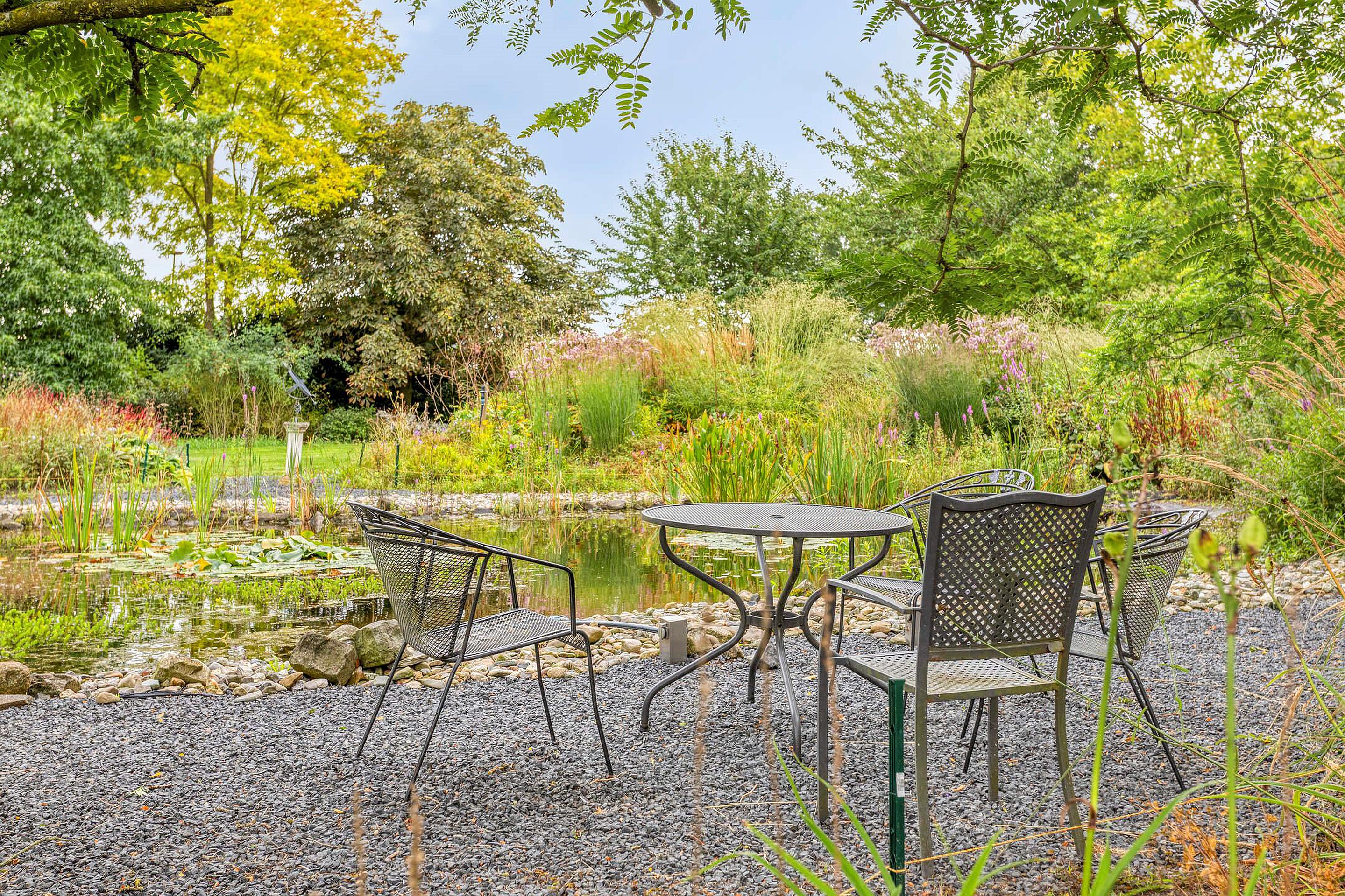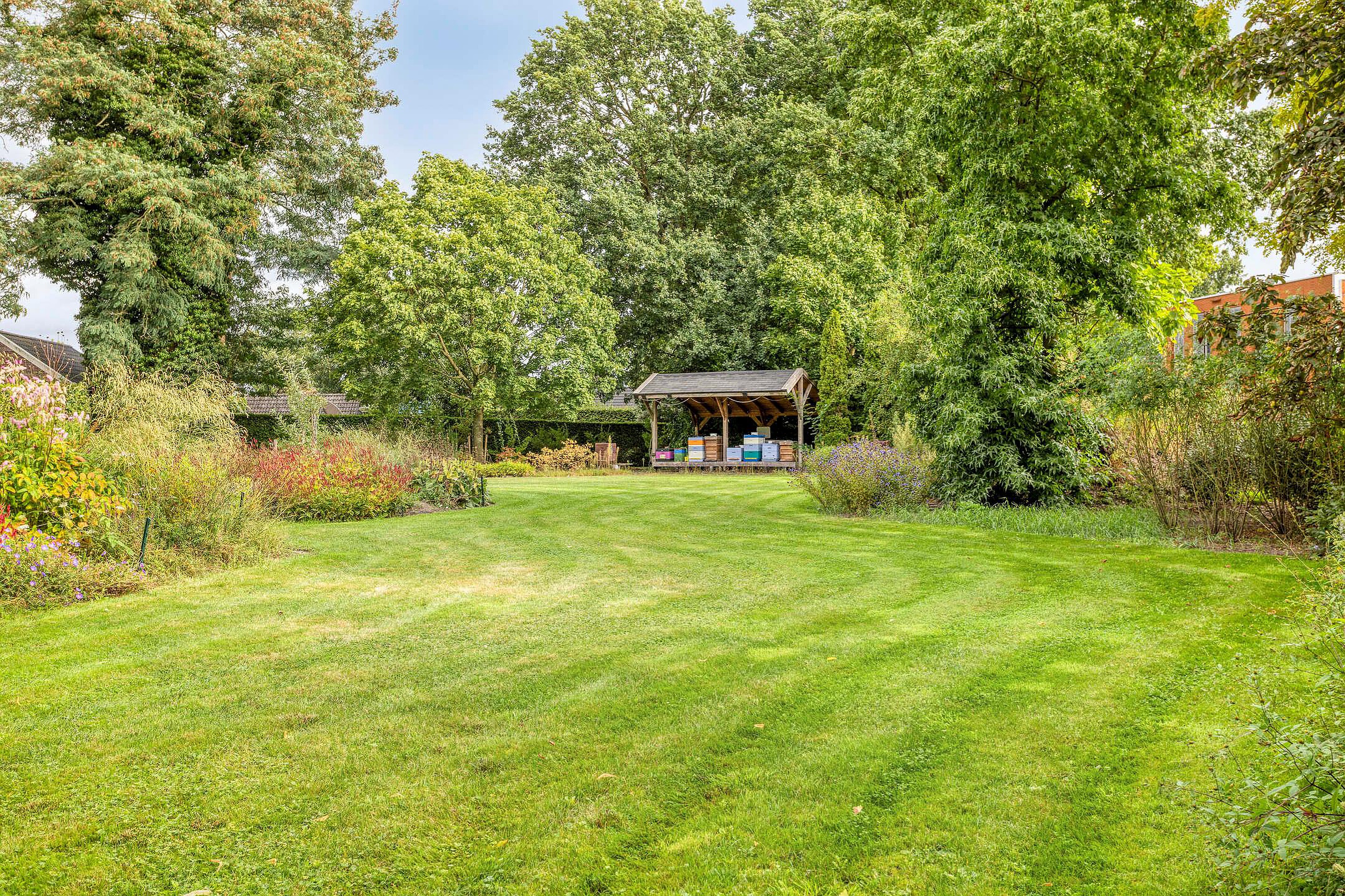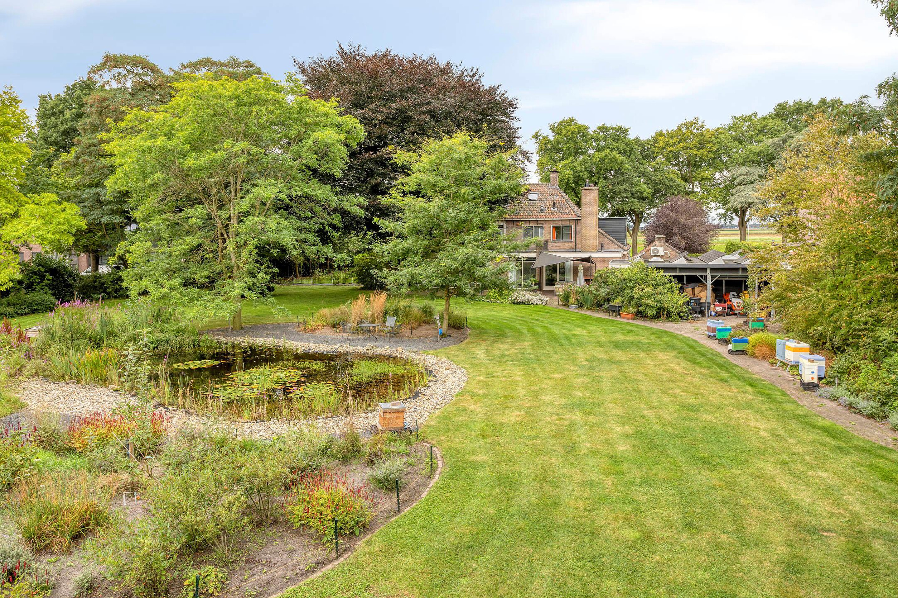 Sproeien hoeft u niet zelf te doen, want in de tuin is een sproei-installatie aangelegd met pup-ups, aangesloten op een eigen bron waar ook het water in de vijver mee op peil gehouden kan worden. Achterin de tuin is een kapschuur gesitueerd wat natuurlijk gemakkelijk is om uw tuinmateriaal droog te kunnen wegzetten.