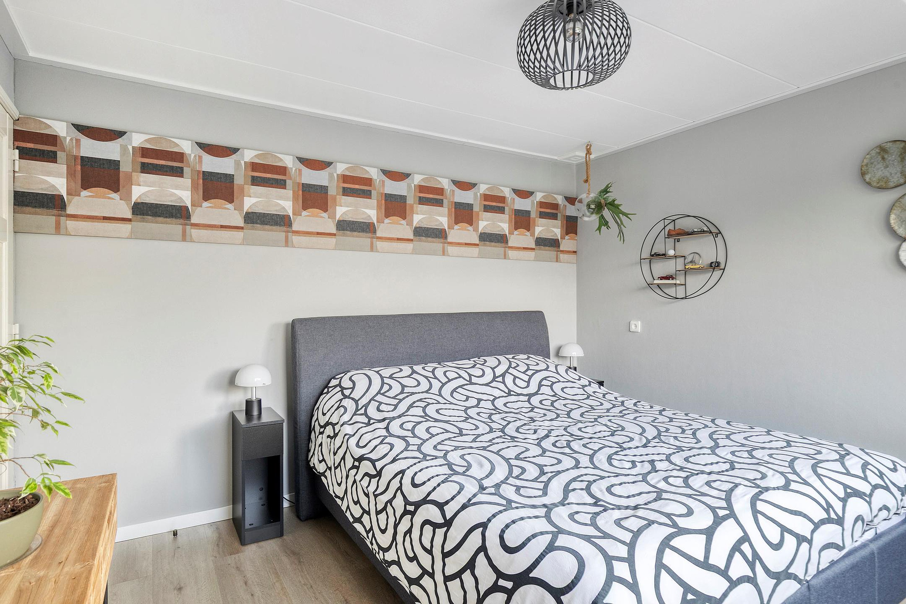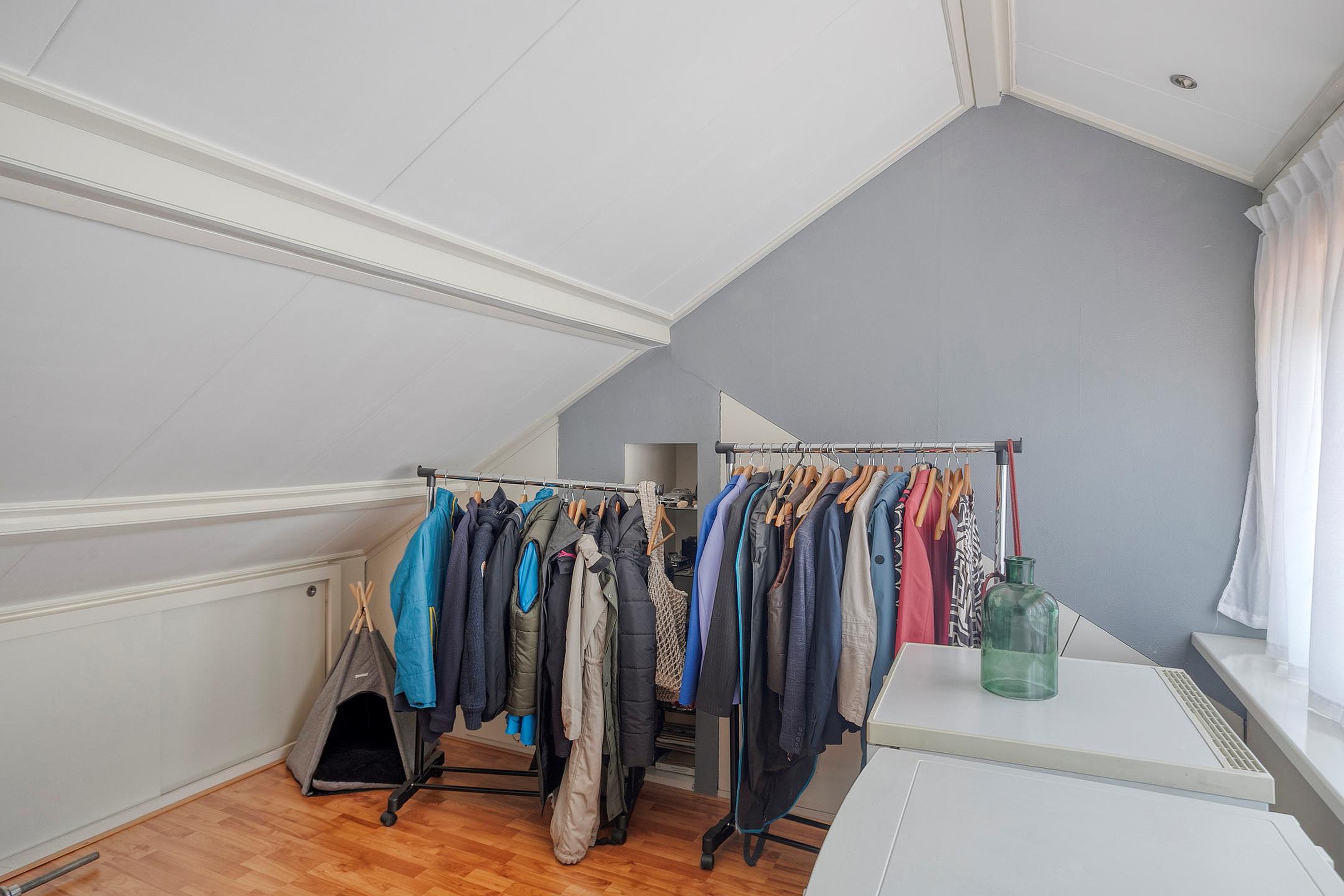 De slaapkamer is heerlijk licht dankzij een dakkapel met verhoogde nok en biedt veel extra bergruimte.